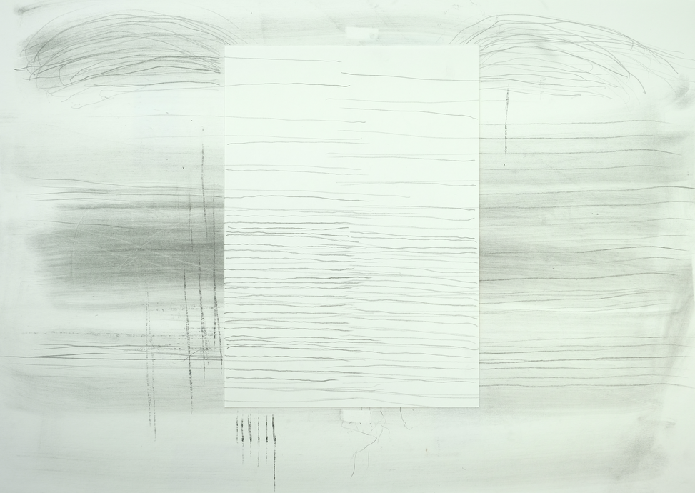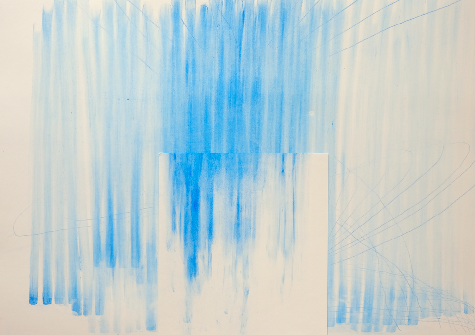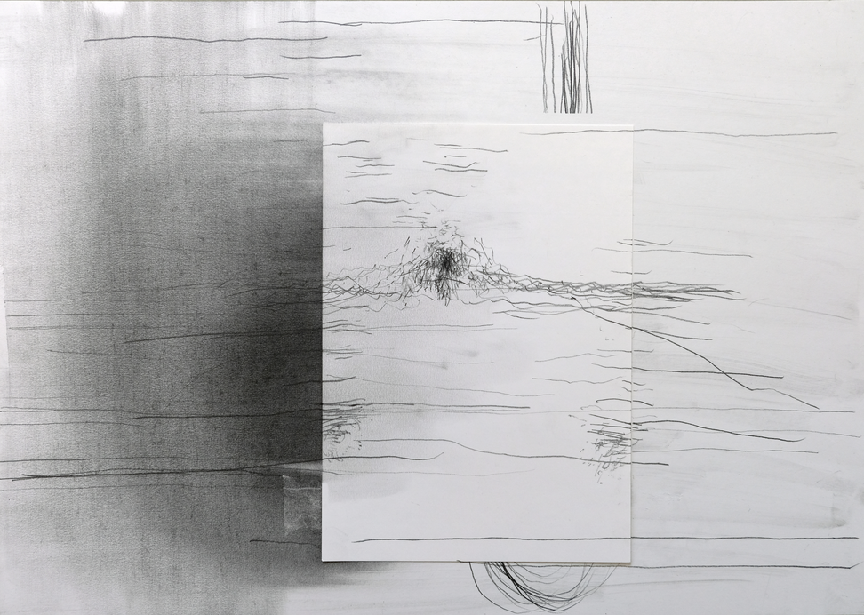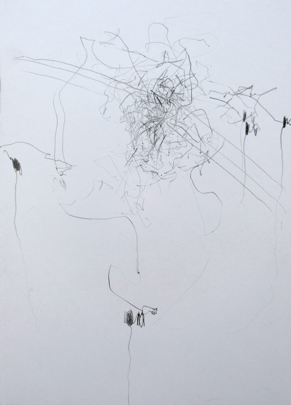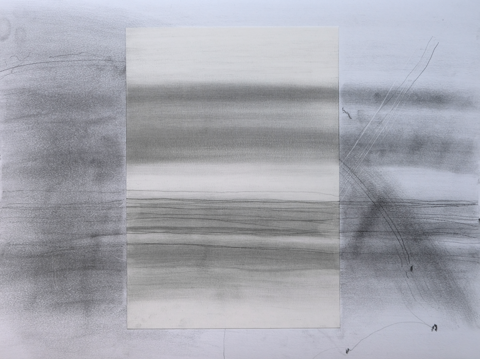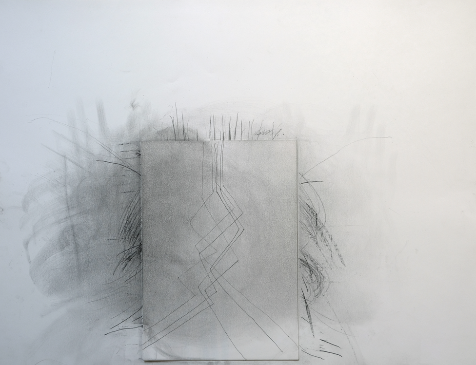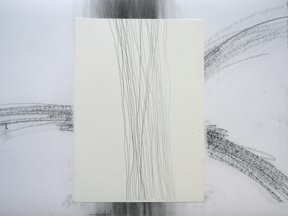 IV. Possible crystallisations of meaning. An extension of the non-verbal, expanding. No hurry. Not yet. Not yet. Inhaling, exhaling. Drawing into and drawing out. A remembered experience – there it has to develop. A decision in multiple touch, in touch with multiple surfaces. A sense of recognising. This play of momentums. Realising resonance. Sinking. Sensible boundaries, or rather changes in curvature. Constantly breathing in and out. Concurrency intervening, just appearing. Coming back to time, realising. Letting. Listening. Wondering, intermingling. This bleed of the present, opening and closing, constantly deciding. There is a call there. Drawing in and drawing out. Conditions changing, sensorially open. Edges sharpen, an indeterminate beyond. A line, a line shimmers and falls back. Airing. Trembling. Blurring. Pulsing. Wavering. Pressing. Pulsing. In touch, of surface, of line, of hand, of edge. Soft letting, leaning. Turning elsewhere. A liminal space between seeing and touching. These shifts in register, turning. Changes of angle, of perspective. A reorientation of the page. In the blankness, an opening. Invitation, for some intervention. Crystallisations of meaning, concurrency intervening. Concurrency as a way of proceeding. Trusting, trusting, following the trusting. Drop of expectation, to be surprised again. Changing, yet maintaining slowness. Sensorially open, this shifts of register and perspective. Deactivating the willing, a change in mode might feel necessary. Barely perceptible reorganisation of possibilities. A decision is revealed – yet not cut is made, to de-cision. Fluid, disappearing. The space between sense and the coming to be of sense. Landscapes, edges, curvatures of sense. To stop and observe these edges, shifting. Shifts, observing, not focusing on anything else. Expansion. Blur of form expanding. Trembling. Disorientation, reorientation, reimagining. Reconnection of the lines, breaking. Expanding. A closer connection. Reconnection. The touch of unexpected line or edge. Testing. Nearness. Wavering line, occluding. Revealing, unveiling. Touching, meeting. Departing. Edging. Edging towards. Edging away from. Moving into. Into stillness, a slowness. Disappearance. How to wait for the other? Not about. Disappearing. Seeing. Transfer the focus, the impulse. A small blank space. Extension of the non-verbal, expanding. It has to develop. Letting. Observing. A quality of in-between-ness. Letting as a different kind of decision unfolding, oscillating, not forcing. This sense of movement, this happening.
