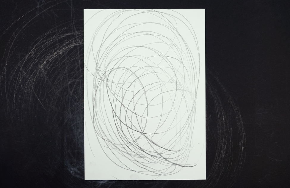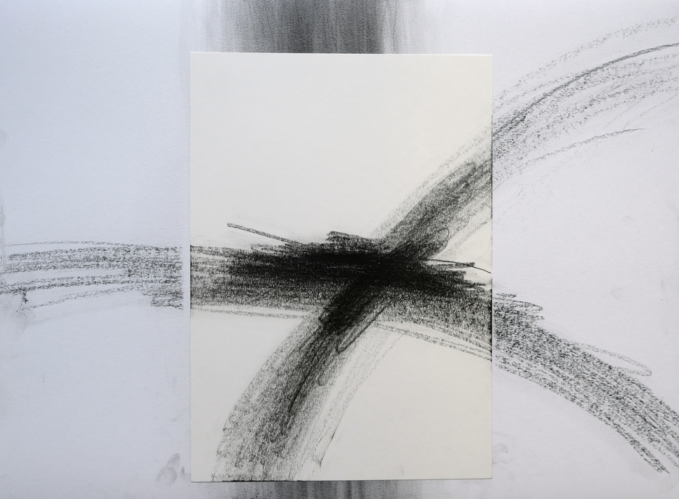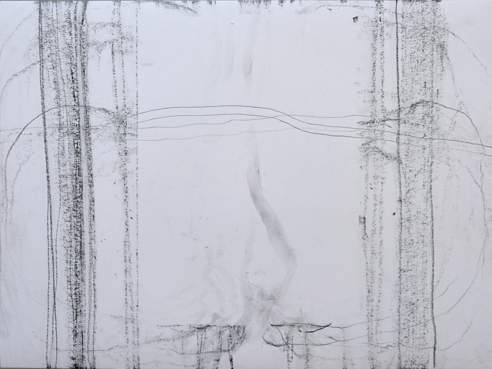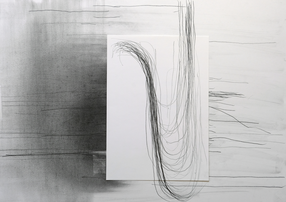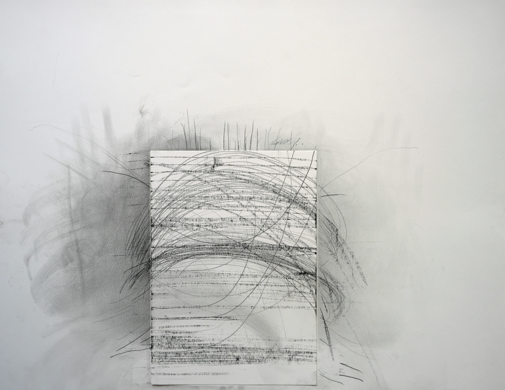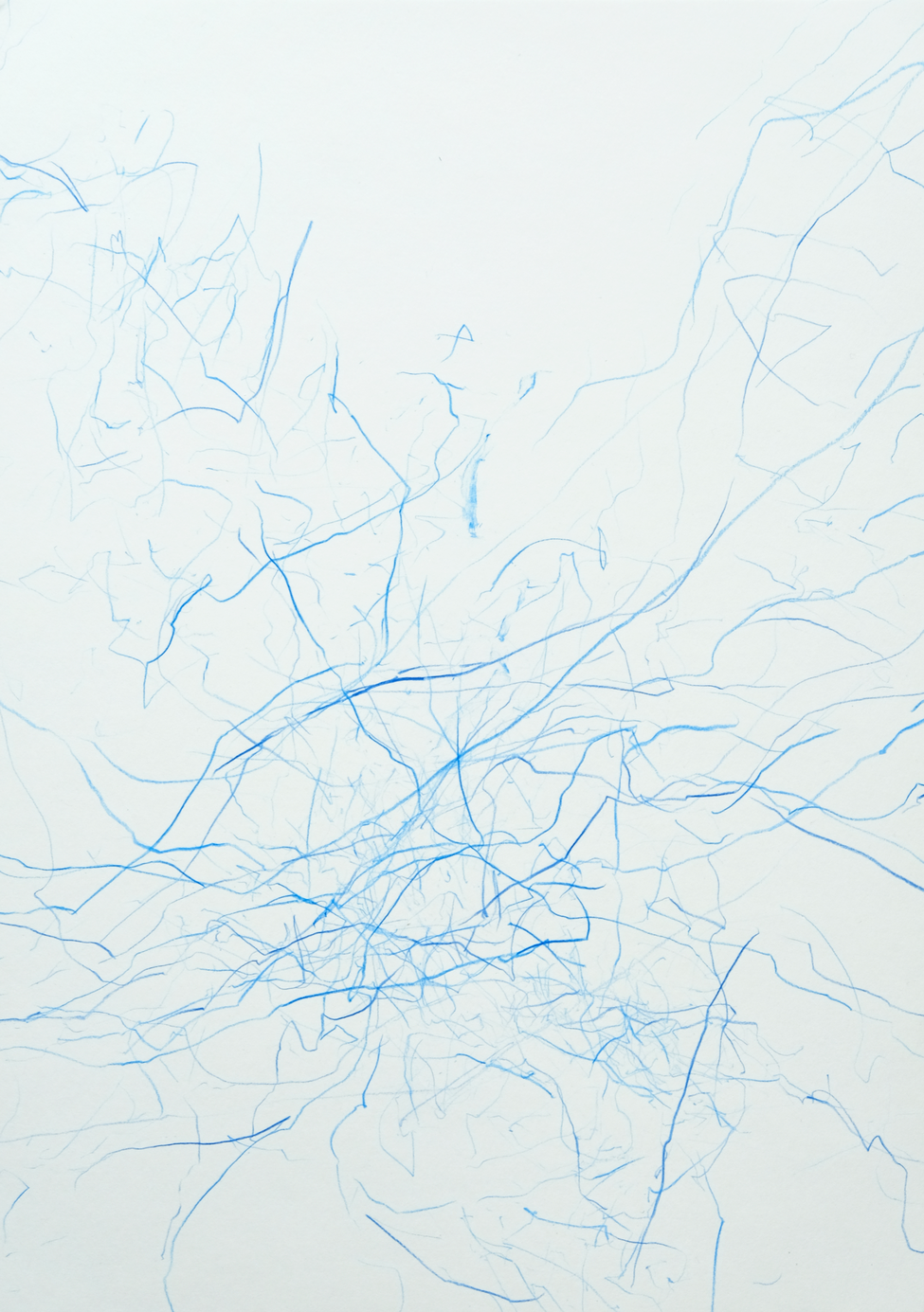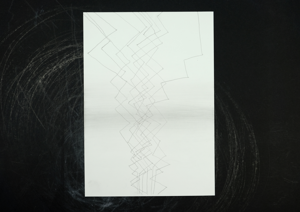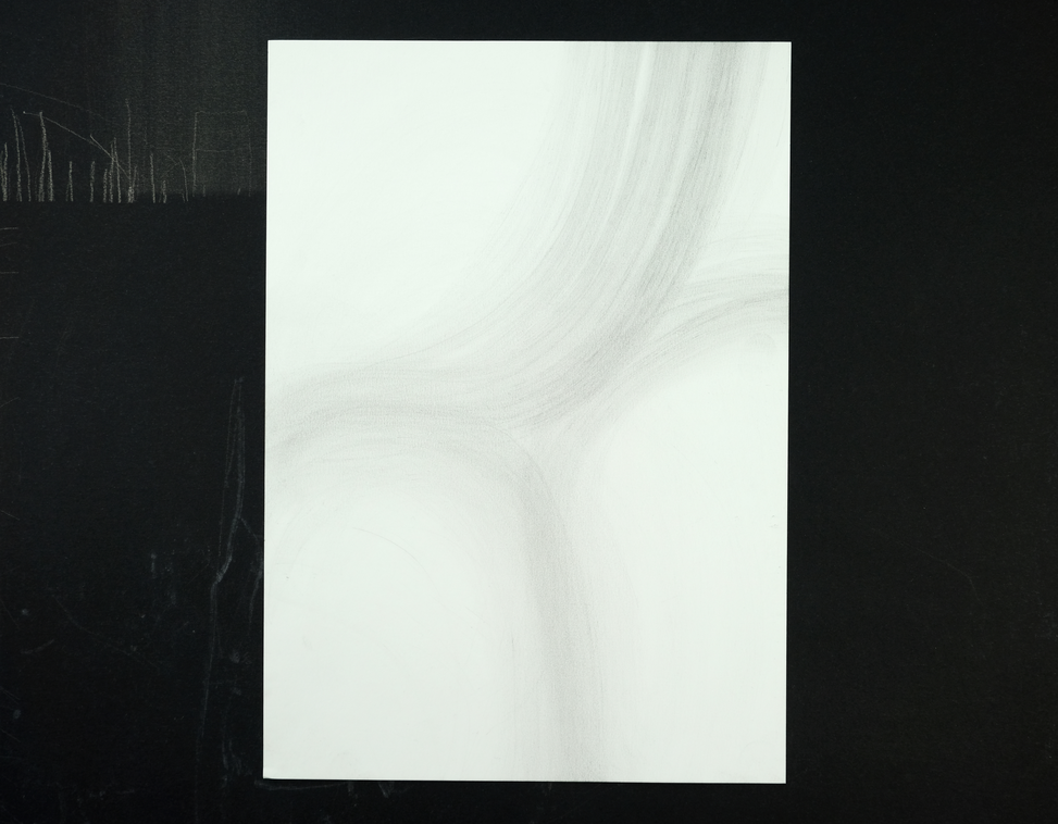 IV. Possible crystallisations of meaning. An extension of the non-verbal, expanding. No hurry. Not yet. Not yet. Inhaling, exhaling. Drawing into and drawing out. A remembered experience – there it has to develop. A decision in multiple touch, in touch with multiple surfaces. A sense of recognising. This play of momentums. Realising resonance. Sinking. Sensible boundaries, or rather changes in curvature. Constantly breathing in and out. Concurrency intervening, just appearing. Coming back to time, realising. Letting. Listening. Wondering, intermingling. This bleed of the present, opening and closing, constantly deciding. There is a call there. Drawing in and drawing out. Conditions changing, sensorially open. Edges sharpen, an indeterminate beyond. A line, a line shimmers and falls back. Airing. Trembling. Blurring. Pulsing. Wavering. Pressing. Pulsing. In touch, of surface, of line, of hand, of edge. Soft letting, leaning. Turning elsewhere. A liminal space between seeing and touching. These shifts in register, turning. Changes of angle, of perspective. A reorientation of the page. In the blankness, an opening. Invitation, for some intervention. Crystallisations of meaning, concurrency intervening. Concurrency as a way of proceeding. Trusting, trusting, following the trusting. Drop of expectation, to be surprised again. Changing, yet maintaining slowness. Sensorially open, this shifts of register and perspective. Deactivating the willing, a change in mode might feel necessary. Barely perceptible reorganisation of possibilities. A decision is revealed – yet not cut is made, to de-cision. Fluid, disappearing. The space between sense and the coming to be of sense. Landscapes, edges, curvatures of sense. To stop and observe these edges, shifting. Shifts, observing, not focusing on anything else. Expansion. Blur of form expanding. Trembling. Disorientation, reorientation, reimagining. Reconnection of the lines, breaking. Expanding. A closer connection. Reconnection. The touch of unexpected line or edge. Testing. Nearness. Wavering line, occluding. Revealing, unveiling. Touching, meeting. Departing. Edging. Edging towards. Edging away from. Moving into. Into stillness, a slowness. Disappearance. How to wait for the other? Not about. Disappearing. Seeing. Transfer the focus, the impulse. A small blank space. Extension of the non-verbal, expanding. It has to develop. Letting. Observing. A quality of in-between-ness. Letting as a different kind of decision unfolding, oscillating, not forcing. This sense of movement, this happening.