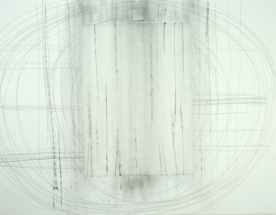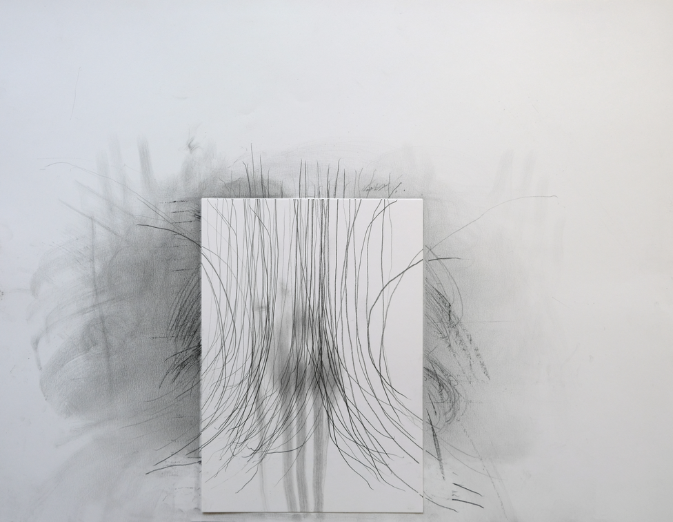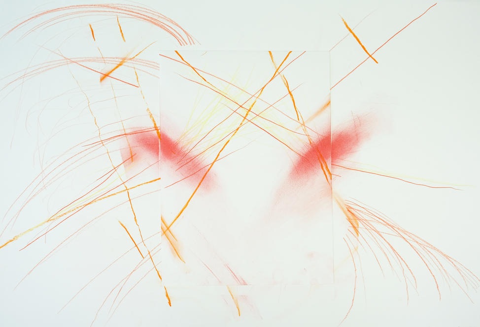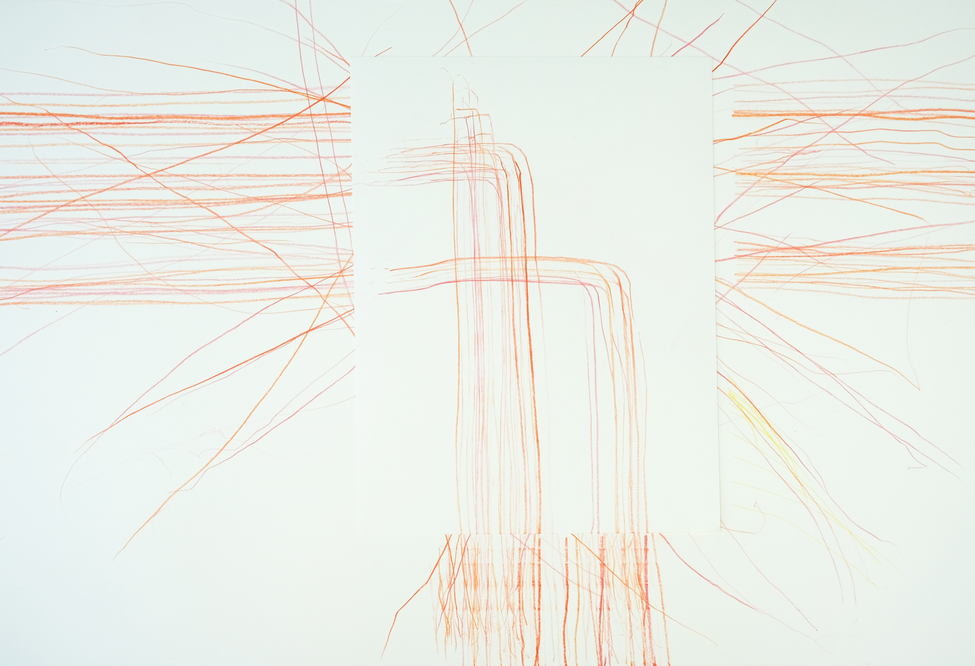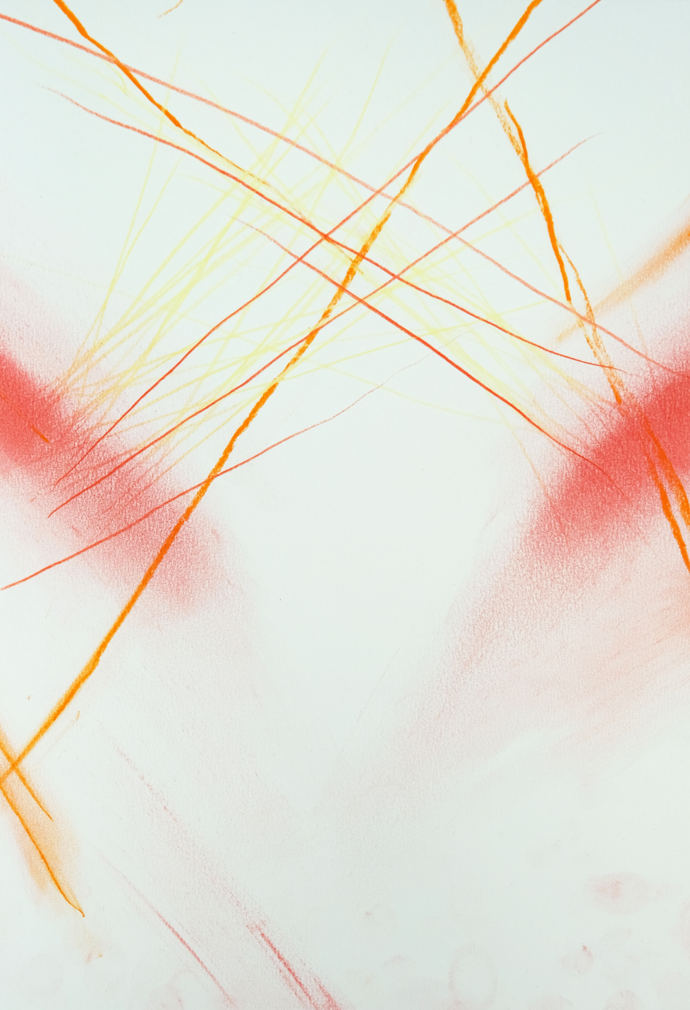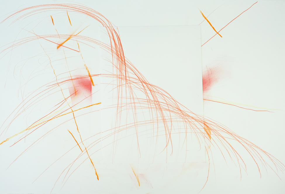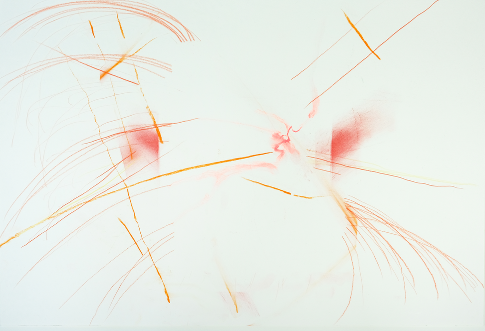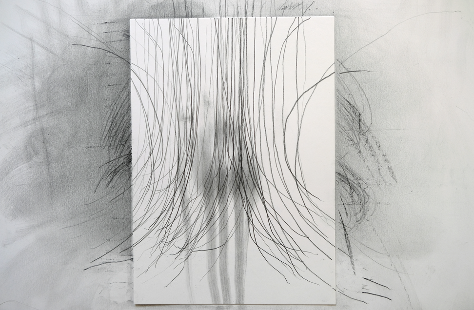 IV. Possible crystallisations of meaning. An extension of the non-verbal, expanding. No hurry. Not yet. Not yet. Inhaling, exhaling. Drawing into and drawing out. A remembered experience – there it has to develop. A decision in multiple touch, in touch with multiple surfaces. A sense of recognising. This play of momentums. Realising resonance. Sinking. Sensible boundaries, or rather changes in curvature. Constantly breathing in and out. Concurrency intervening, just appearing. Coming back to time, realising. Letting. Listening. Wondering, intermingling. This bleed of the present, opening and closing, constantly deciding. There is a call there. Drawing in and drawing out. Conditions changing, sensorially open. Edges sharpen, an indeterminate beyond. A line, a line shimmers and falls back. Airing. Trembling. Blurring. Pulsing. Wavering. Pressing. Pulsing. In touch, of surface, of line, of hand, of edge. Soft letting, leaning. Turning elsewhere. A liminal space between seeing and touching. These shifts in register, turning. Changes of angle, of perspective. A reorientation of the page. In the blankness, an opening. Invitation, for some intervention. Crystallisations of meaning, concurrency intervening. Concurrency as a way of proceeding. Trusting, trusting, following the trusting. Drop of expectation, to be surprised again. Changing, yet maintaining slowness. Sensorially open, this shifts of register and perspective. Deactivating the willing, a change in mode might feel necessary. Barely perceptible reorganisation of possibilities. A decision is revealed – yet not cut is made, to de-cision. Fluid, disappearing. The space between sense and the coming to be of sense. Landscapes, edges, curvatures of sense. To stop and observe these edges, shifting. Shifts, observing, not focusing on anything else. Expansion. Blur of form expanding. Trembling. Disorientation, reorientation, reimagining. Reconnection of the lines, breaking. Expanding. A closer connection. Reconnection. The touch of unexpected line or edge. Testing. Nearness. Wavering line, occluding. Revealing, unveiling. Touching, meeting. Departing. Edging. Edging towards. Edging away from. Moving into. Into stillness, a slowness. Disappearance. How to wait for the other? Not about. Disappearing. Seeing. Transfer the focus, the impulse. A small blank space. Extension of the non-verbal, expanding. It has to develop. Letting. Observing. A quality of in-between-ness. Letting as a different kind of decision unfolding, oscillating, not forcing. This sense of movement, this happening.
