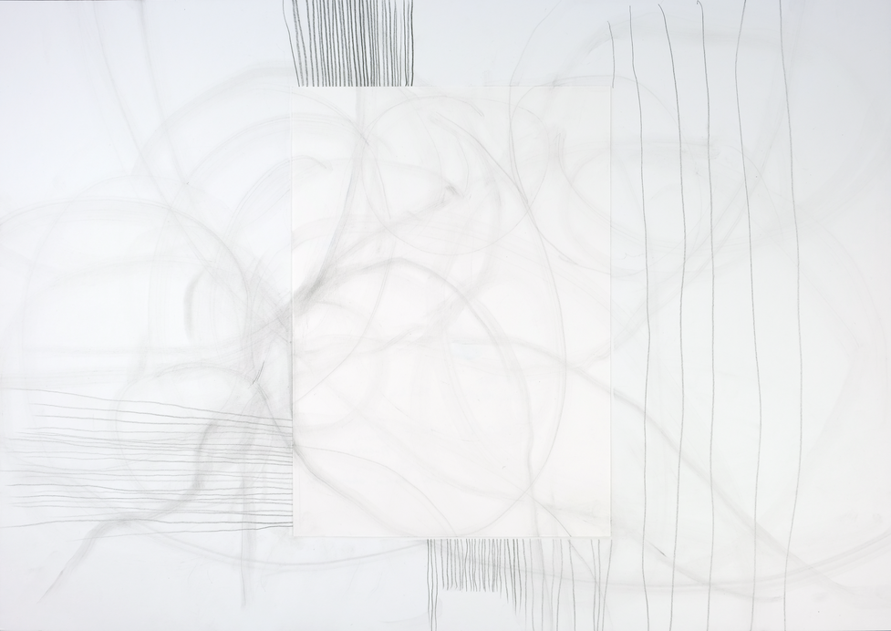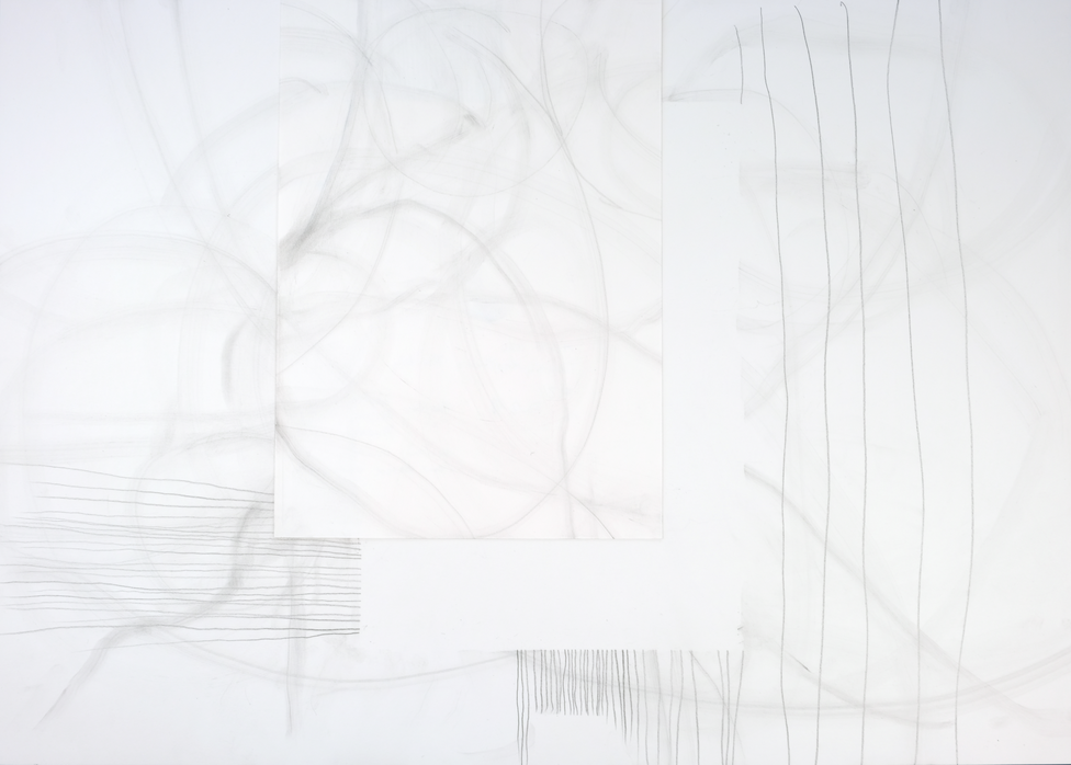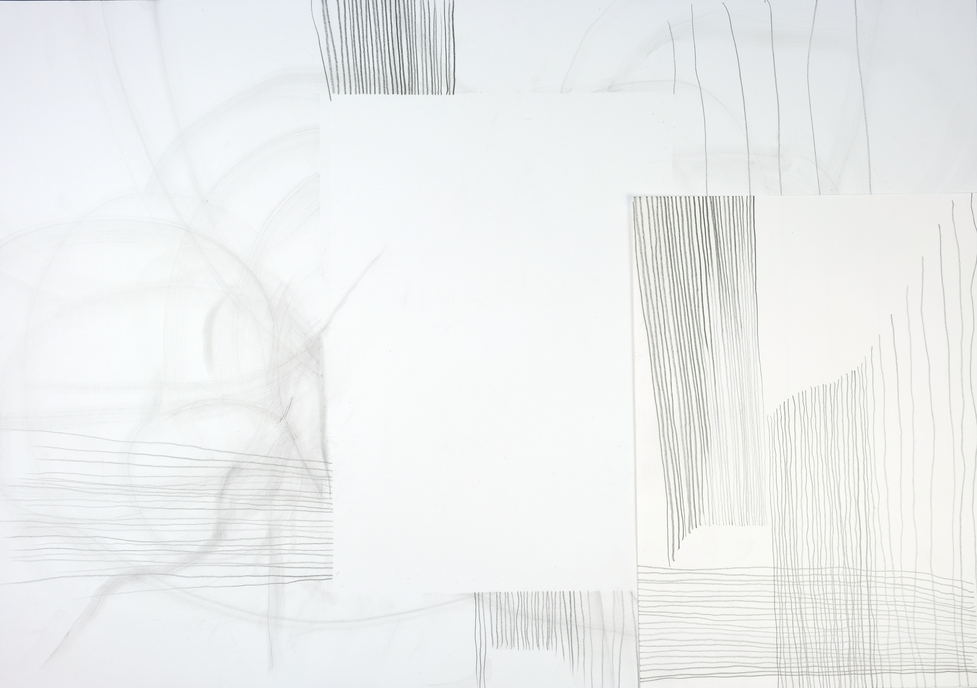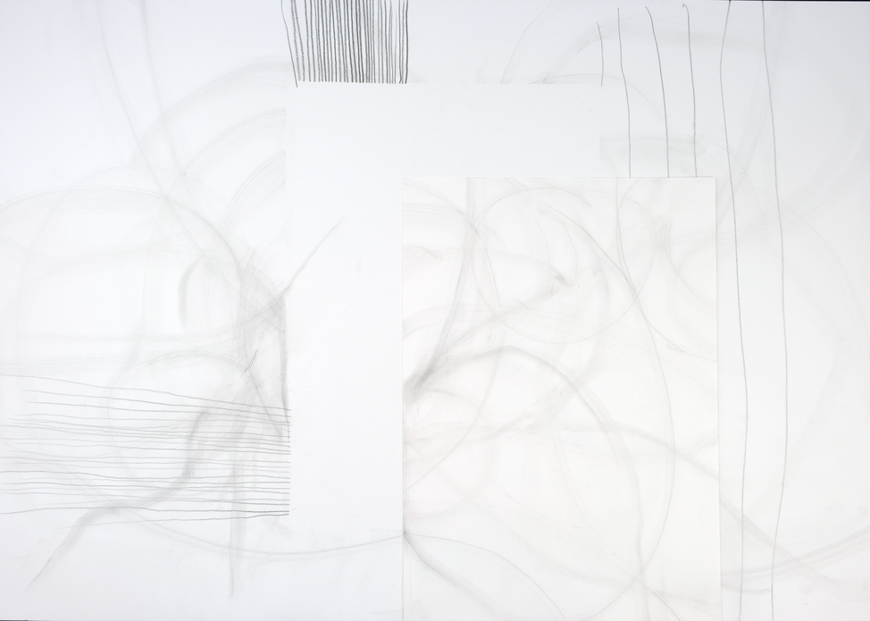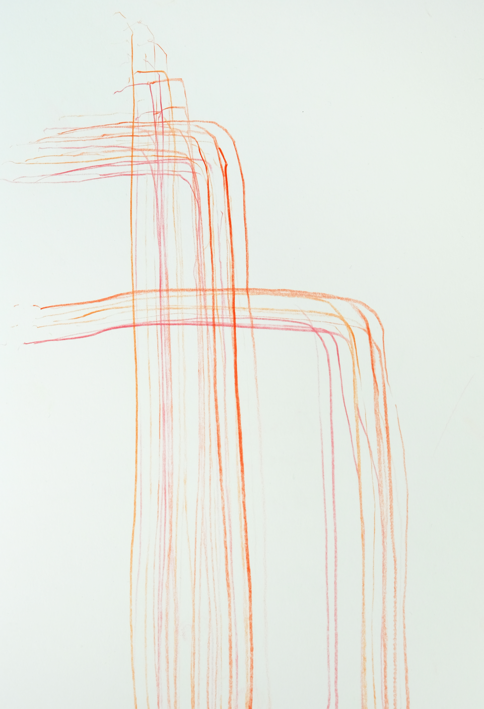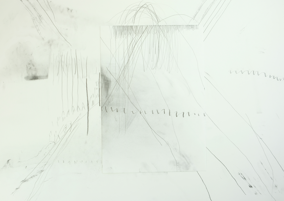 I. Expecting. Ex-pecting. Awaiting. Not yet. Sinking. Folding. Tending. Continuity. Conducive. Differentiation. Trembling thresholds. Open sensing. Delicate decisions. Wavering edge. Lines, soft, fluid. Con-currence. Curvature. Connection. Continuity, coexisting. Co-operation. Realising. Disappearing. Soft letting. Interweaving. Looking, waiting. It is not obvious. Decisions arising - materialising. Trembling. Bending. Sensing. Not to need to know, to come into a mode of engagement. Hovering light interplay, edges blurring. To activate a space and yet leave it open. Deactivating the willing. Sinking, dissolving. There is a call to enter into dialogue, a language also allowing for no words. Soft, fluid, pulsing. Ex-pecting. What comes through - looking without seeing. An empty frame - this pulsing of listening and inbetween-ness. This being at the edge, practising concurrently. Continuity and discontinuity. Receptivity at the edges to what might be unfolding. Co-existing. It requires a different tone of voice - expanding. Coming into contact. Ob-serving. A rupture, a tangible rhythm. Decisions are not made. Decision arising, materialising. Trembling, not so tangible. There is the matter of relaxation. Sensitivity to these thresholds that happen unexpectedly. Soft quality - almost dusk-like. This play of momentums in all directions. Making differences. Blankness opening, a question of receiving. A mark, a gap. All this interweaving. This drifting in and out. In repetition there is a quality I can sink into. Again, awareness; no negotiating. Again, unfolding. Unfolding appearances. Something happens and it becomes a possibility. There is a call there, an interest to join. The bleed of the present, waiting, waiting, developing.