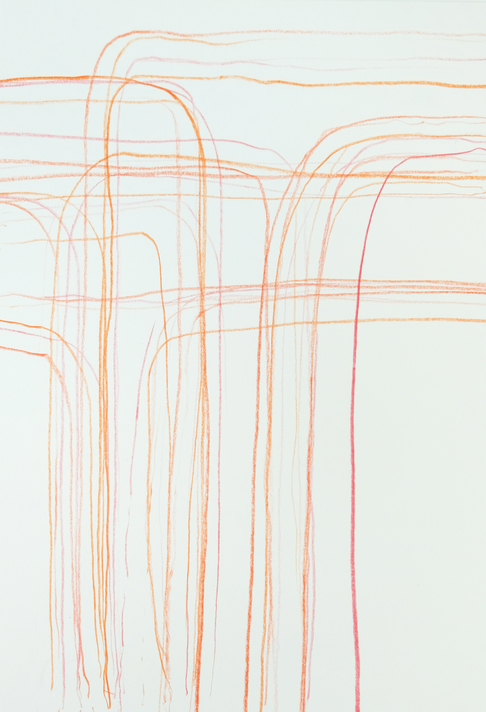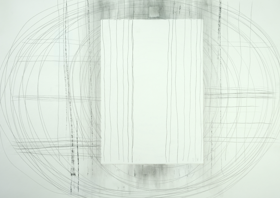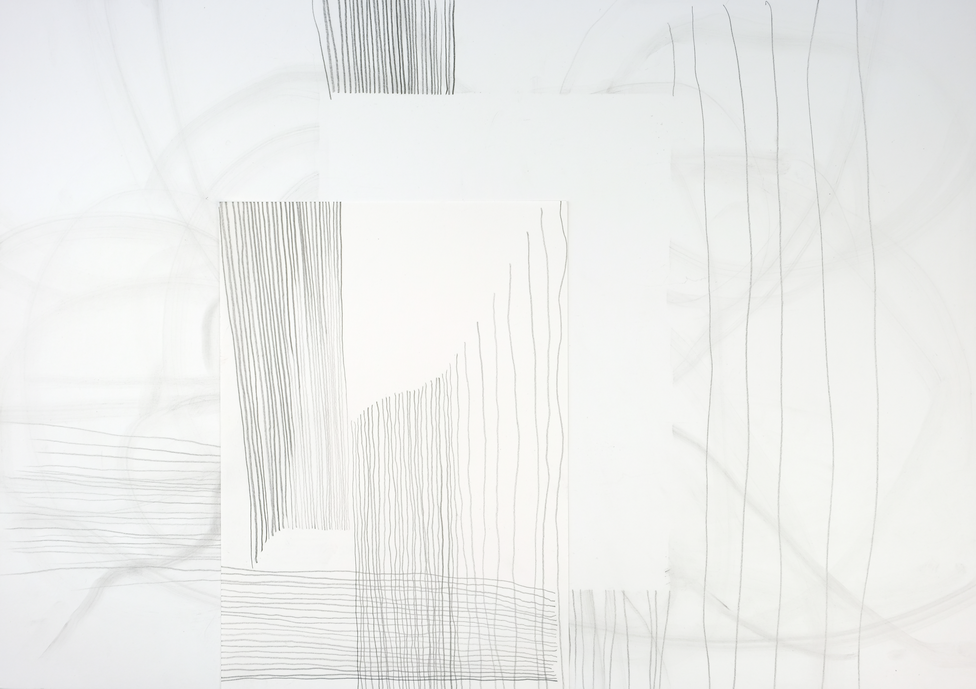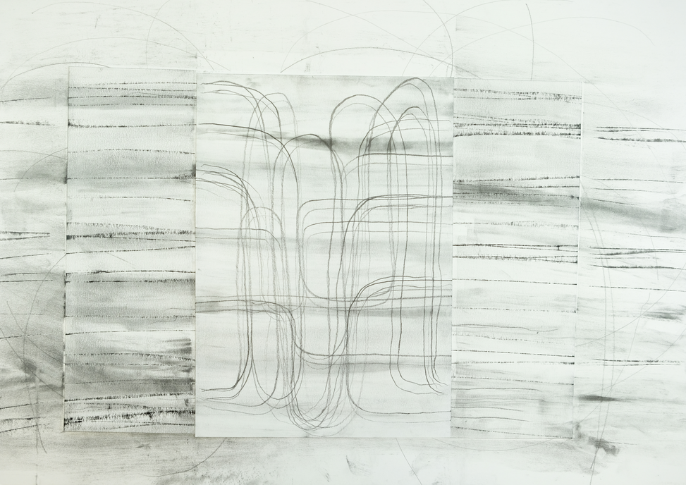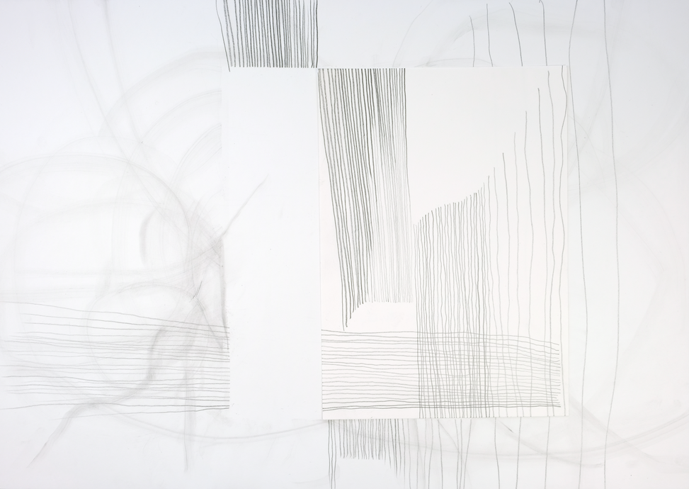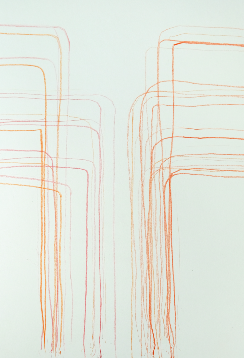 I. Expecting. Ex-pecting. Awaiting. Not yet. Sinking. Folding. Tending. Continuity. Conducive. Differentiation. Trembling thresholds. Open sensing. Delicate decisions. Wavering edge. Lines, soft, fluid. Con-currence. Curvature. Connection. Continuity, coexisting. Co-operation. Realising. Disappearing. Soft letting. Interweaving. Looking, waiting. It is not obvious. Decisions arising - materialising. Trembling. Bending. Sensing. Not to need to know, to come into a mode of engagement. Hovering light interplay, edges blurring. To activate a space and yet leave it open. Deactivating the willing. Sinking, dissolving. There is a call to enter into dialogue, a language also allowing for no words. Soft, fluid, pulsing. Ex-pecting. What comes through - looking without seeing. An empty frame - this pulsing of listening and inbetween-ness. This being at the edge, practising concurrently. Continuity and discontinuity. Receptivity at the edges to what might be unfolding. Co-existing. It requires a different tone of voice - expanding. Coming into contact. Ob-serving. A rupture, a tangible rhythm. Decisions are not made. Decision arising, materialising. Trembling, not so tangible. There is the matter of relaxation. Sensitivity to these thresholds that happen unexpectedly. Soft quality - almost dusk-like. This play of momentums in all directions. Making differences. Blankness opening, a question of receiving. A mark, a gap. All this interweaving. This drifting in and out. In repetition there is a quality I can sink into. Again, awareness; no negotiating. Again, unfolding. Unfolding appearances. Something happens and it becomes a possibility. There is a call there, an interest to join. The bleed of the present, waiting, waiting, developing.