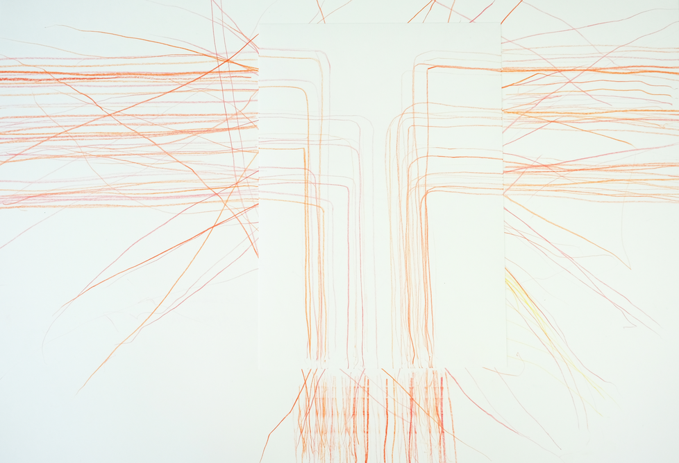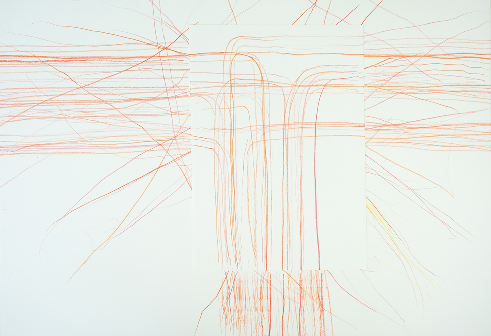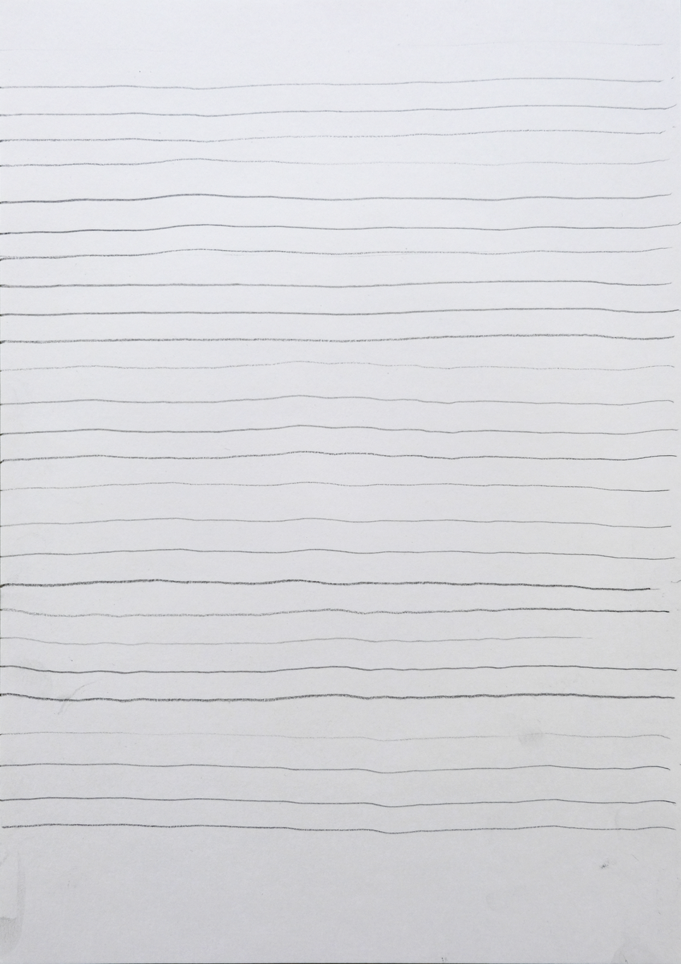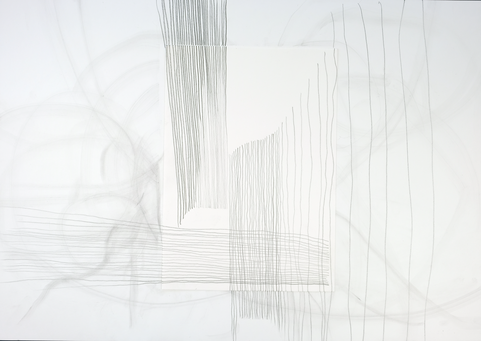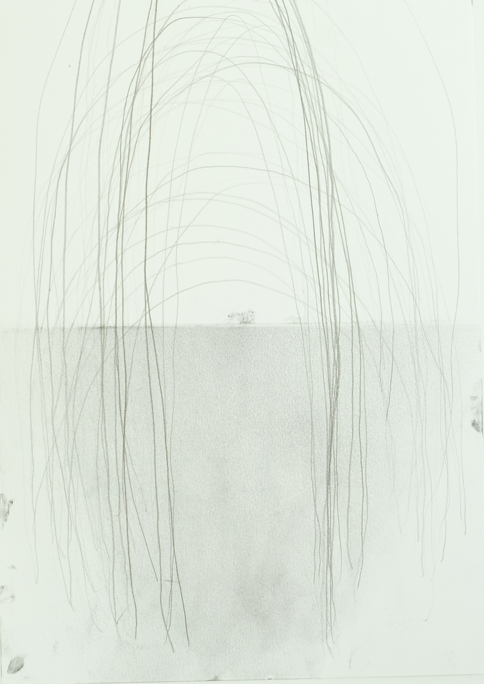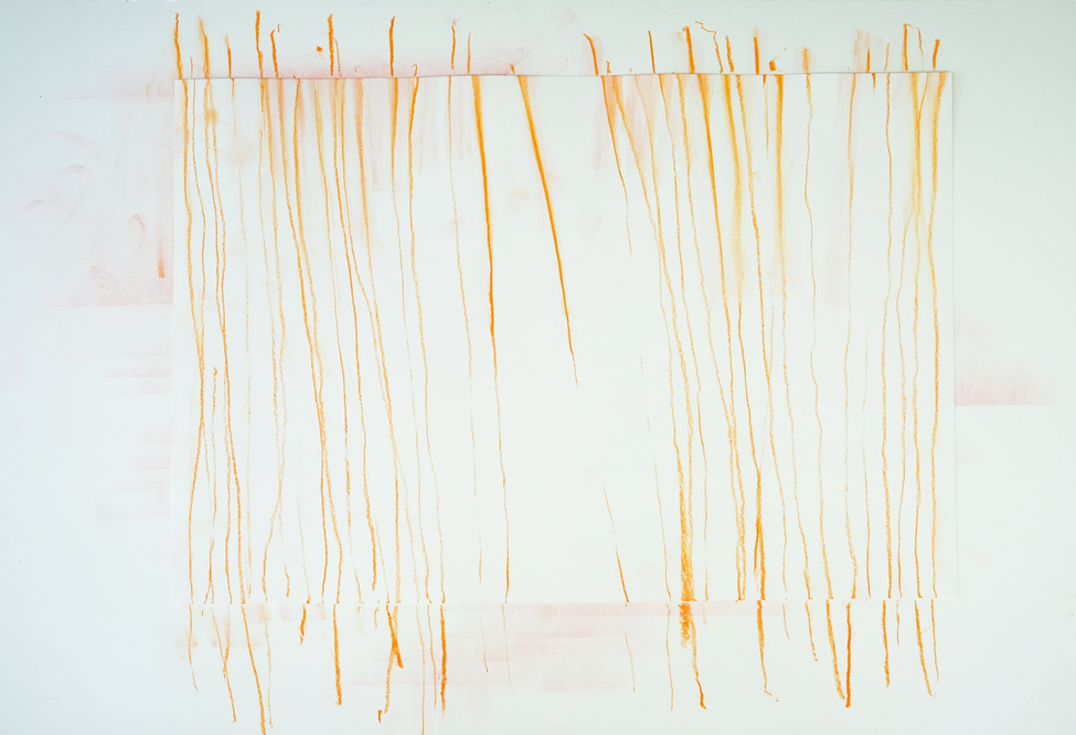 I. Expecting. Ex-pecting. Awaiting. Not yet. Sinking. Folding. Tending. Continuity. Conducive. Differentiation. Trembling thresholds. Open sensing. Delicate decisions. Wavering edge. Lines, soft, fluid. Con-currence. Curvature. Connection. Continuity, coexisting. Co-operation. Realising. Disappearing. Soft letting. Interweaving. Looking, waiting. It is not obvious. Decisions arising - materialising. Trembling. Bending. Sensing. Not to need to know, to come into a mode of engagement. Hovering light interplay, edges blurring. To activate a space and yet leave it open. Deactivating the willing. Sinking, dissolving. There is a call to enter into dialogue, a language also allowing for no words. Soft, fluid, pulsing. Ex-pecting. What comes through - looking without seeing. An empty frame - this pulsing of listening and inbetween-ness. This being at the edge, practising concurrently. Continuity and discontinuity. Receptivity at the edges to what might be unfolding. Co-existing. It requires a different tone of voice - expanding. Coming into contact. Ob-serving. A rupture, a tangible rhythm. Decisions are not made. Decision arising, materialising. Trembling, not so tangible. There is the matter of relaxation. Sensitivity to these thresholds that happen unexpectedly. Soft quality - almost dusk-like. This play of momentums in all directions. Making differences. Blankness opening, a question of receiving. A mark, a gap. All this interweaving. This drifting in and out. In repetition there is a quality I can sink into. Again, awareness; no negotiating. Again, unfolding. Unfolding appearances. Something happens and it becomes a possibility. There is a call there, an interest to join. The bleed of the present, waiting, waiting, developing.