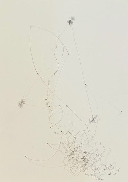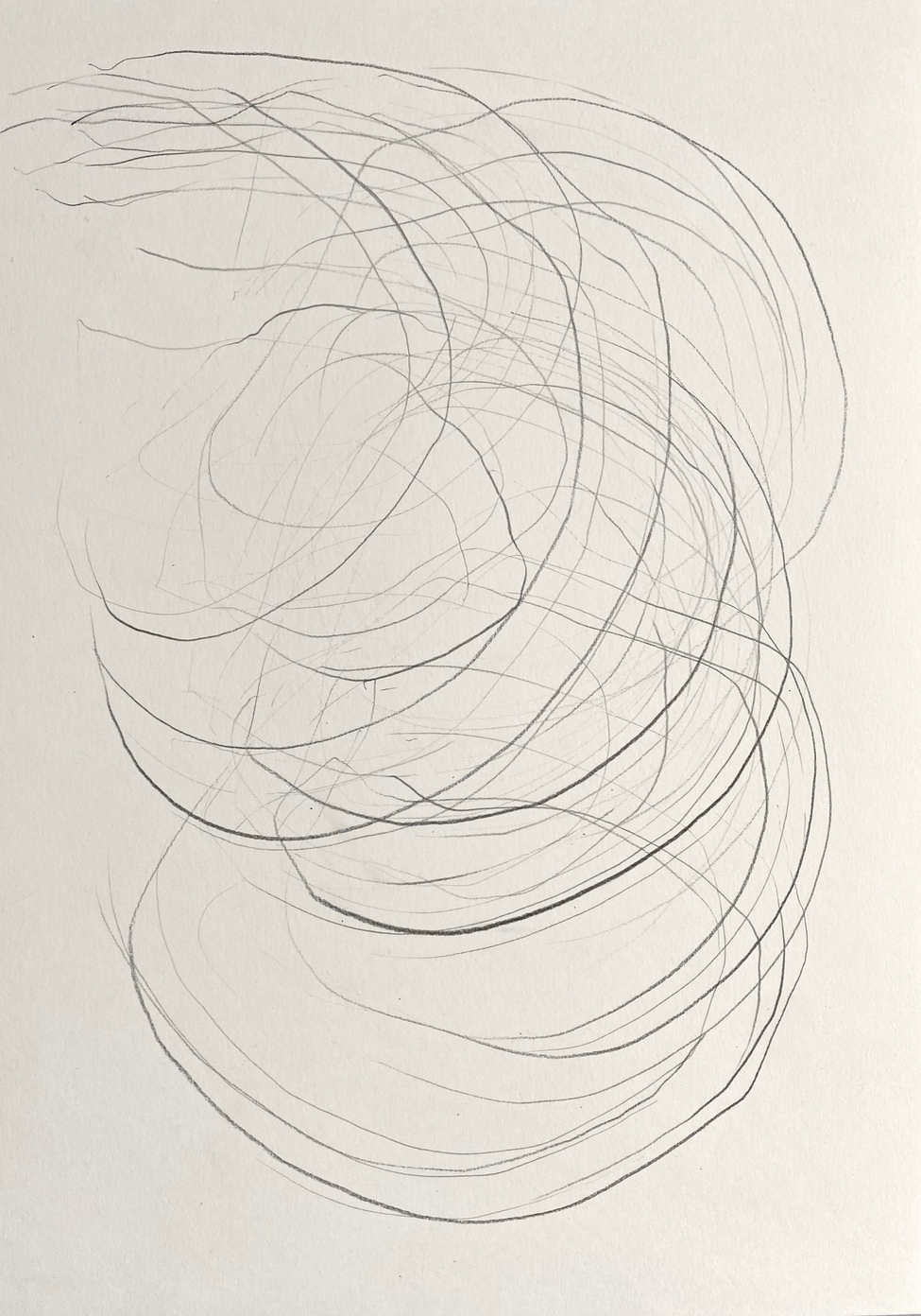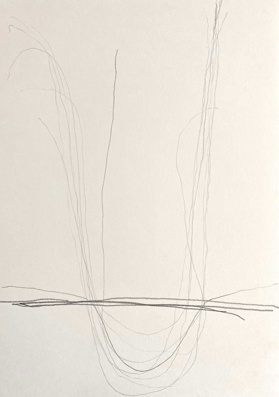 Another entering. Not having the continuity broken. Beginning with. Sensible boundaries, flow of sense. Protecting. Sinking. Coming back. Sensorially open. For just inhabiting hesitation. Can come back – these zones. Fine, thin, delicate membrane. Intermingling between times. Appearances. With noticing. Revolving. Waiting. Saying nothing. Waiting. The other in waiting and waiting to see; actually, not seeing and yet still waiting. Listening. Remaining. Relation as a spacing. And the expansion, very soon letting things, disappearing. Vibrating – a time frame opening. As part, seeing and not seeing. Moving with and letting. Being something, appearing. Perspective proceeding, possibilities shifting. Sense, some sense, now only now. What comes through – it is not obvious but indirect, disappearing. Neither being in connection, being in control. Being in rhythm in a way. Reacting, thus in different ways. Being in one’s own practice. Emergence, this play of momentums. This sense of, this sense of moving, this happening, the sense of how that felt in the body. Bending with, moving with, de-forming – in-forming. Fascination. Pressing. This sense of comfort as a way of proceeding. Unfolding continuum. Being in connection with, adapting, constantly breathing in and out. Which is not this invitation to move forwards, sinking into. Again and again, each time feeling the aliveness of the body. Where do I feel the words? What do I hear? Constantly deciding, this concurrence of the present. A repetition that is never the same. Re-sponding. This sense of movement, this happening. Pulled out of absorption by some influence or force. Re-sonating. Changing and yet retaining slowness. Interest settling. A sense of spatial distancing, sinking. and the outside of that, settling, almost a sense, becoming indistinguishable. Letting a different kind of decision making in this other time. Potentially unfolding, oscillating, not forcing. But also letting pass. Intermingling. Constantly deciding – these shifts, these edges. A silence of soft letting between times. Wandering. Intermingling, in a sense, holding back a sense of recognising. To move on with this quality that you can sink into, this specific quality. Pixelation in the screen, and this movement, this disorientation. Effecting, realising, sinking, still open. From that ground, from that stiller place, an inner sense. This zone and this having no temporal coordinates, only timelessness. This no time as a space of absorption. This sense of there being no I. To be, this parallelity of spaces, parallel spaces and parallel times. Not audible – where am I listening? Do I sense even though it is not obvious. Filtering, thus inevitably, letting pass. Cohabitation. Immanent turning. Drawing into and drawing out. Dissolving. Somehow dissipating. Which binds or combines or lets, this creating and developing something new together, in the togetherness. Following a rhythm. There is a different pace between the appearance of words and the inhaling and exhaling. This zone having no temporal coordinates, only timelessness. Drawing. Repetitional lines. In repetition, there is a quality that I can sink into, a quality of inbetweenness. Intrinsically a form of sharing, a form of sharing, an open field.