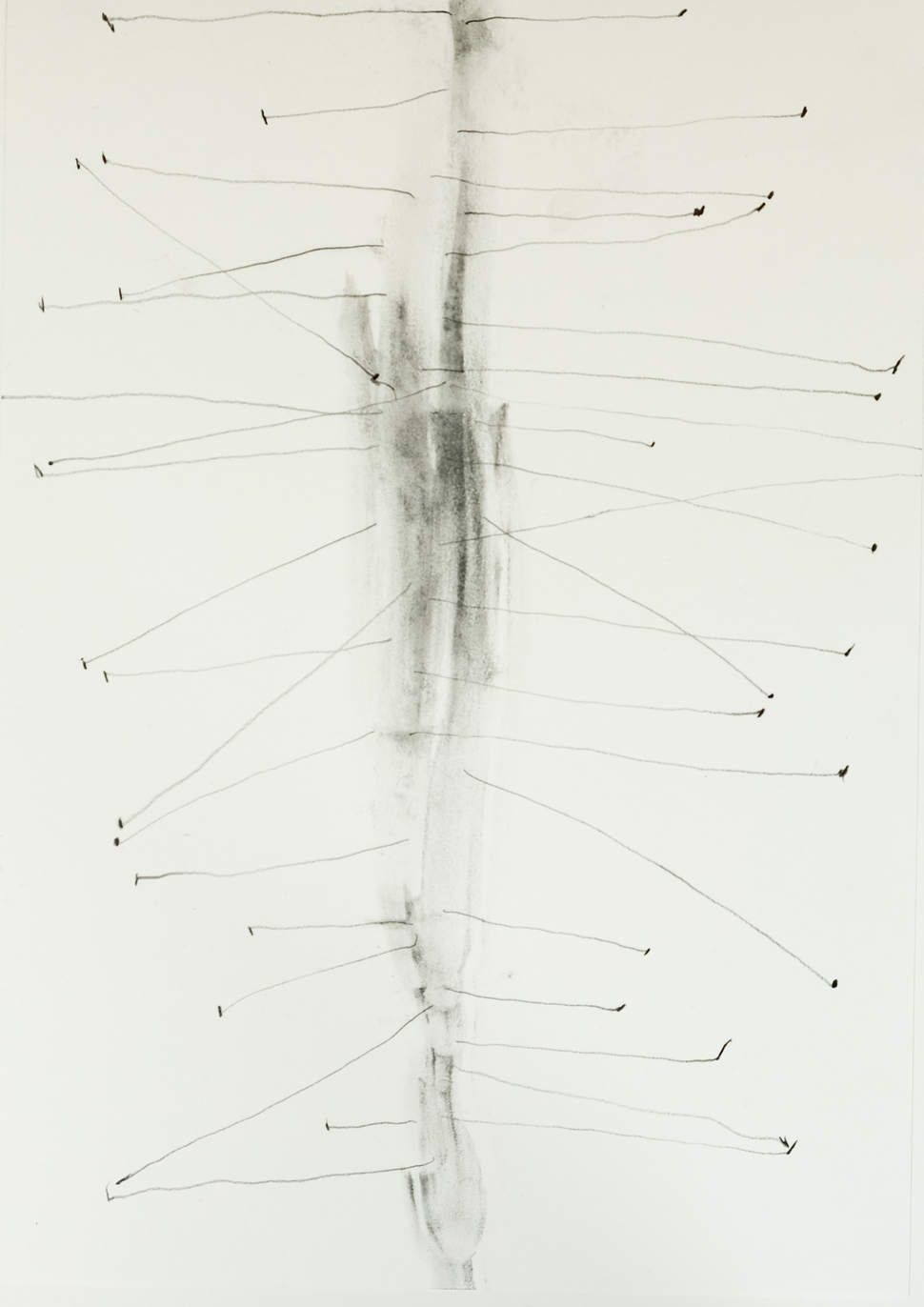 Extension. Curvature. Holding. Different impulses. Disruption. Withdrawal. Concurrency. These sensitivities to different dynamics and rhythms. It is not obvious. Sensitivity to these thresholds sometimes appearing unexpectedly. Sinking. Ex-pecting void emergent. There is also something that is evolving. Not seeing but reacting to different impulses, pulsing. Observing. Anticipating. Trembling. Feeling the infinite possibilities, possibilities appearing. Infinite possibilities of infinite possible touches. Reorientation, next impulses. There is the matter of relaxation, shimmering. This pulsing of listening and in-between-ness. Crystallisation. It opens a field of experience, of difference. To activate a space and yet leave it open. Opening. Sinking. Possibilities resonating – mutual in relation, sometimes leading and sometimes following. Possibilities actualised by the influence of other agencies, immanent difference. In-fluence. It is not consistent, and yet this lack of consistency is not a failure or a deficit. Approach and then dispersal. Communicable, this wondering, coming nearer and moving away. The slowness manifests in different ways – pulsing, intermingling, wondering. It is demanding, to activate a space and yet leave it open. These two zones unfolding – opening and closing. Co-inhabitation. Without looking, letting. Letting as a different kind of deciding. There arises a kind of impulse out of experiencing. Again and again, this invitation to move forwards, constantly breathing, bending, realising. Pulled into the shadow saying nothing. This being at the edge. Practising concurrently, co-existing. Receptivity at the edges of what might be unfolding. Something happens and it becomes a possibility. A generative field of discrete tension. Expecting, ex-pecting. Dissolving. Wavering. Delaying. A space of delaying. Letting as a different kind of decision making, delaying the actualisation of the course of events. It opens up a field of experience. To be attentive to the mode of attention. Approach and then dispersal, drawing in and drawing out. Coming nearer and moving away. This line of concurrence, this pull, listening. Moving. All this interweaving. The impulse to continue, to continue, is felt in the body. It is not a question that it works. All this interweaving, rhythms overlapping. A minimal form of isolation, wavering. Unfolding. Not seeing – to realise the sensual concurrency, agencies receiving. A space becomes, becoming middle, becoming difference, becoming drawing. This opening, again and again. Something becoming, what comes, what comes through trembling. An empty frame. Something thrown. There is a matter of relaxation – waiting, receiving reality. To begin with reorientation – the same with the voice, there is also something that is evolving. Not seeing, holding. Settling. Sinking slowness. Opening possibilities, expanding. Every practice has its own conditions of relation – to enter again, in touch in duration, a modulating resonance. Tending to touch – approximating, anticipating a necessary continuity. Mobilising the space and the time inbetween, to realise. A curvature of in-touch-ness. A deviation, tangents trembling. Infinite possibilities, actualisations of infinite possible surfaces. Something happens and it becomes a possibility. Spaces coexisting. Different impulses, realising. No me controlling – always between, an empty frame trembling, waiting.