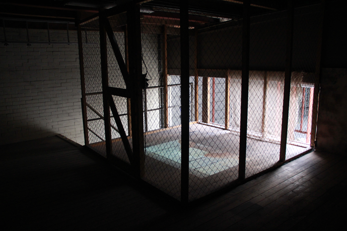 "Follow me" highlights the history and aesthetic of the building in its current stage and combines it with the personal view and presence of the artist in this space.