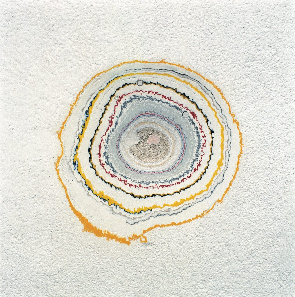 Art galleries like to paint their walls to correspond to the theme and the artworks that will be displayed in their different exhibitions, creating an immersive space for the visitor. The French artist, Pierre Huyghe, applied a grinder to the wall of one of these spaces, revealing the history of the gallery and its exhibition programme, much like the rings of a tree reveal aspects of past events in its life cycle.