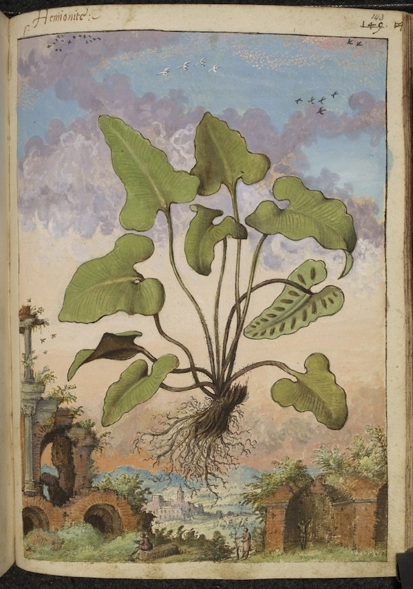 Our dependency on plants to supply us with medicines has a long and rich history that dates back hundreds and hundreds of years. This full-page watercolour illustration is from a 16th-century edition of Pedanius Dioscorides's work on herbal medicine, De Materia Medica. Dioscorides (ca. 40–90 AD), was a Greek physician and botanist, considered to be the father of pharmacology. His five-volume book is hailed, by many, as the forerunner of modern pharmacopoeias (books that record medicines along with their effects and directions for their use).