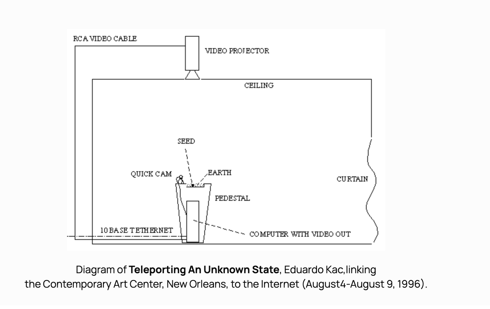 Teleporting an Unknown State was an interactive installation in 2003 by the Brazilian and American contemporary artist, Eduardo Kac, that transformed the Internet into a life-sustaining system.