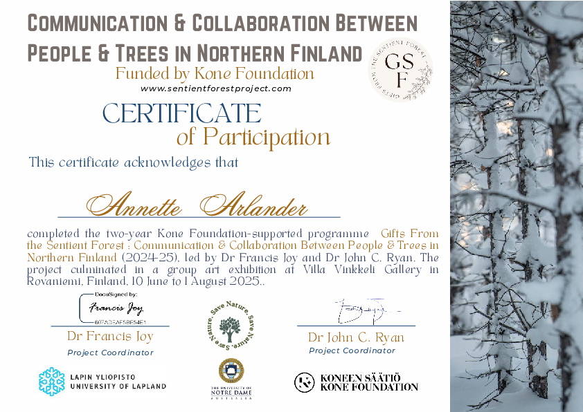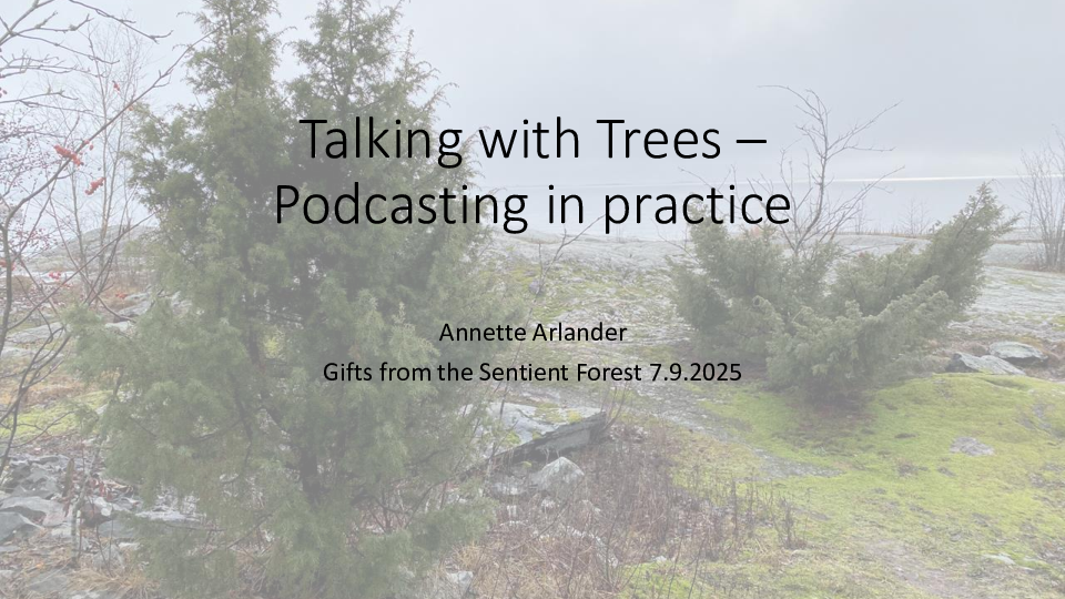 It contains material created for and in the context of the research project Gifts from the Sentient Forest at the University of Lapland. See https://www.sentientforestproject.com