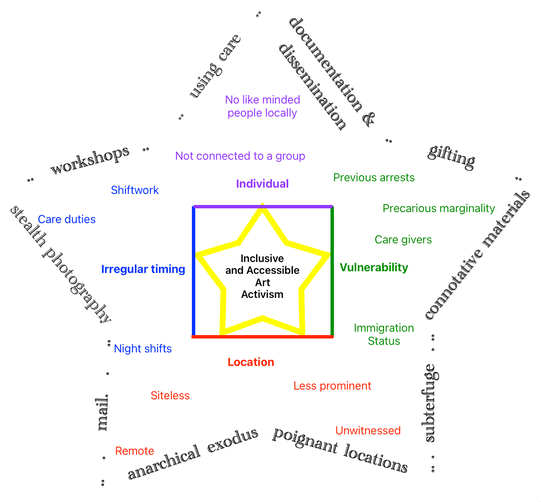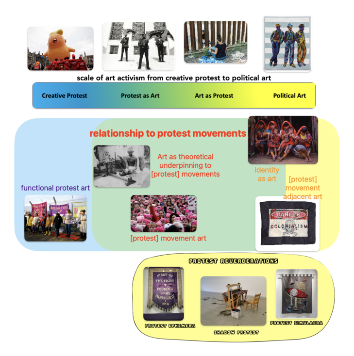 Art activism is powerful. Also known as activist art, protest art, visual activism, artivism and creative activism, it changes lives, situations and is and has been a powerful weapon across a whole spectrum of struggles for justice. Teresa Sanz & Beatriz Rodriguez-Labajos(2021) relay that art activism has the unique ability to bring cohesion and diverse peoples together and it can, as Zeynep Tufekci notes, change the participants (2017). As Steve Duncombe & Steve Lambert (2021) posit, traditional protesting such as marches or squats are no longer as important as they once were. As a result of my own lived experience in activist activities, I very much agree with Andrew Boyd & Dave Oswald Mitchell (2012) that the reason people use art activism is that it works, by enriching and improving protest. In the past, when I lived in a metropolis and was not a parent, I used to be an activist. Now I no longer have immediate access to international headquarters at which to protest and I have to be concerned with being arrested, I am hindered from protesting. This project is an attempt to increase inclusion and widen access to art activism. By devising methods which include at least one of the following: that do not require on-site participation, that can take place outside the public gaze, that reduce the risk of arrest, that open up protest sites that are not “big targets”, that include remote locations, that involve irregular timing, my thesis aims to increase inclusion and widen access to art activism to those who are underserved by more mainstream methods of conducting art activism. Textiles have unique properties that enable them to engage in subterfuge and speak loudly through care and thought(Bryan-Wilson, 2017). They have strong connotations of domesticity, the body and comfort that can be subverted within art activism to reference lack of this domestic warmth and protection(O’Neill, 2022). Being a slow form of art-making, they show care and thought, attention in the making, so that the messaging is reinforced through this intentionality in slow making.