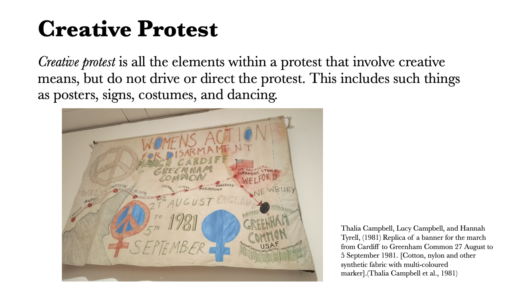 Art activism is powerful. Also known as activist art, protest art, visual activism, artivism and creative activism, it changes lives, situations and is and has been a powerful weapon across a whole spectrum of struggles for justice. Teresa Sanz & Beatriz Rodriguez-Labajos(2021) relay that art activism has the unique ability to bring cohesion and diverse peoples together and it can, as Zeynep Tufekci notes, change the participants (2017). As Steve Duncombe & Steve Lambert (2021) posit, traditional protesting such as marches or squats are no longer as important as they once were. As a result of my own lived experience in activist activities, I very much agree with Andrew Boyd & Dave Oswald Mitchell (2012) that the reason people use art activism is that it works, by enriching and improving protest. In the past, when I lived in a metropolis and was not a parent, I used to be an activist. Now I no longer have immediate access to international headquarters at which to protest and I have to be concerned with being arrested, I am hindered from protesting. This project is an attempt to increase inclusion and widen access to art activism. By devising methods which include at least one of the following: that do not require on-site participation, that can take place outside the public gaze, that reduce the risk of arrest, that open up protest sites that are not “big targets”, that include remote locations, that involve irregular timing, my thesis aims to increase inclusion and widen access to art activism to those who are underserved by more mainstream methods of conducting art activism. Textiles have unique properties that enable them to engage in subterfuge and speak loudly through care and thought(Bryan-Wilson, 2017). They have strong connotations of domesticity, the body and comfort that can be subverted within art activism to reference lack of this domestic warmth and protection(O’Neill, 2022). Being a slow form of art-making, they show care and thought, attention in the making, so that the messaging is reinforced through this intentionality in slow making.