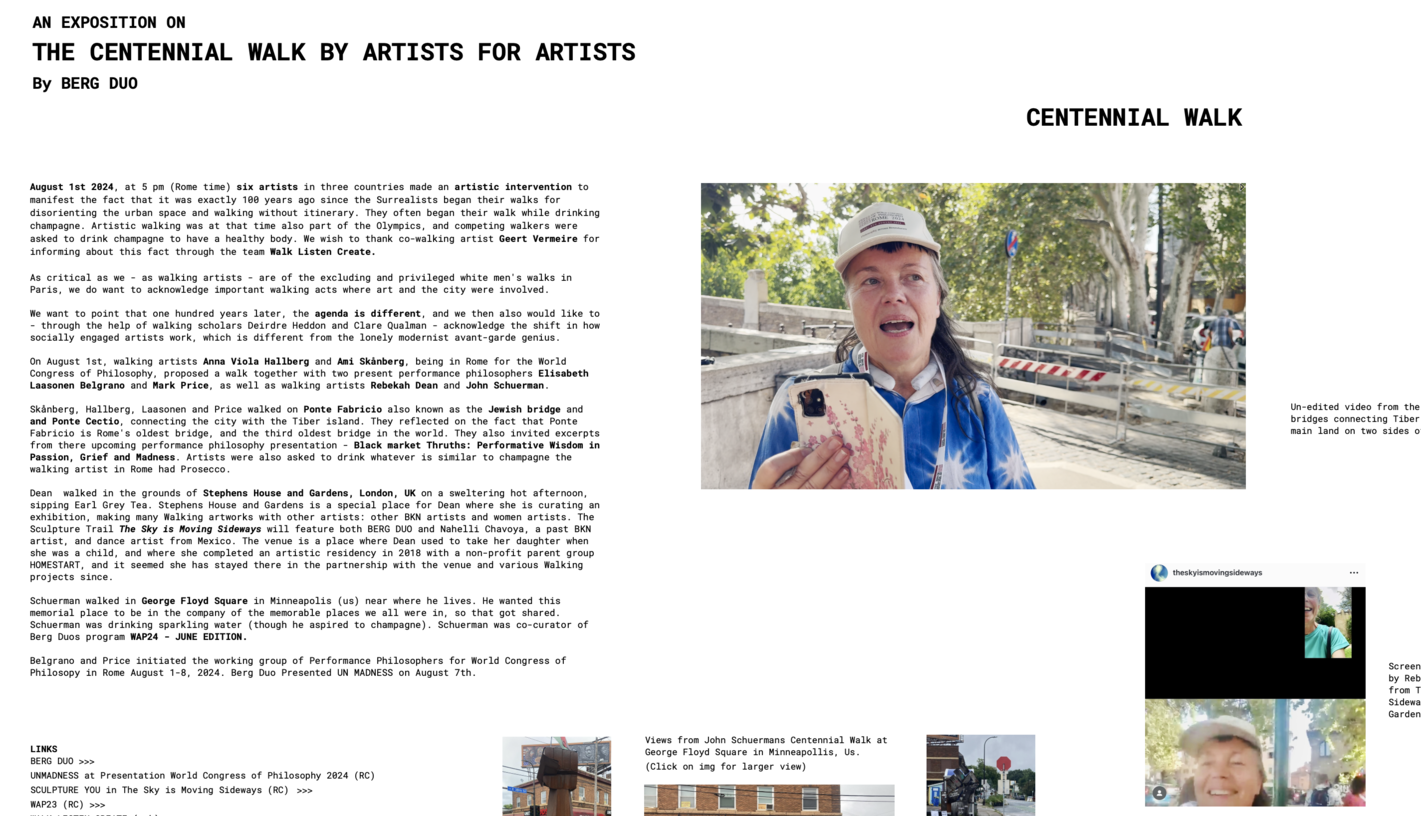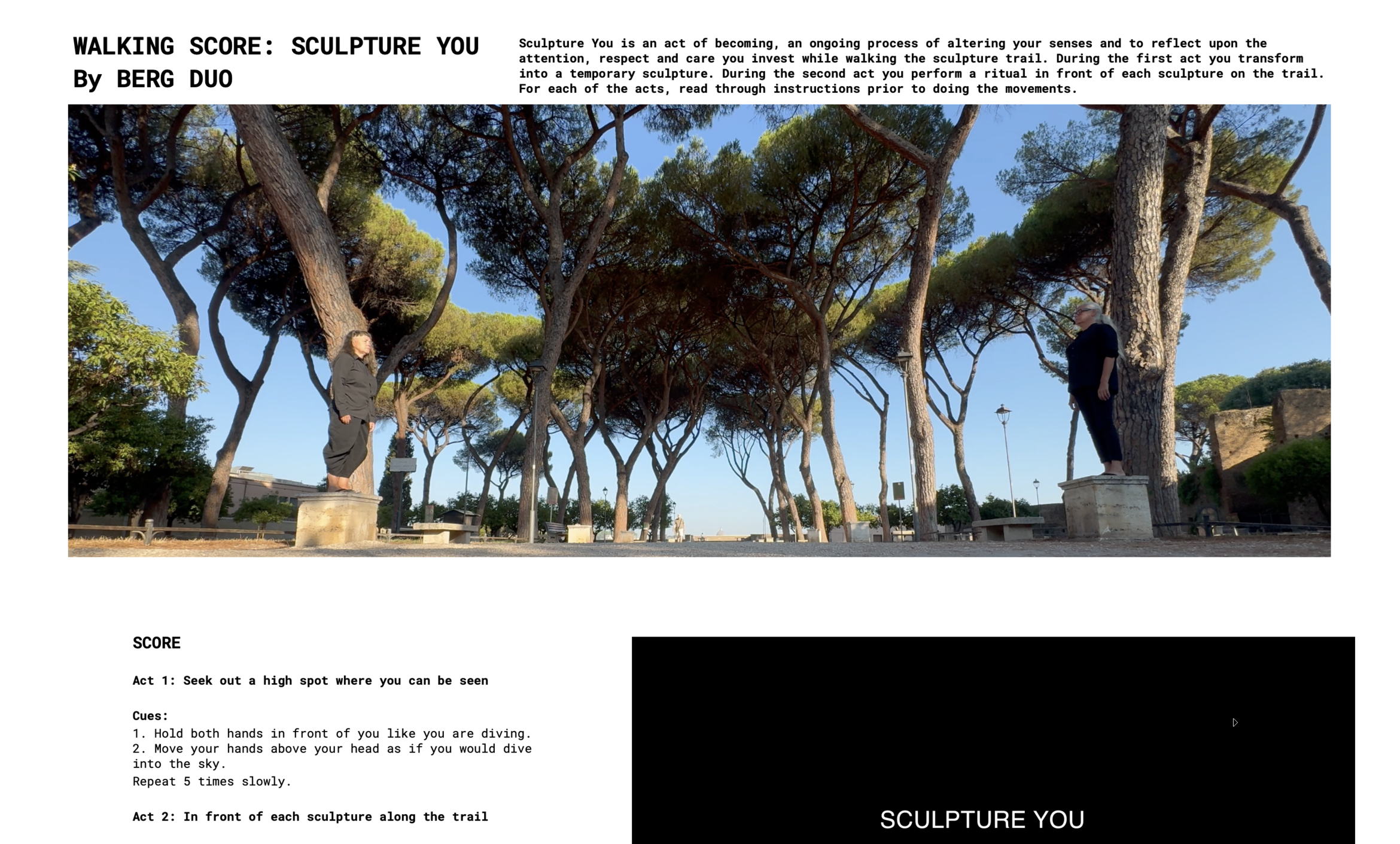 Berg Duo is part of the research group OneByWalking Network, for collaboration, discussion, and experimentation within the area of research methodologies concerned with walking, as well as experimental, scientific and art-based work related to walking methodologies.