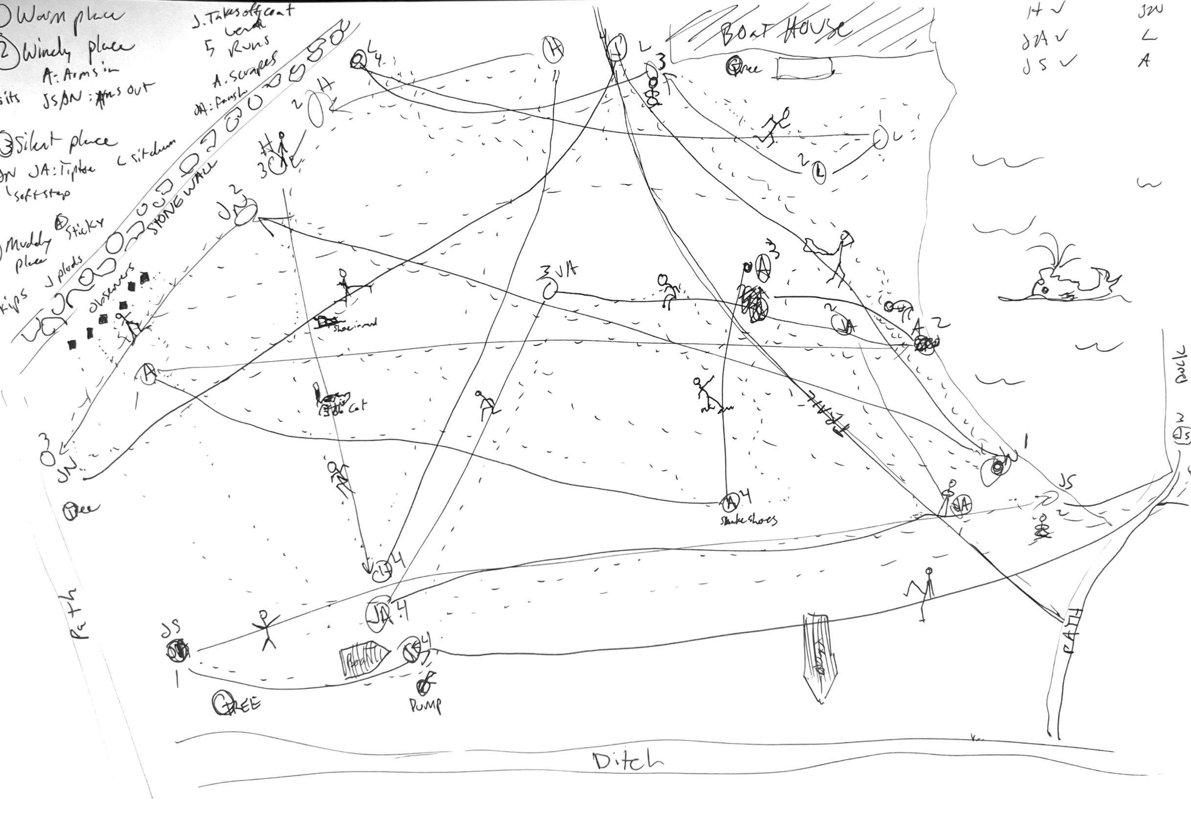 Background image commissioned drawing/Map of Korpoström fileld/Choreography notation of workshop conducted by Jesse D. Peterson as part or workshop Walking is Space