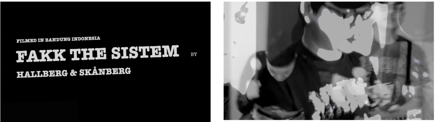 FAKK THE SISTEM is a stand alone 16 min documentary built on a personal exploration of the traces of Anti Cimex primarily in Bandung, hence contacts were generated with Punks visiting the city from Borneo, Jakarta and Sumatra. Hallberg and Skånberg are curious to continue the roadtrip into a full length documentary on the state of mind of resistance and freedom fight in Indonesia. This put in perspective with the conditions of the Swedish government supported rehearsal spaces for young bands in the 1990s is something the artists reflect over. How is this linked to forming a youth that is engaged with the construction of present and future societal systems? FAKK THE SISTEM is not only a fan movie, or a legacy movie of Anti Cimex it is also a brief insight to what the Bandung punk scene looks like in 2023.