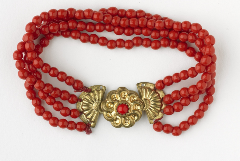 The streekdracht was still very alive within the farmer community, even though it was taking over elements of the current fashion. There was a bit of resistance against some of the elements of the traditional wear.The ‘Stiklijf’ is replaced by the ‘Jak’, which is cut deeper so that beech and cloth are more visible. Instead of the flat straw head, the female farmers, would wear the ‘Kaphoed’. The ear iron, made from gold or silver, would get smaller and would be attached to more visible decorations, the ‘Stukken’ in Zuid-Beveland and the ‘krullen’ in Walcheren. New is also the multi-stranded red coral necklace with a round golden lock. These changes were mostly driven by young women.