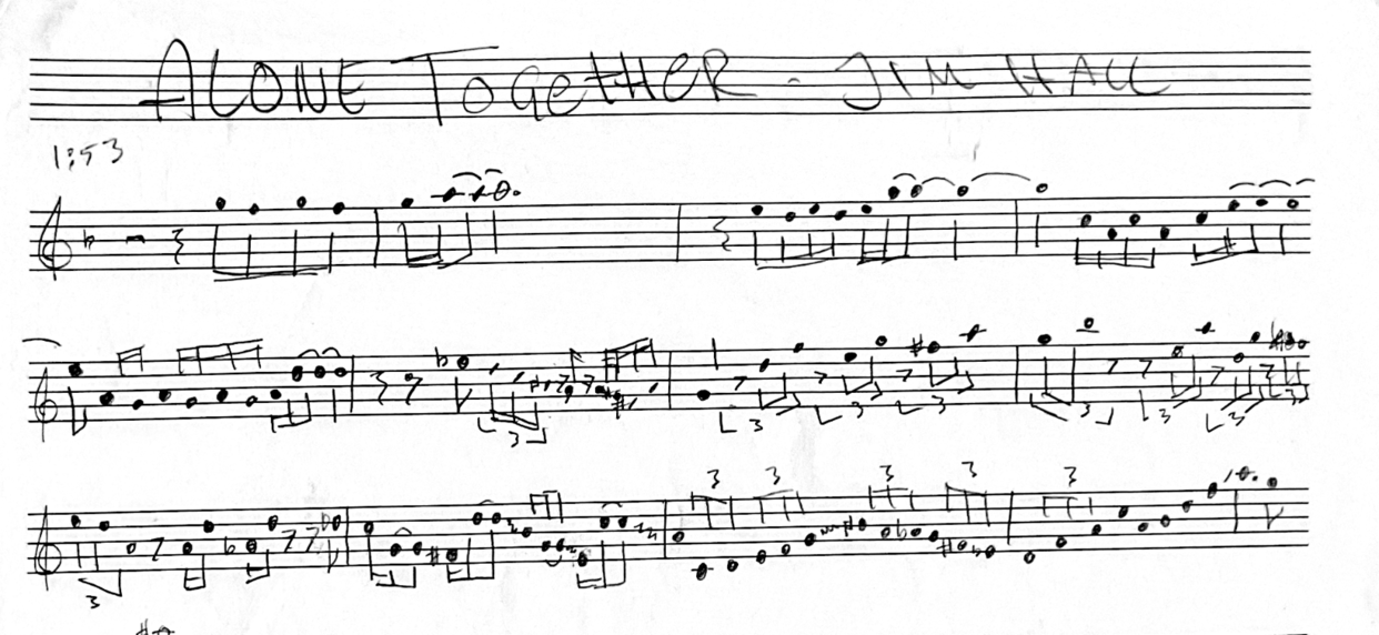 Jim Hall, guitar solo on "Alone Together", By Arthur Schwartz. Recorded August 4, 1972 at Playboy Club, New York, with Ron Carter.