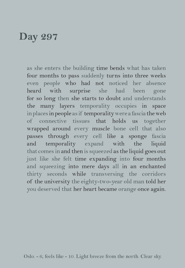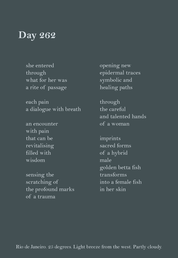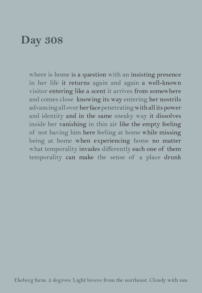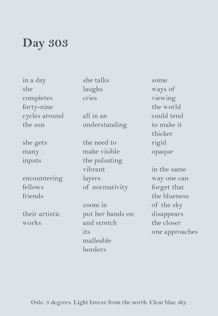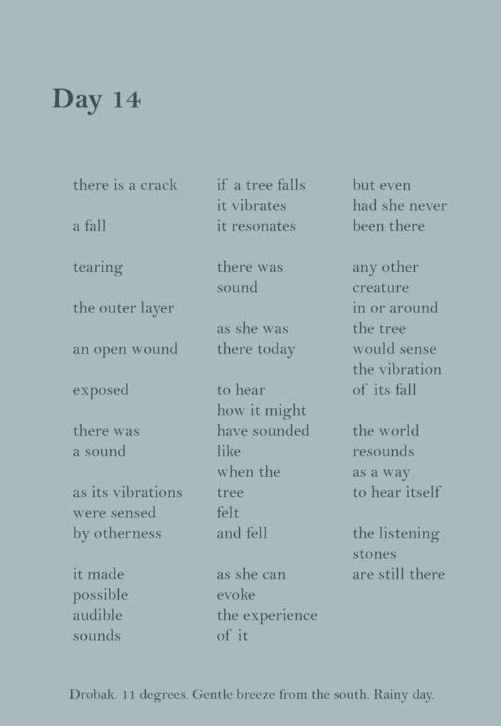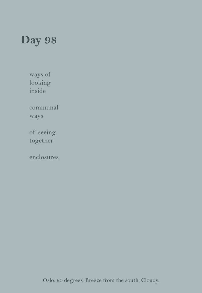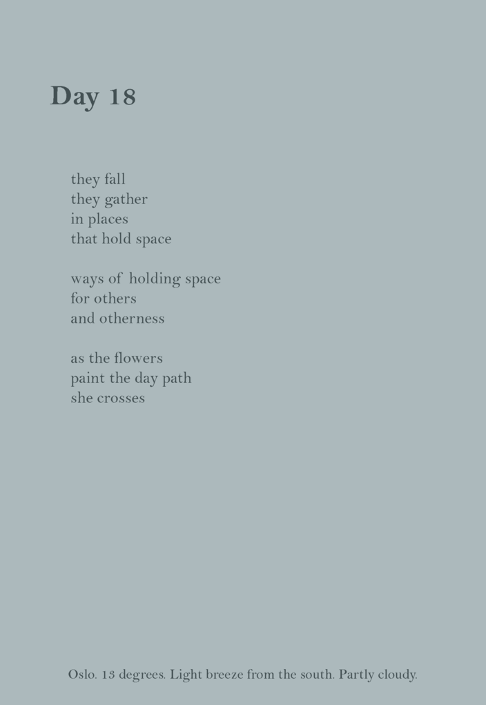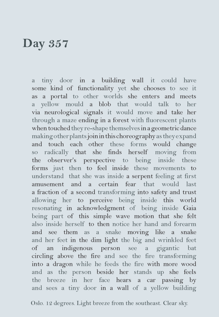 This exposition presents the PhD Artistic Research project environment embodiment - towards poetic narratives by Fernanda Branco at the Oslo National Academy of the Arts (2020-2024). This artistic research explores experiential agency in encounters between body and environment. It draws from uncanny, embodied, and poetic perspectives and unfolds as a constellation of sympoietic practices. PhD Supervisors: Rebecca Hilton - Stockholm University of the Arts (2021-2024) Gunhild Mathea Olaussen - KHiO (2021-2022) Dora Garcia - KHiO (2023-2024) Fernanda Branco has designed this exposition in collaboration with web designer Ellen Palmeira. Illustrations by Aza Drawings by Francisco Blixt Cards and booklets designed by Amanda Costa