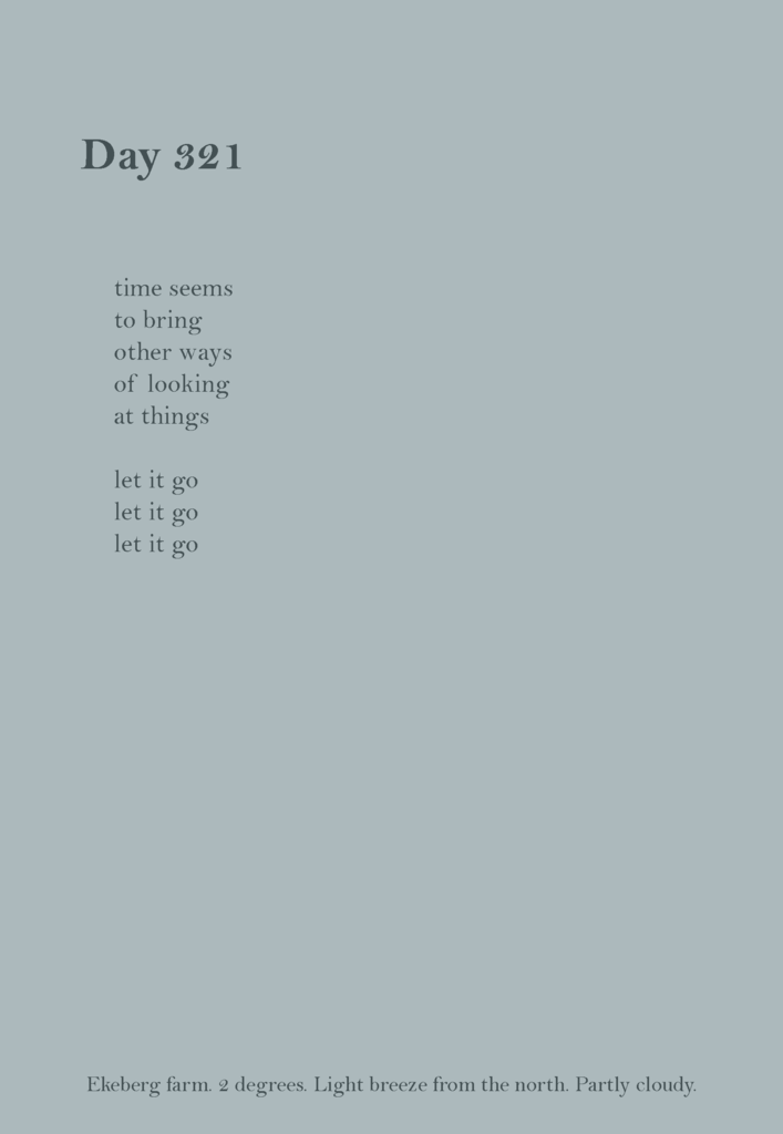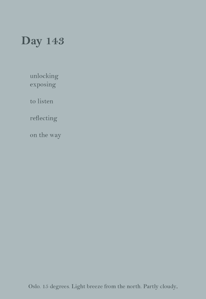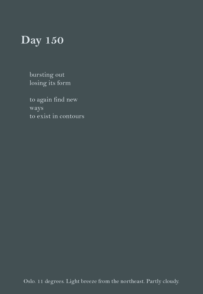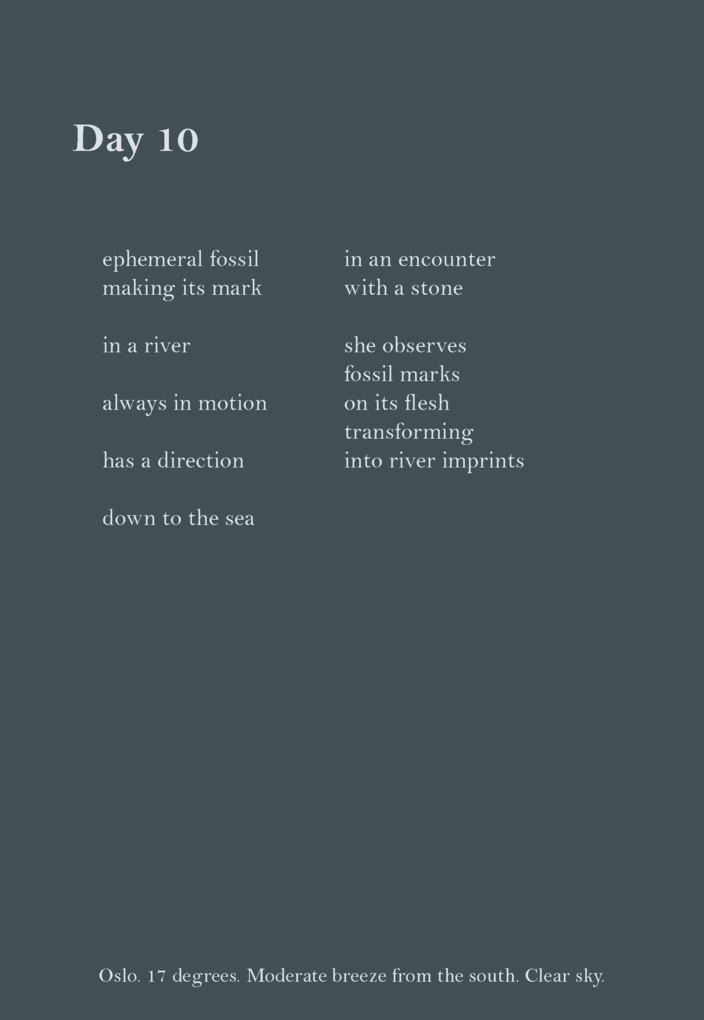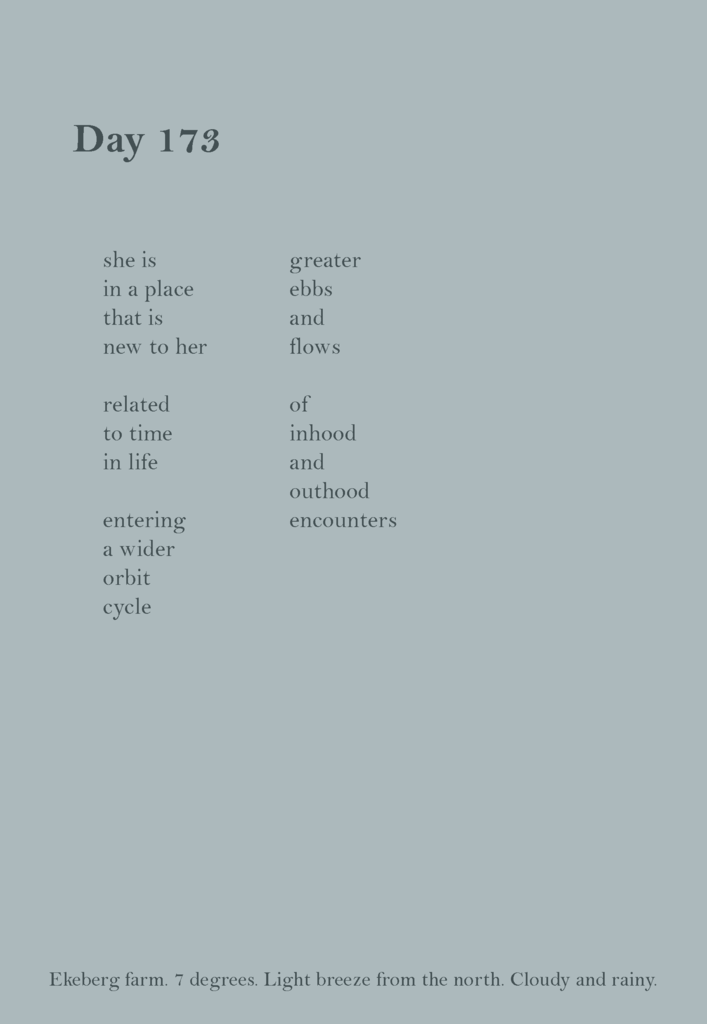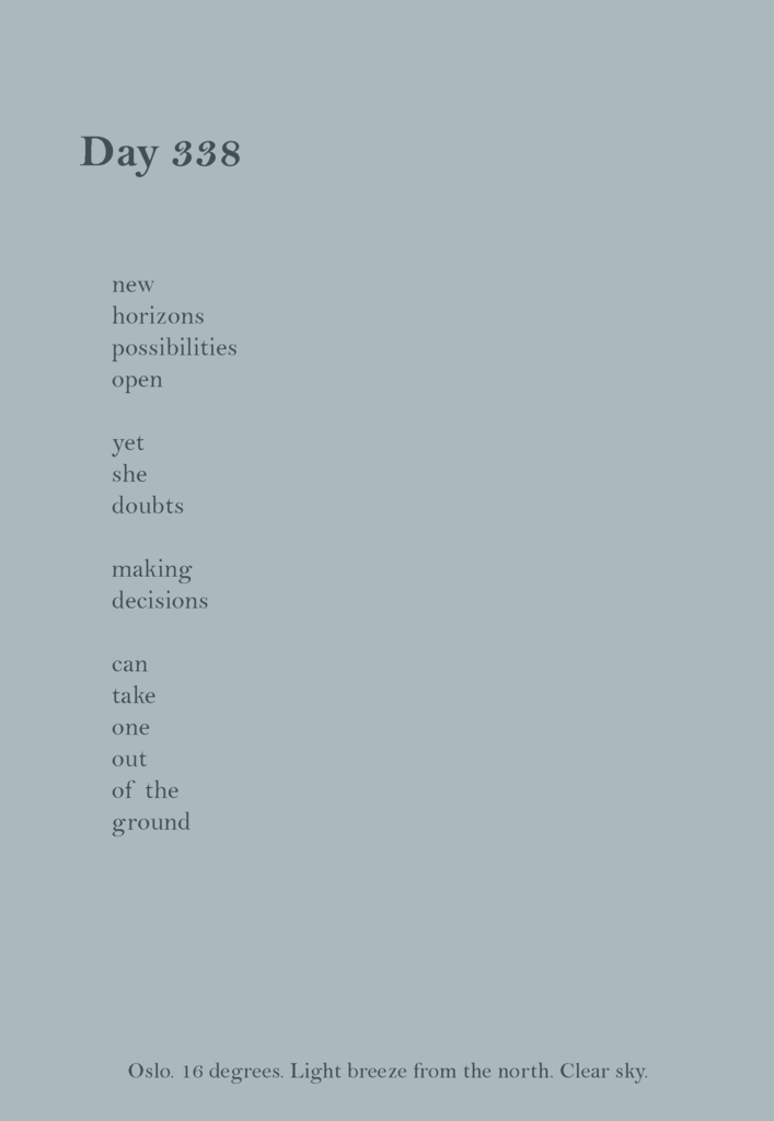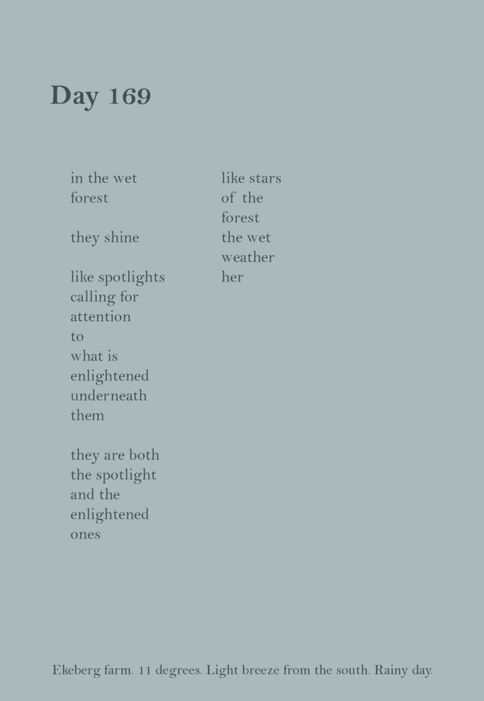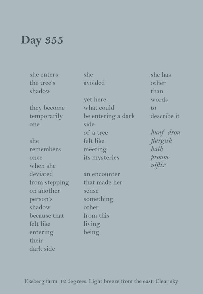 is a compilation of 365 cards documenting one year of daily practice, consisting of a walk, a poem, and a weather registration.