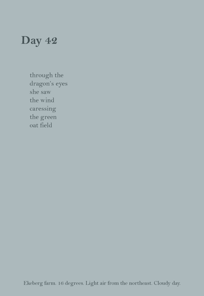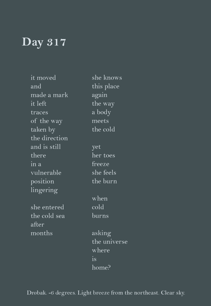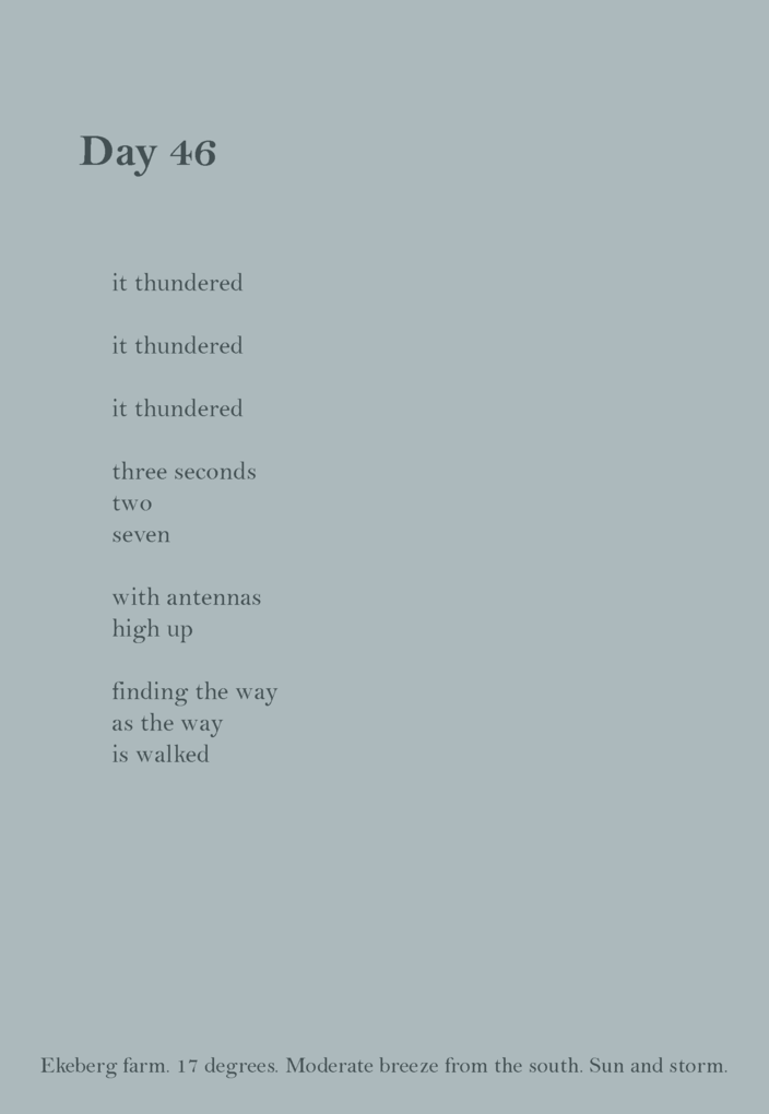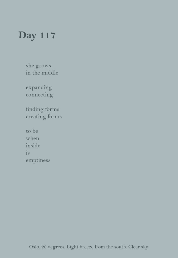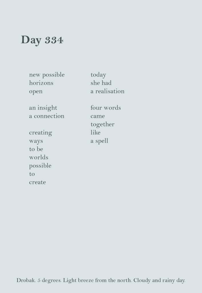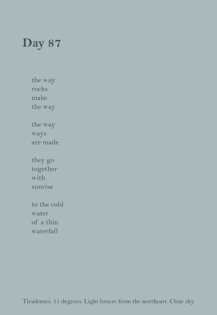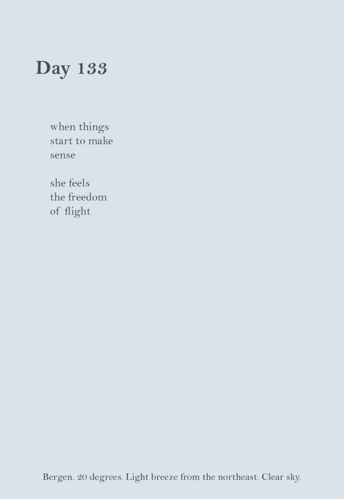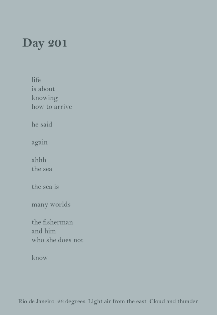 is a compilation of 365 cards documenting one year of daily practice, consisting of a walk, a poem, and a weather registration.