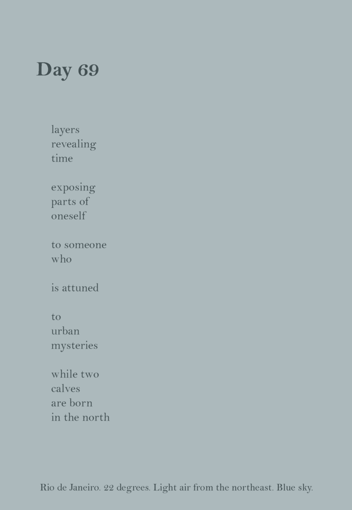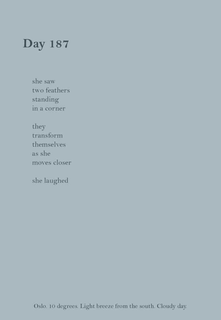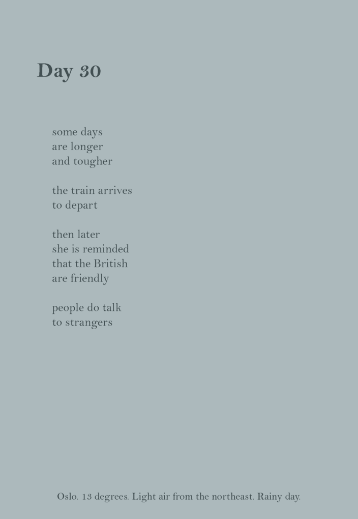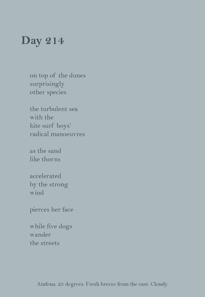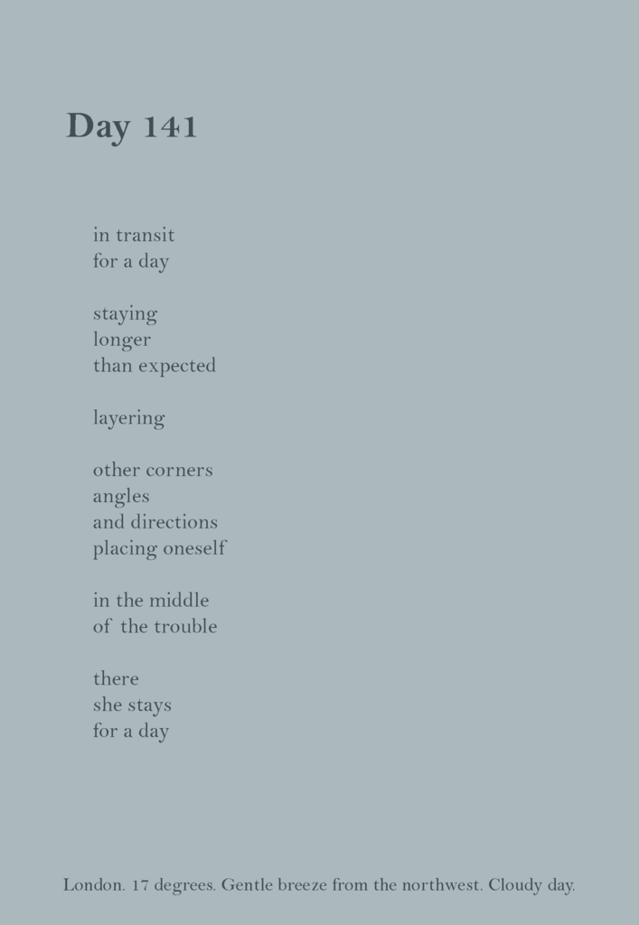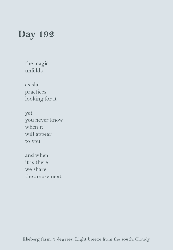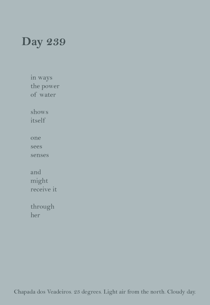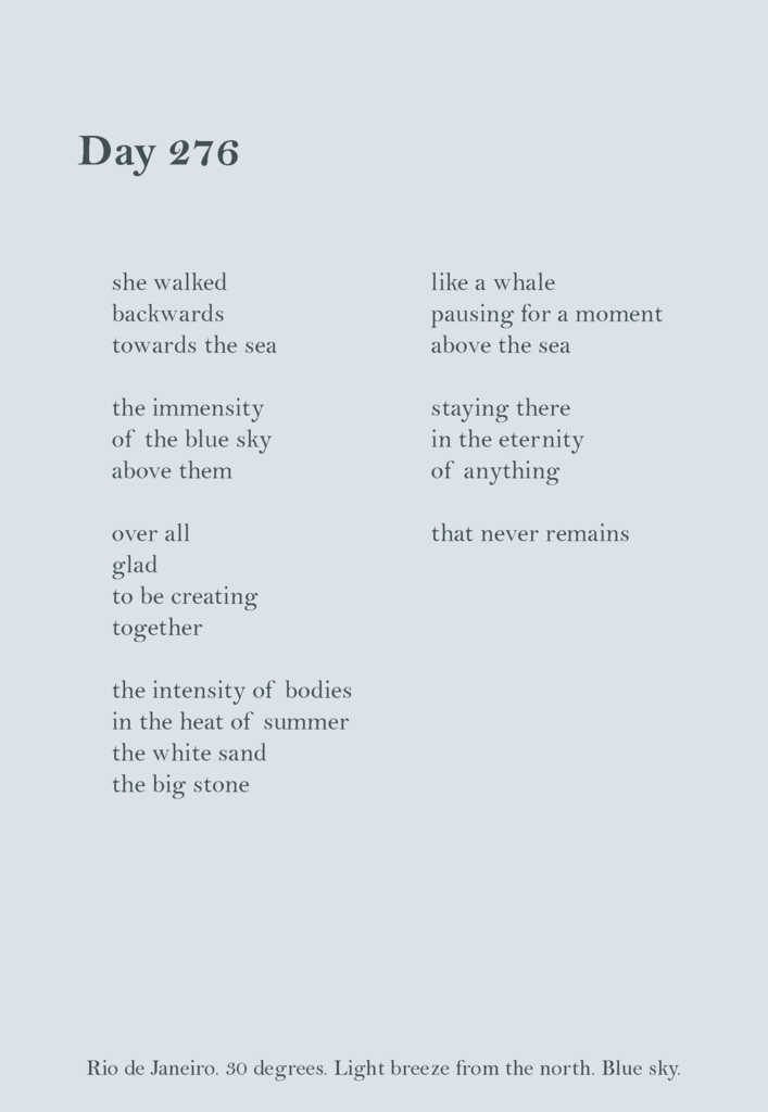is a compilation of 365 cards documenting one year of daily practice, consisting of a walk, a poem, and a weather registration.