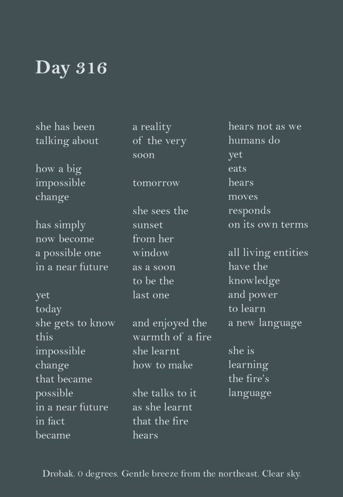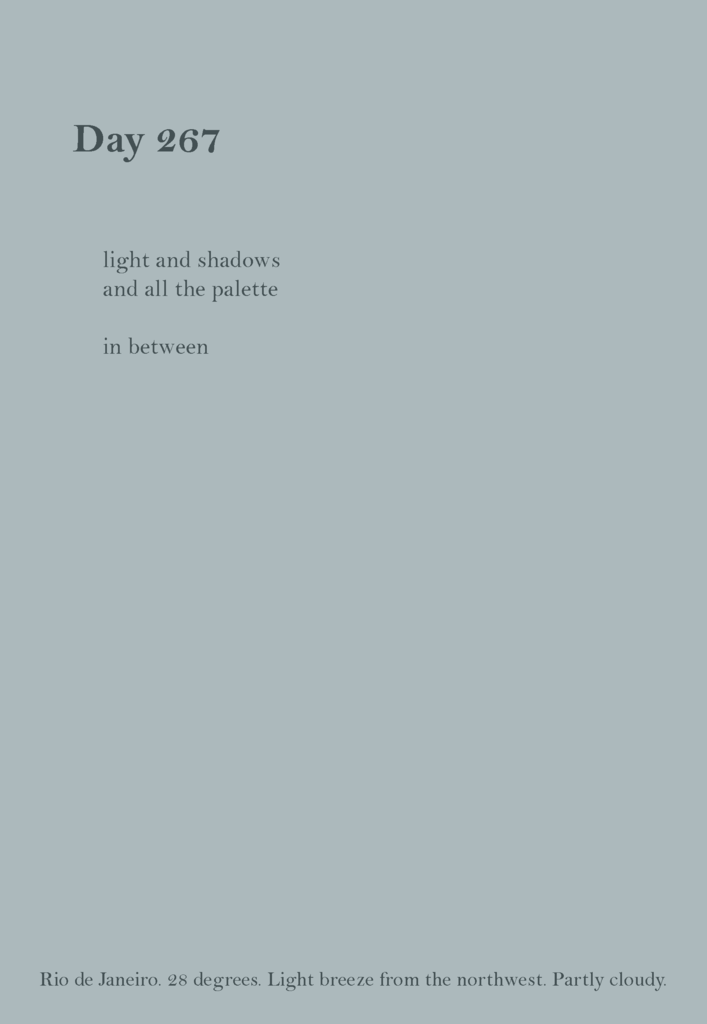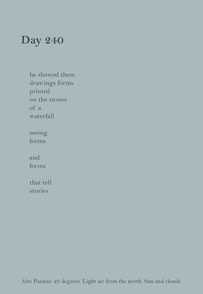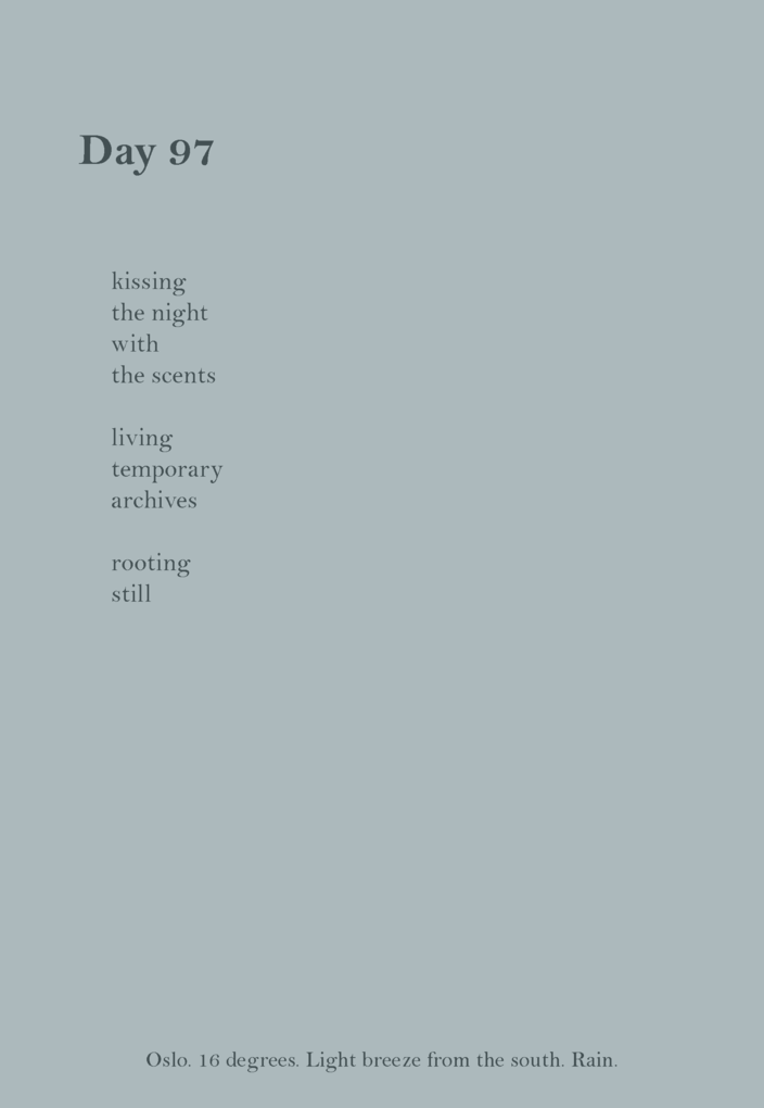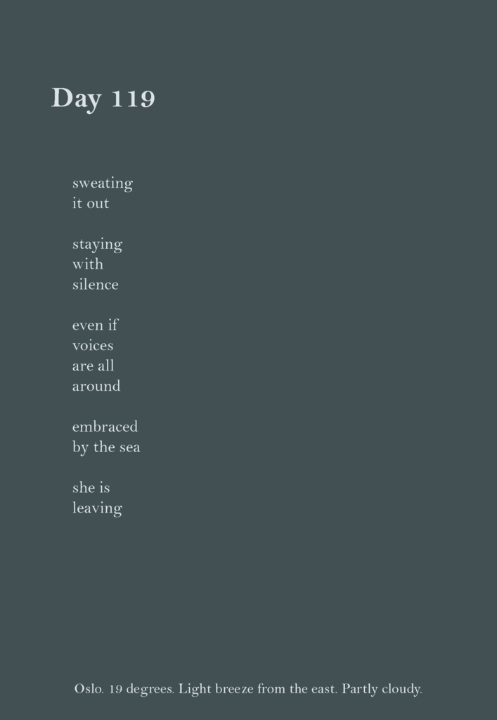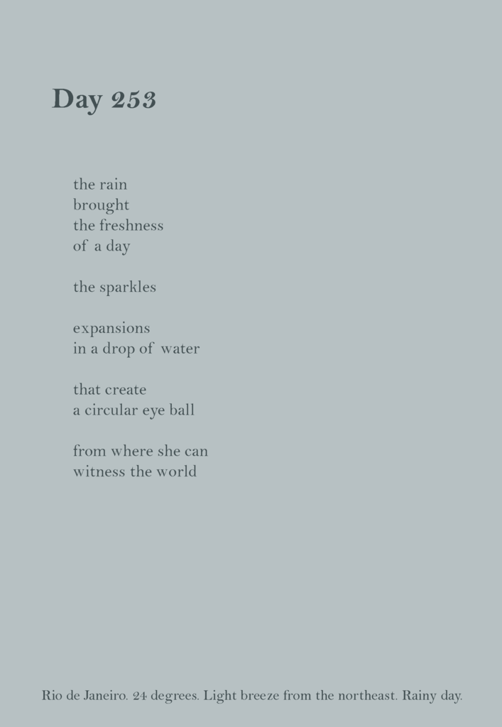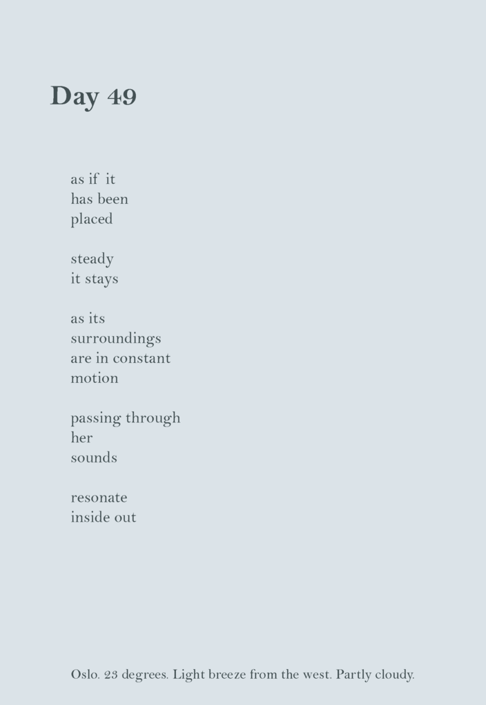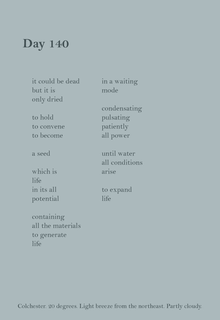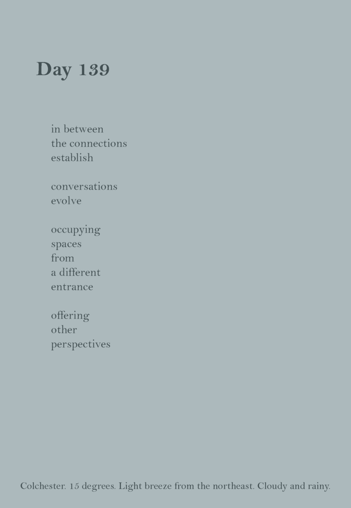 is a compilation of 365 cards documenting one year of daily practice, consisting of a walk, a poem, and a weather registration.