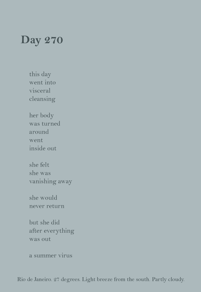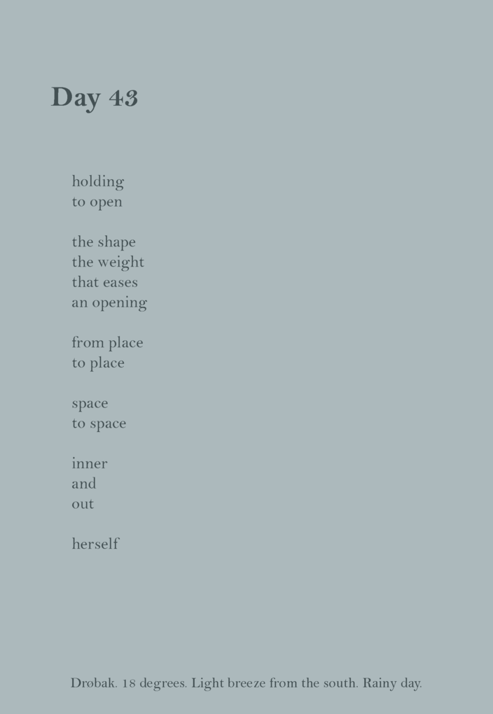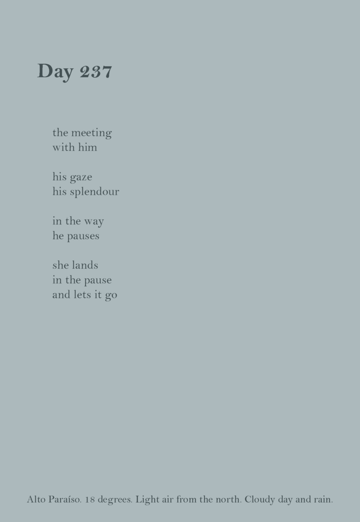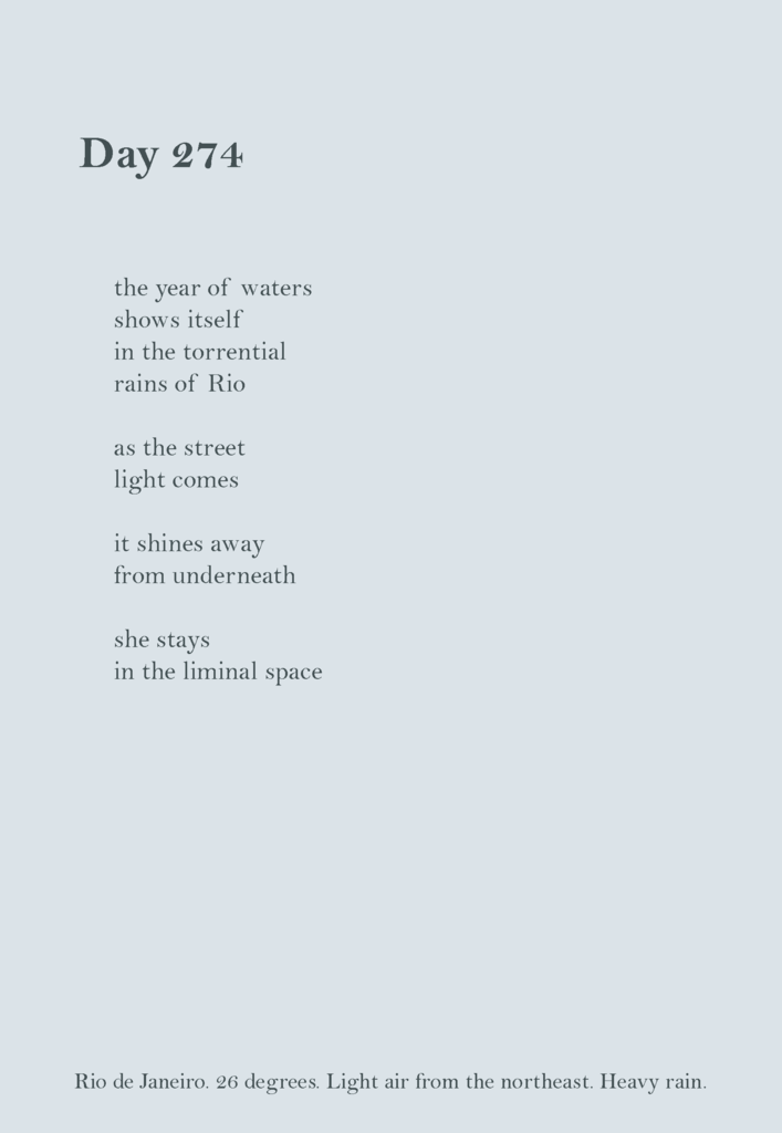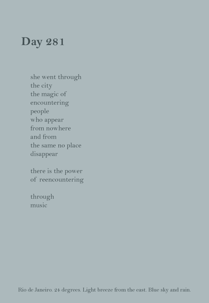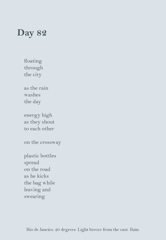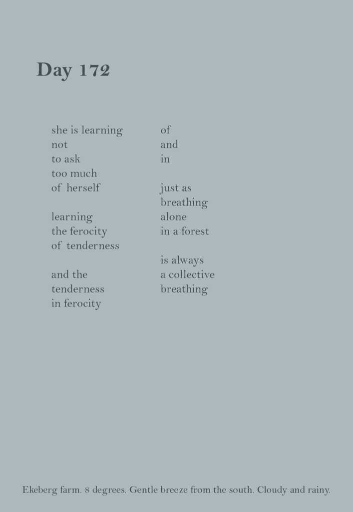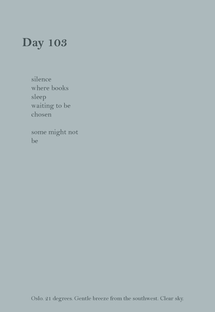 is a compilation of 365 cards documenting one year of daily practice, consisting of a walk, a poem, and a weather registration.