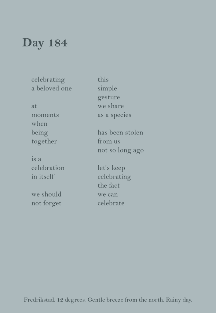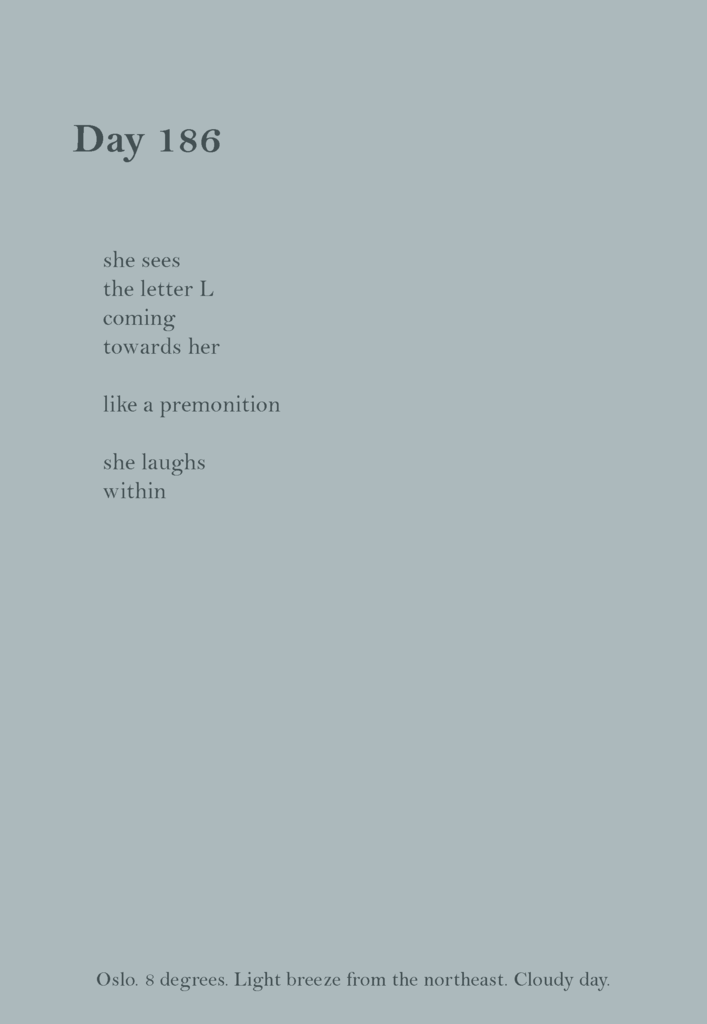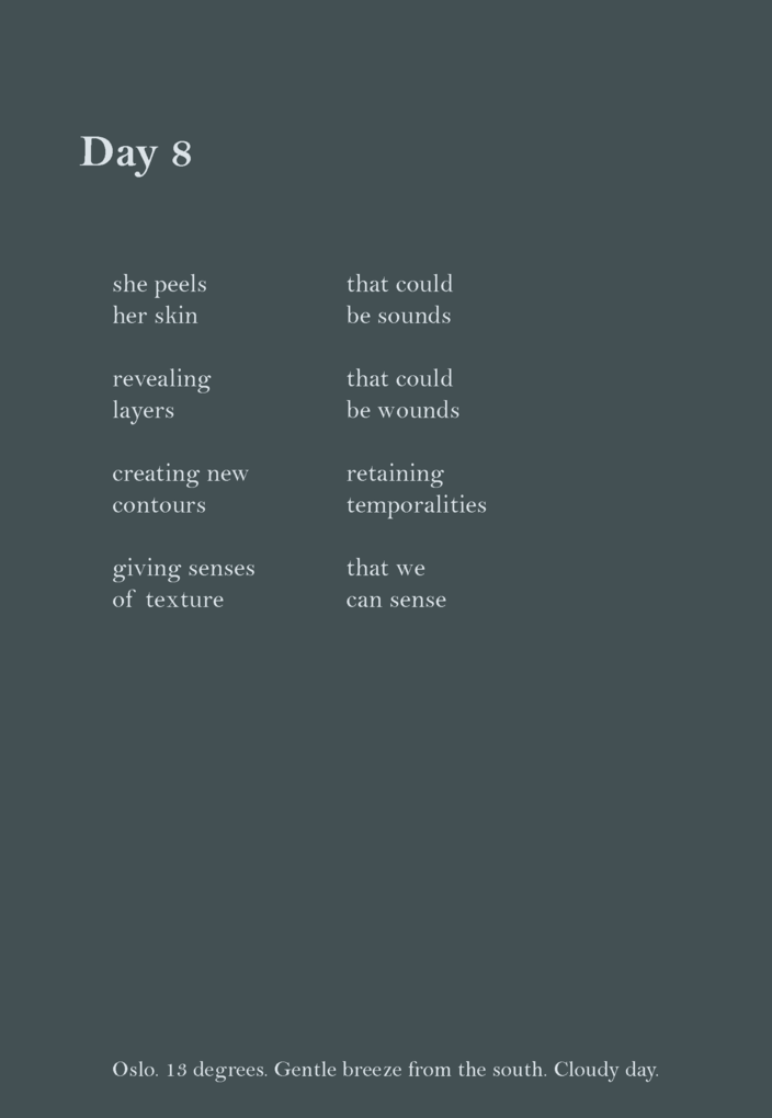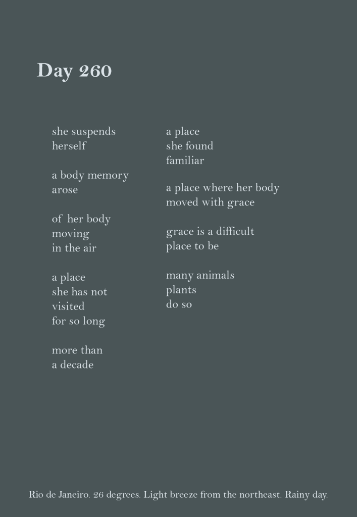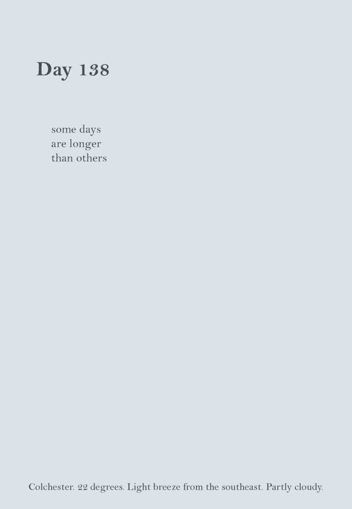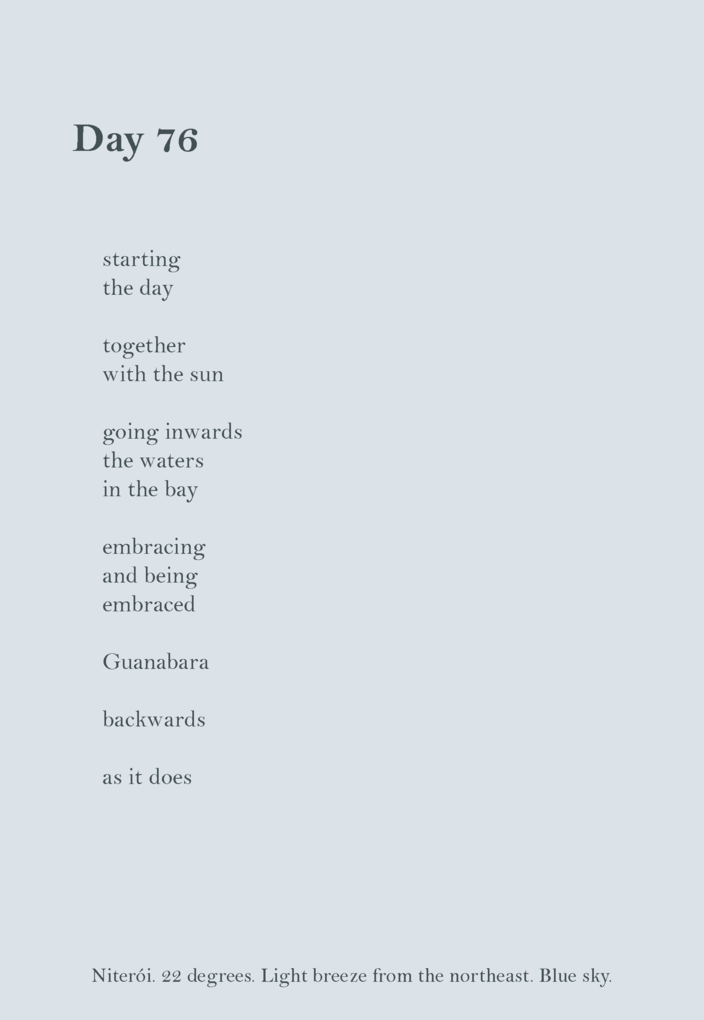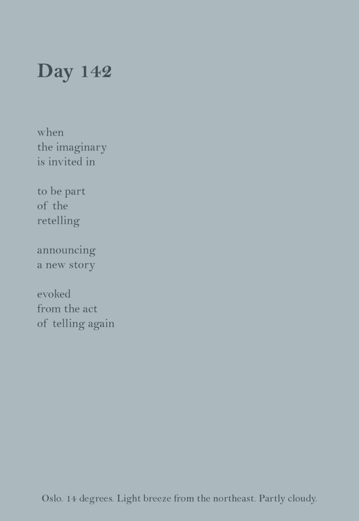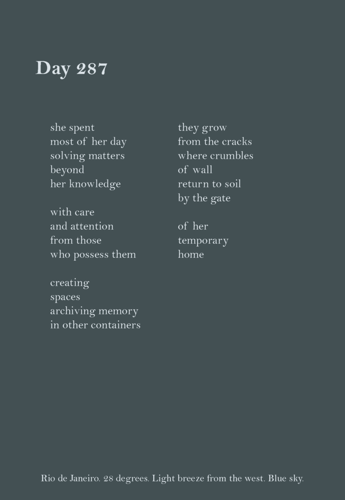is a compilation of 365 cards documenting one year of daily practice, consisting of a walk, a poem, and a weather registration.