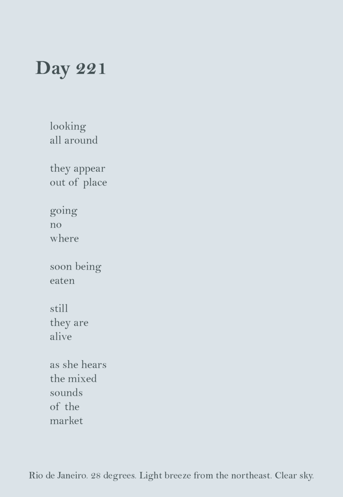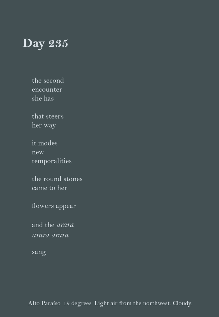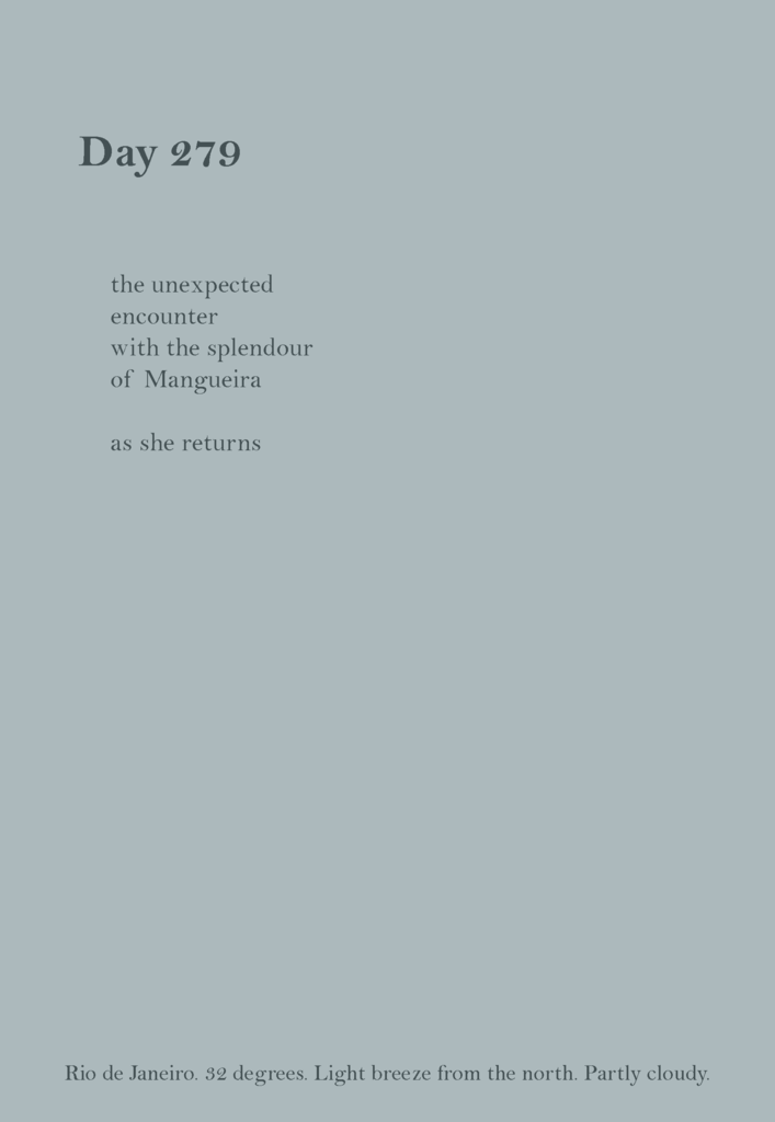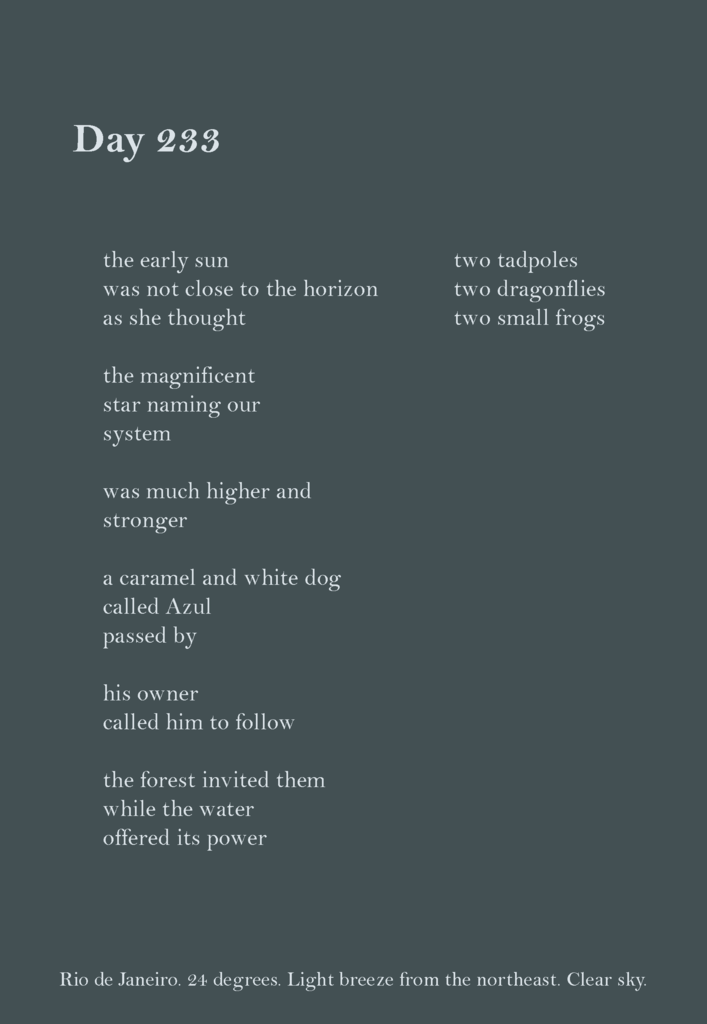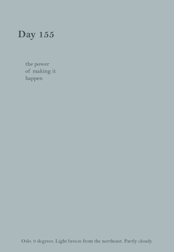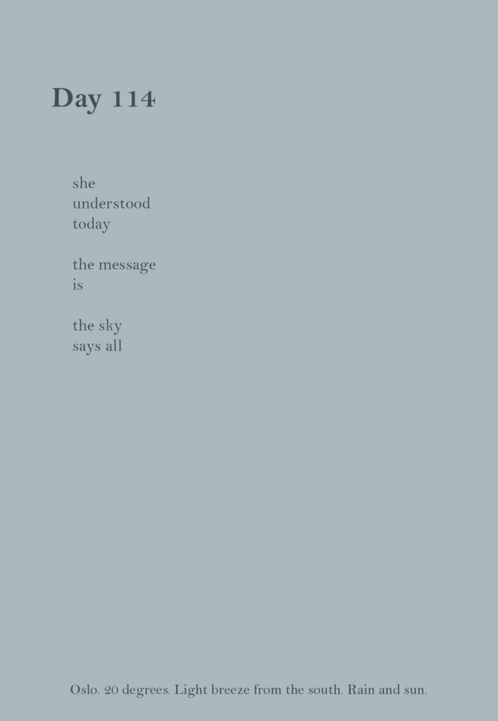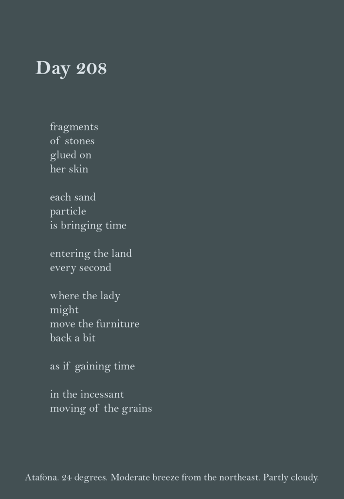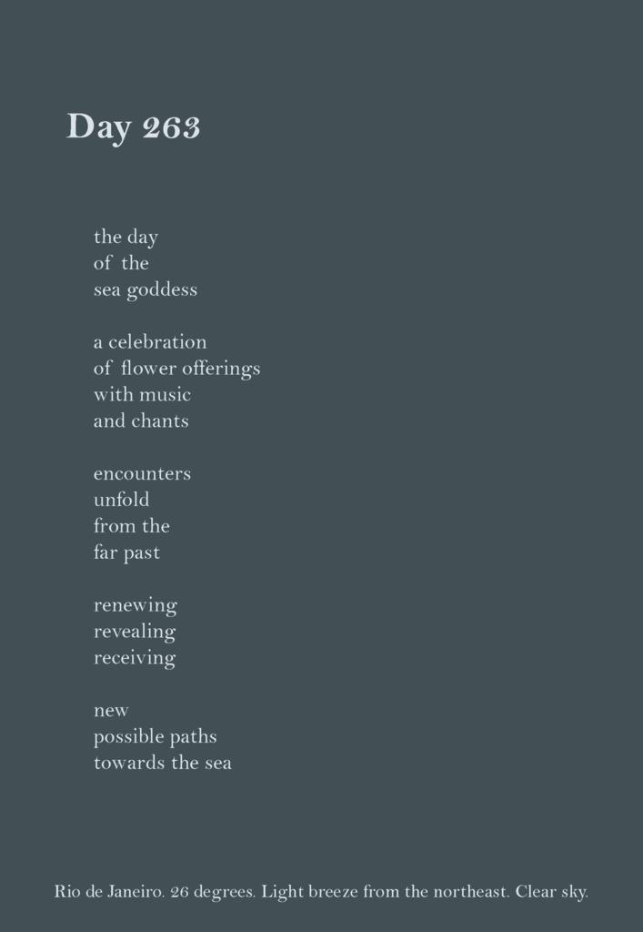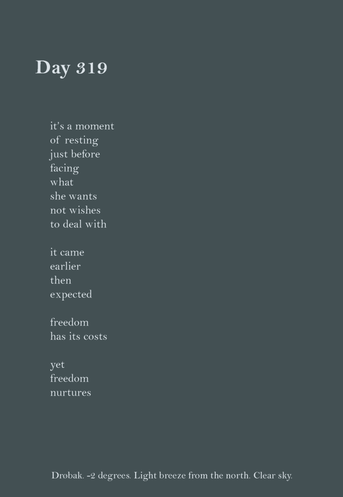 is a compilation of 365 cards documenting one year of daily practice, consisting of a walk, a poem, and a weather registration.