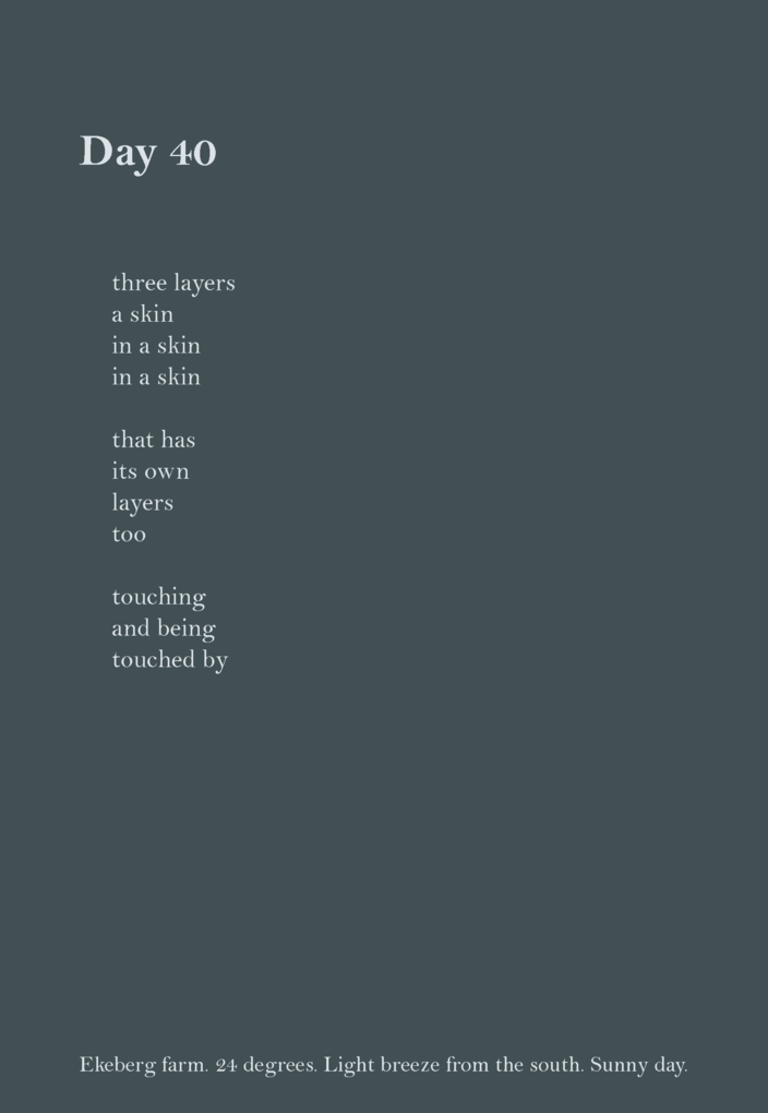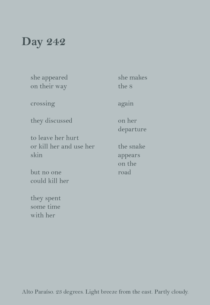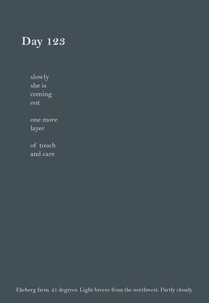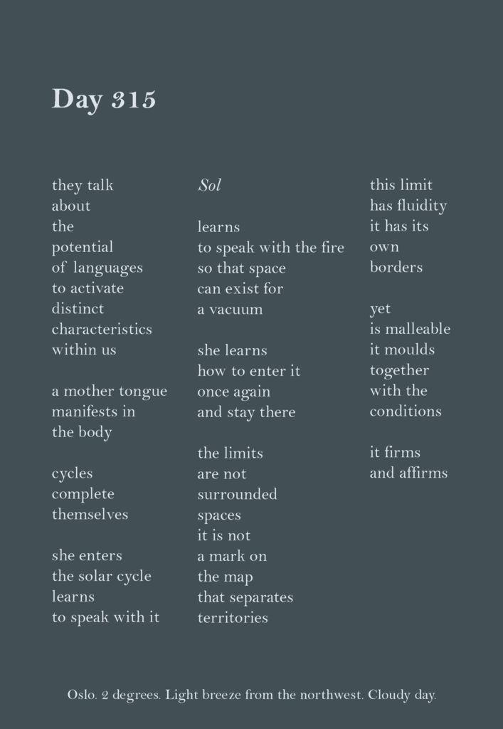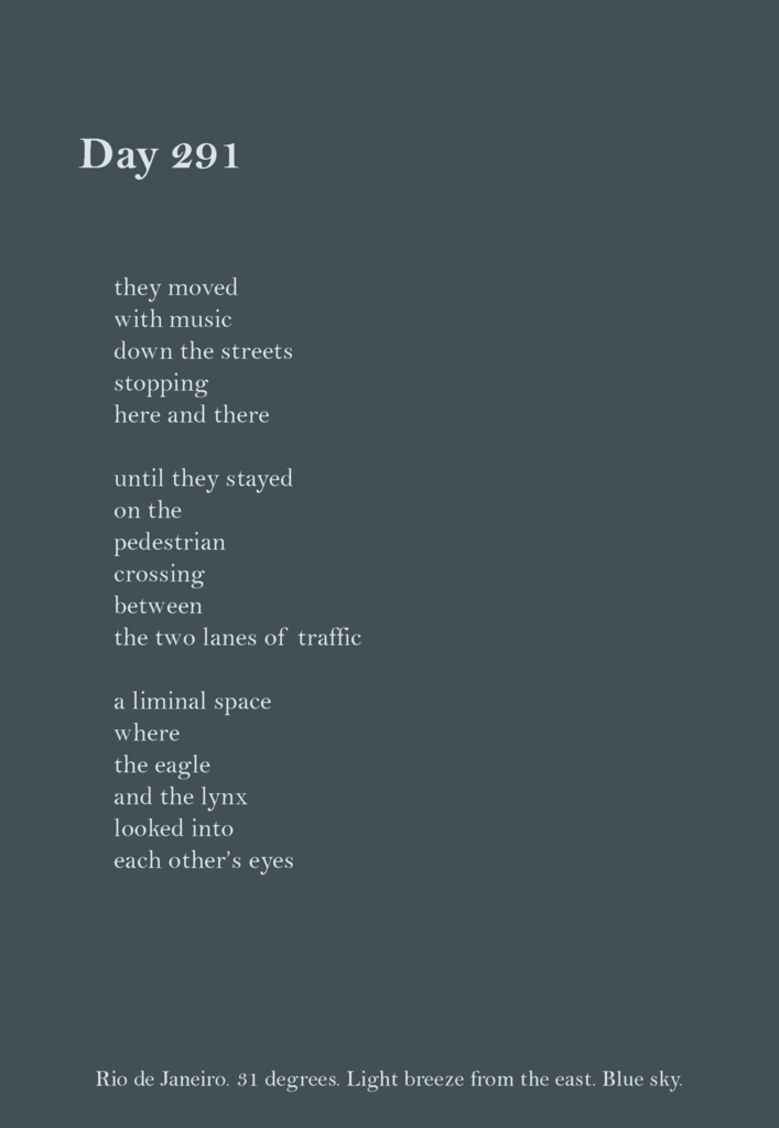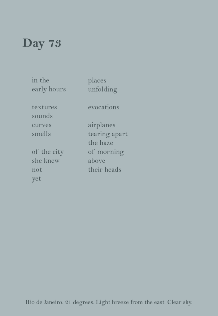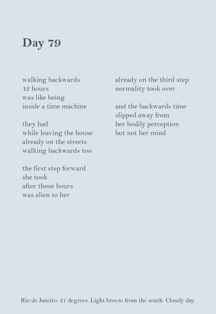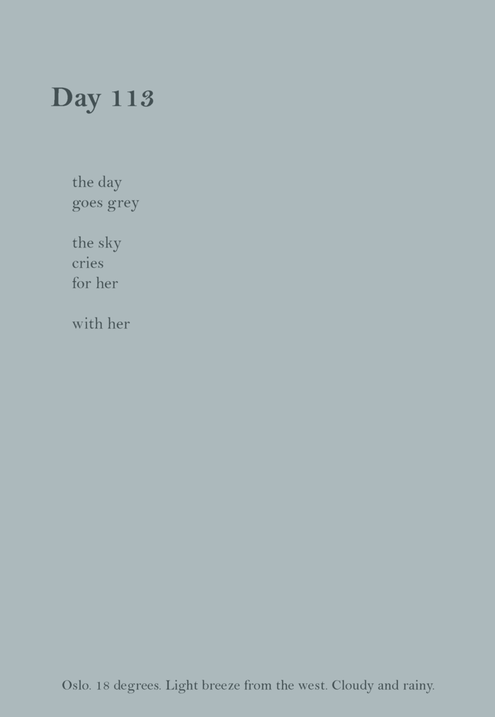 is a compilation of 365 cards documenting one year of daily practice, consisting of a walk, a poem, and a weather registration.