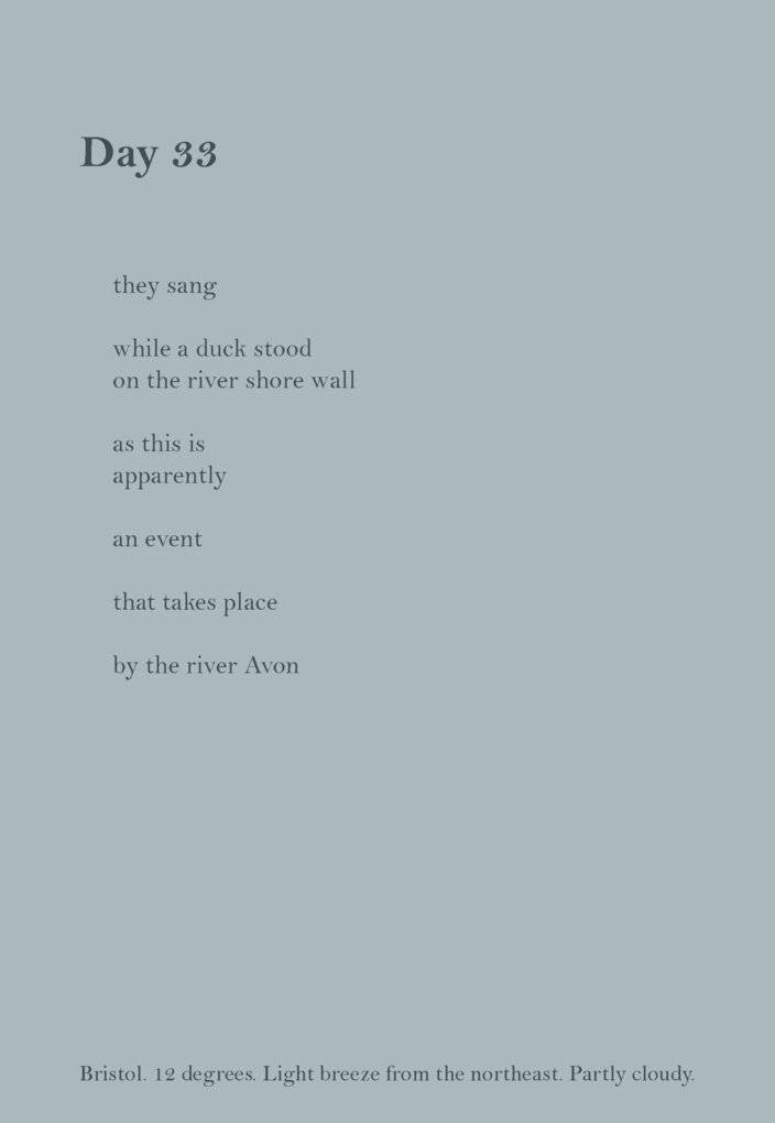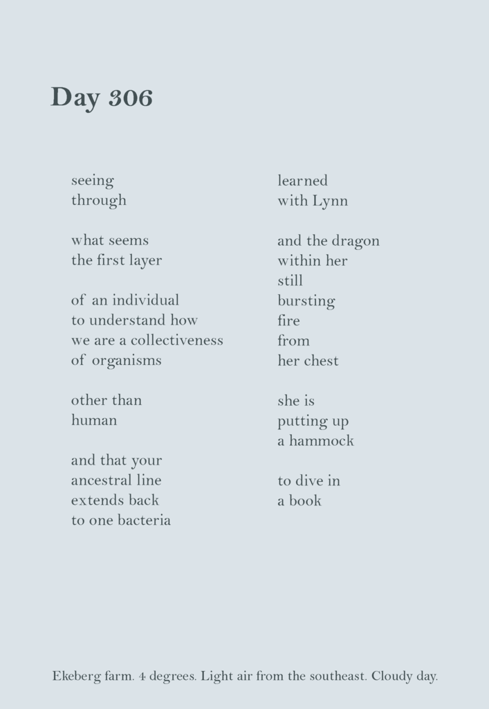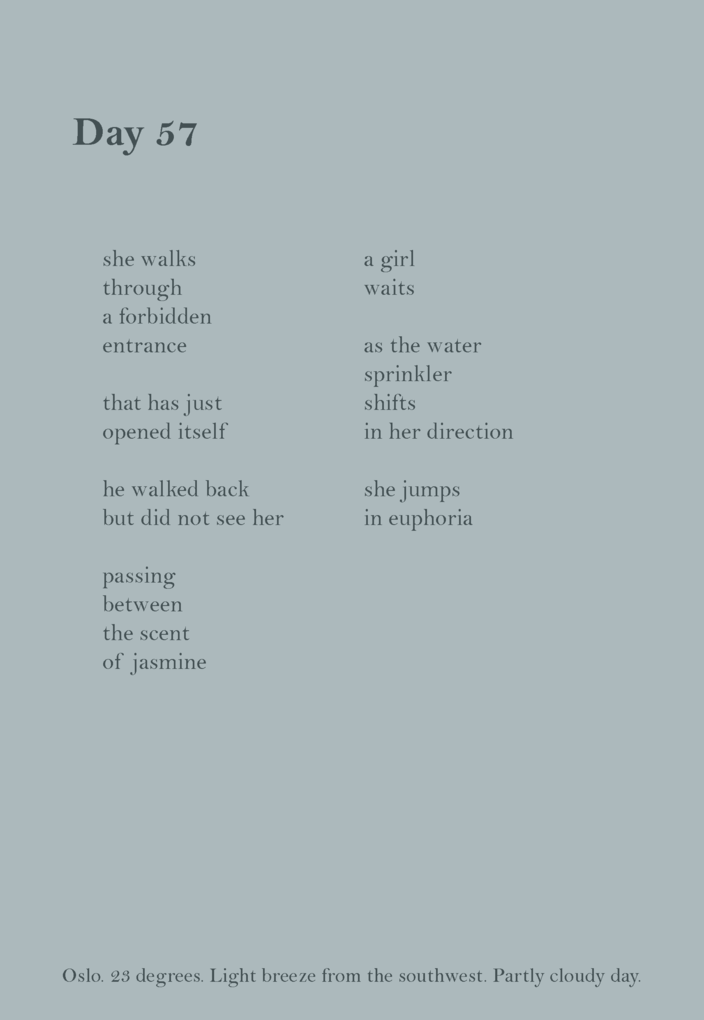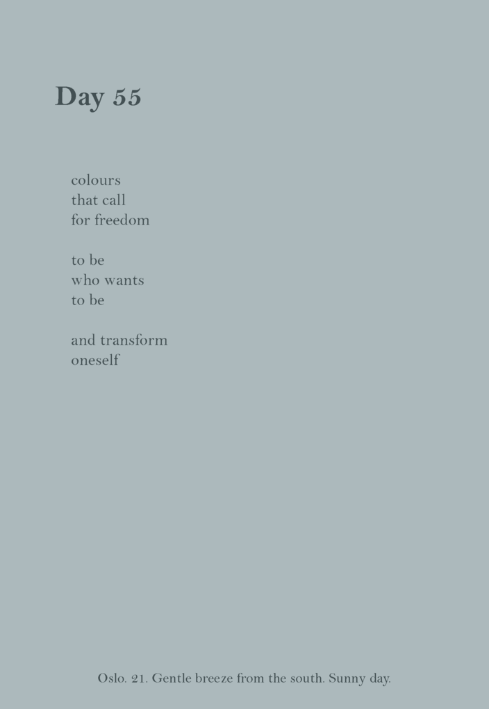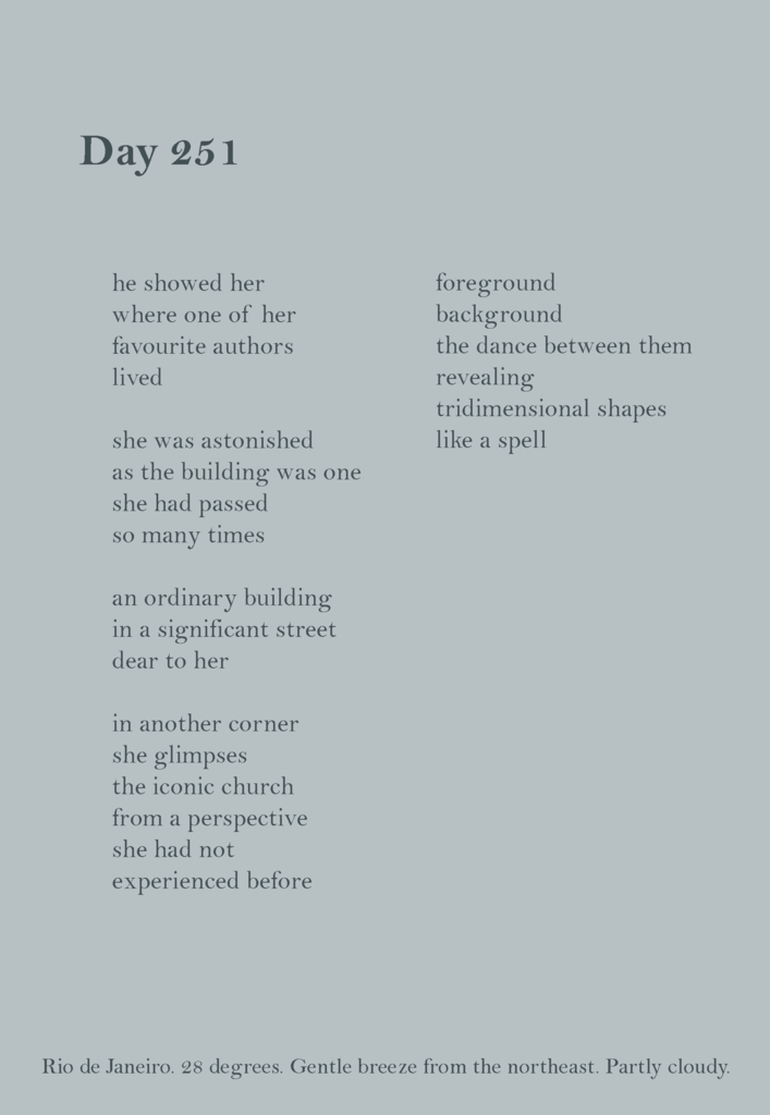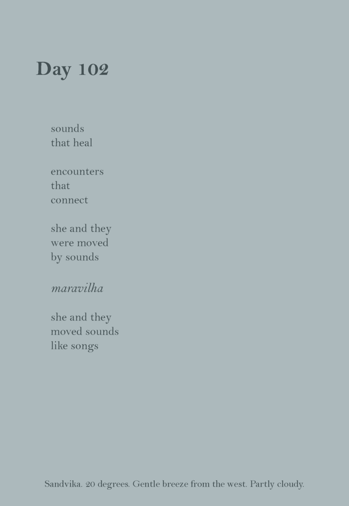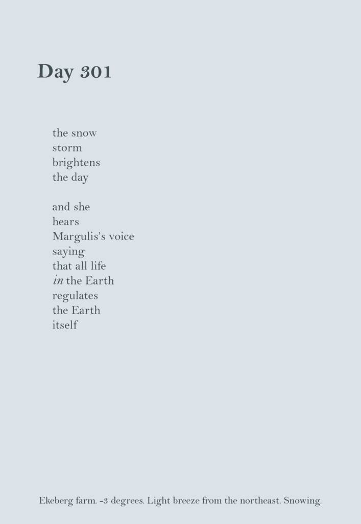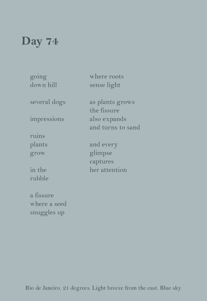 is a compilation of 365 cards documenting one year of daily practice, consisting of a walk, a poem, and a weather registration.