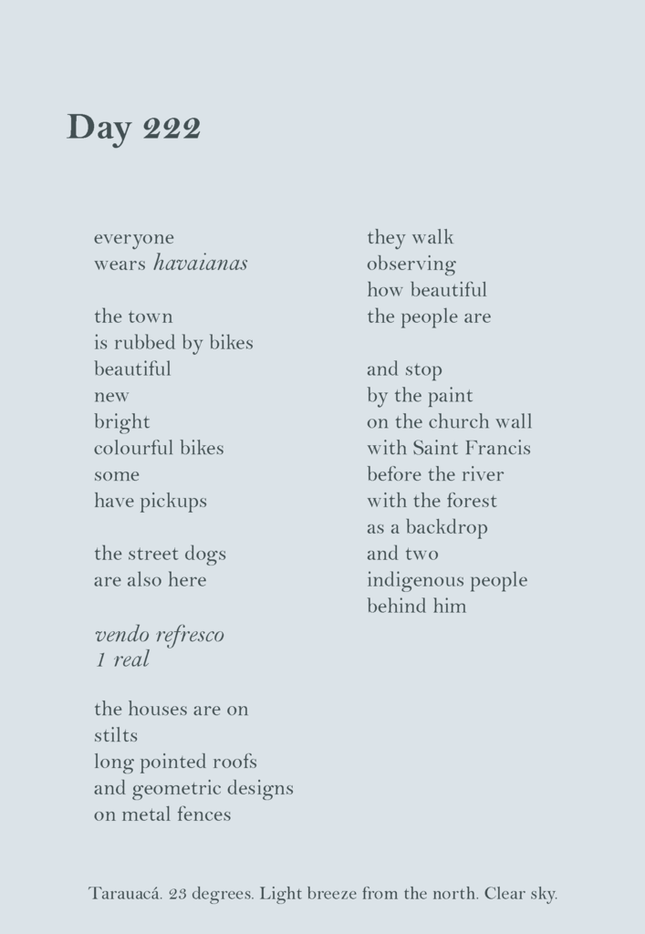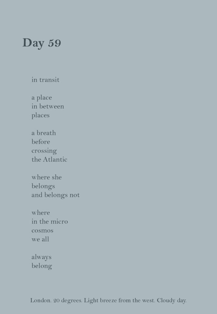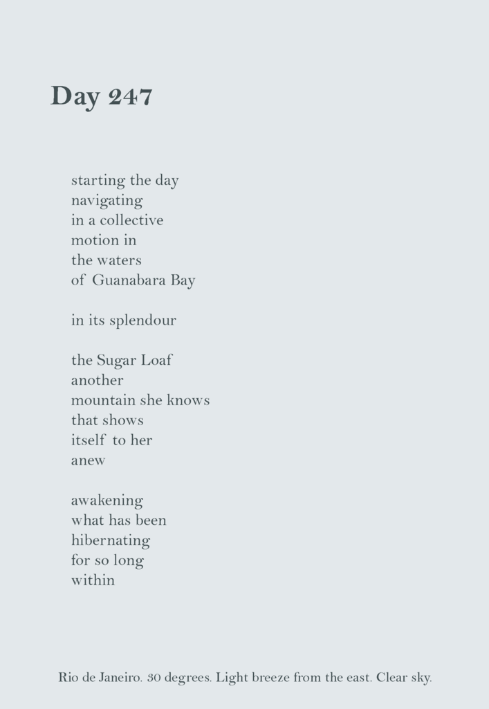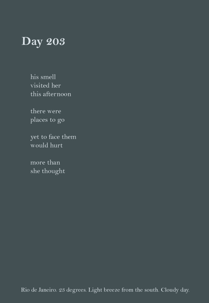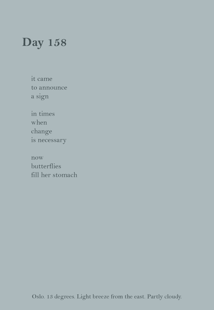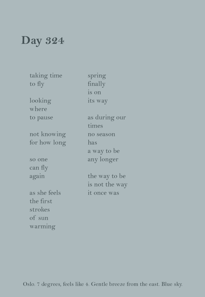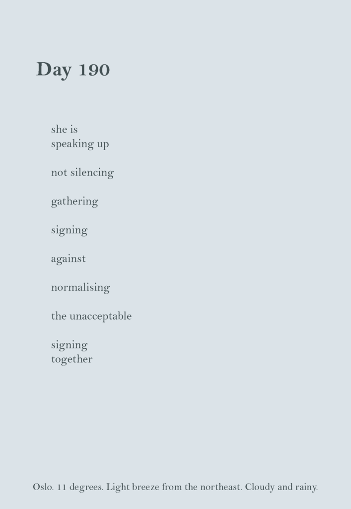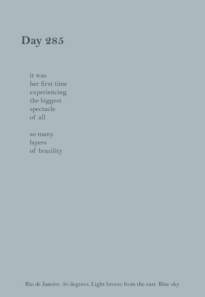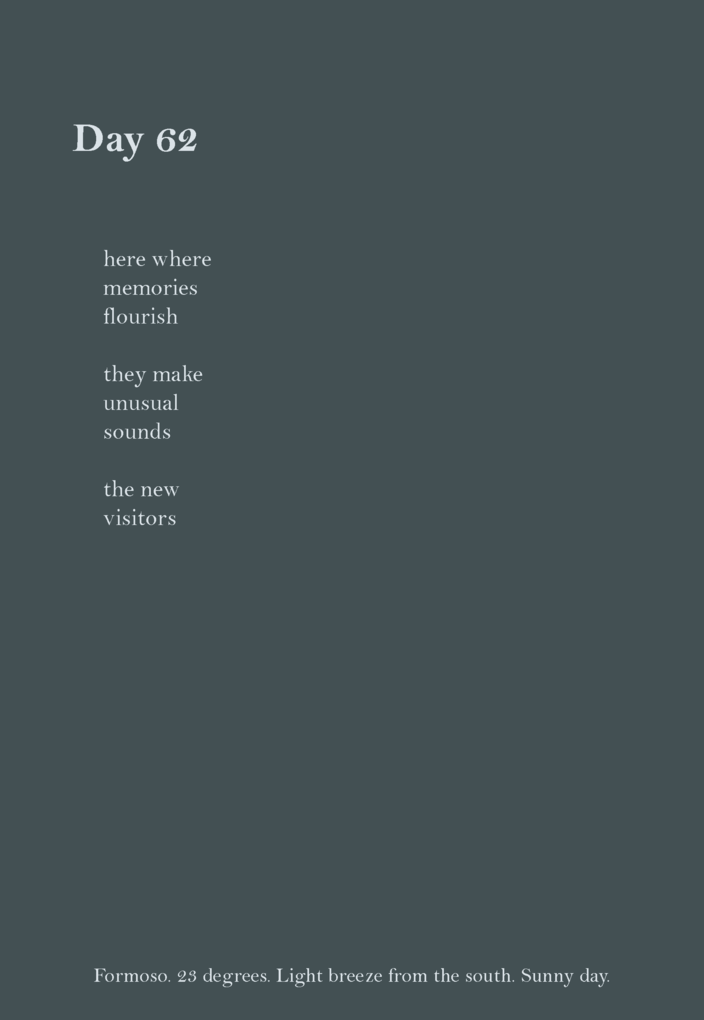 is a compilation of 365 cards documenting one year of daily practice, consisting of a walk, a poem, and a weather registration.