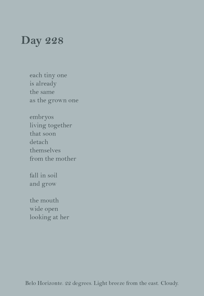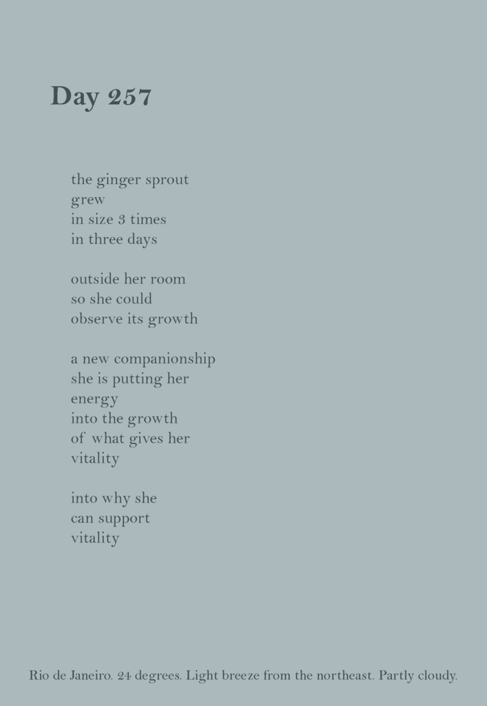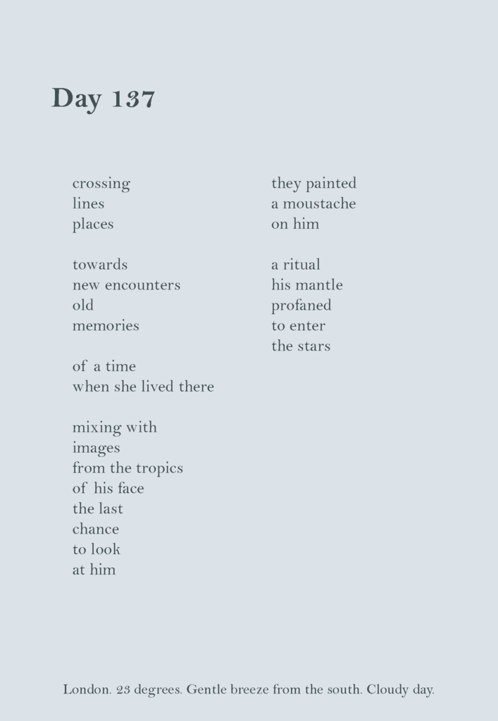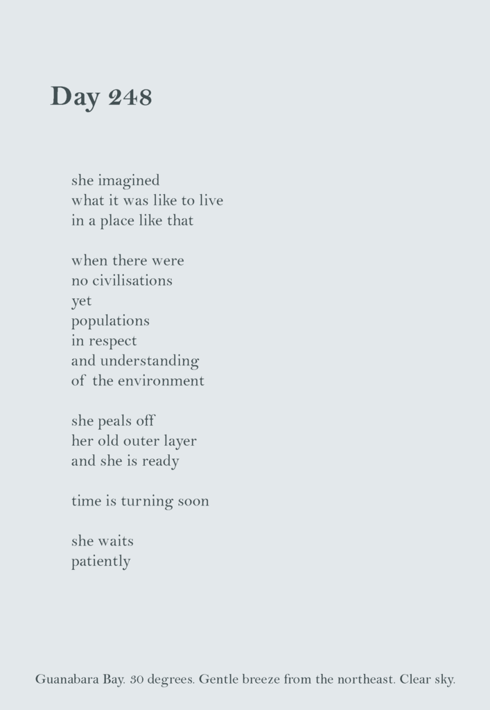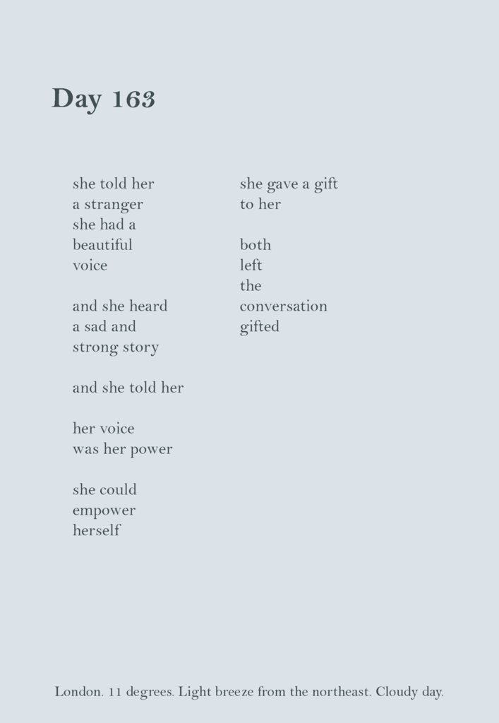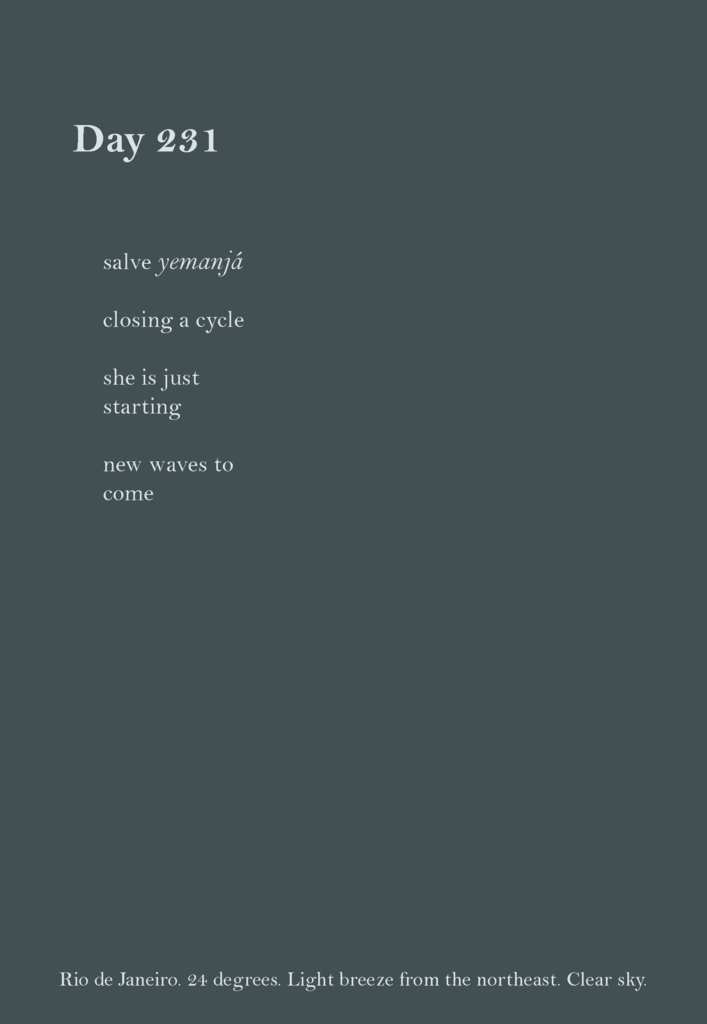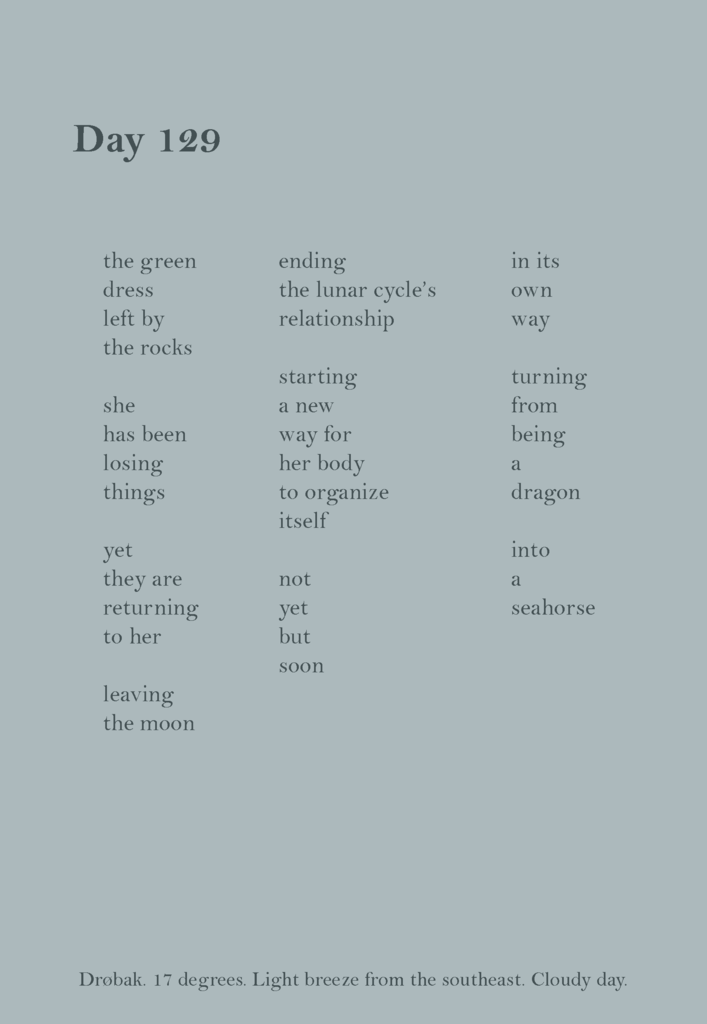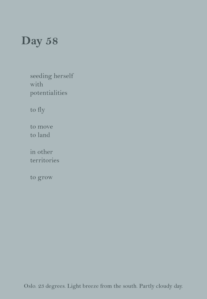 is a compilation of 365 cards documenting one year of daily practice, consisting of a walk, a poem, and a weather registration.