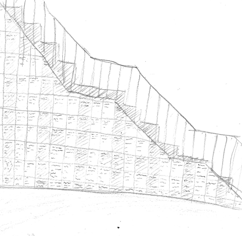 Woman tries out the flat surface against her back, as if the sharp corner will eventually conform to her body. - Will the wall let Woman into the world of the stranded tree? - Will she find her way back to the land where roots blow wildly in the wind?