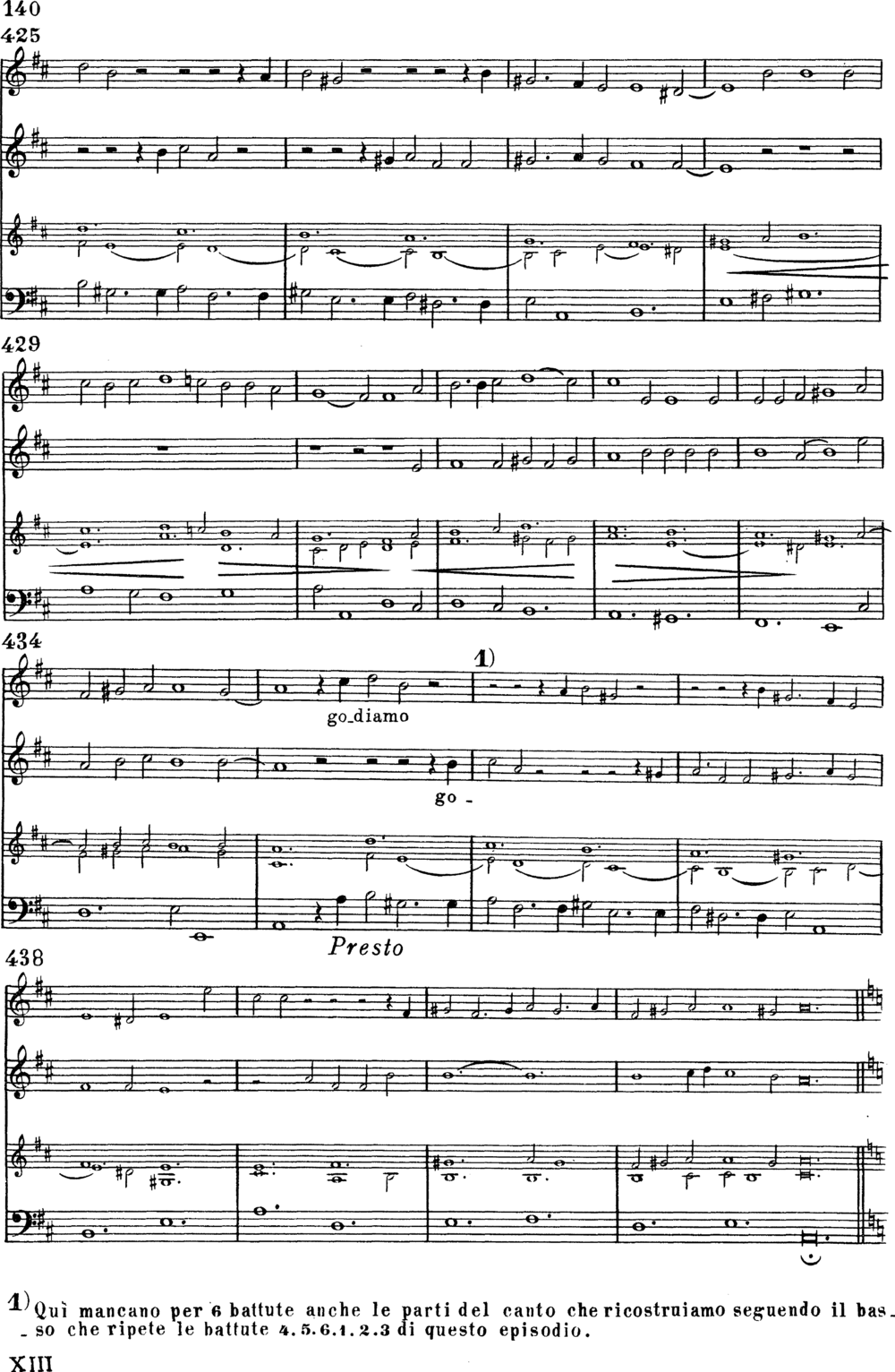 Section three refers mainly to bars 381-387 and 397-400. The melodic profile of the primary work is kept almost faithfully here, but it is made not clearly recognisable through the use of ambiguous sound emissions, the spraying of the registers and octaves, the uneven, non-metrical temporal scansion. The gestures are repeated and varied (each time a slightly different section of the primary work is referred to) and progressively rarefy, ending in a general diminuendo.
