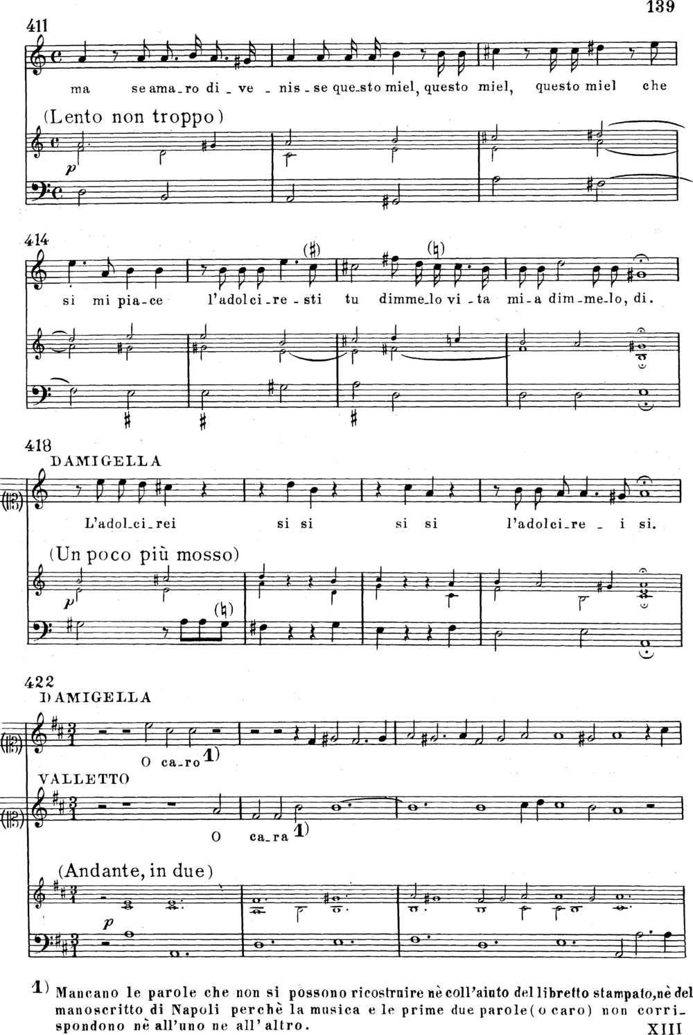 Primary work: duet Sento un certo non so che