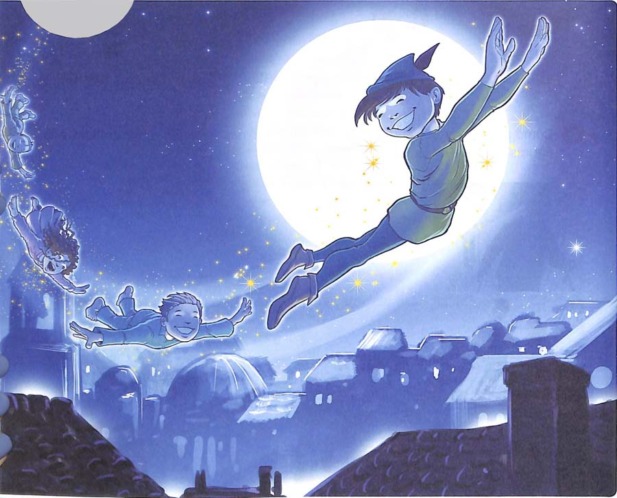 "We made the following analysis: in this culture, there are only white boys and girls. And the boys are at the front and the girls at the back. And the use of colours as well. There are some colours... it's not very clear here, but you can see that blue is not for everyone; and the other colours are... or bright, for the girls. And... only children, right? And they are in this fantasy... right? There, it's an illustration of a fantasy, isn't it? Dreaming... because of the moon, the little stars... and we even have the figure... westernising. It's not clear what the space is... there are no trees. I think that's basically it."