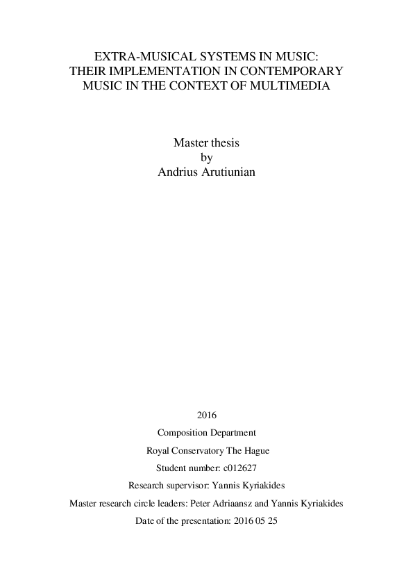 The purpose of this research is to define methods of applying extra-musical and data-based systems in multimedia music works. The first part of the paper concentrates on the outline of the motivation and reasoning for using extra-musical systems from a composer's or sound artist's perspective and gives a historical precedent context. Parallels are drawn together with contemporary art and art critique examples. The second part of the research outlines the possible modes of the data-based systems application by analysing multiple multimedia works by composers or sound artists written in the last two decades including a piece by the author of the paper. The types of multimedia and its connection to sound are discussed, the conceptual deconstruction and its semiotic implications of the data used are analysed. The given conceptual and semantic context is applied for analysing the musical parameters and data's usage in sound control. Each of the pieces discussed outlines a particular mode of the conceptuality towards the extra-musical system usage and functions as a primal device for further conclusions drawn. The final part of the research consists of the general overview of the conclusions drawn and attempts to establish a general outline of the motivation and the resulting outcome behind the usage of the extra-musical systems in multimedia works.