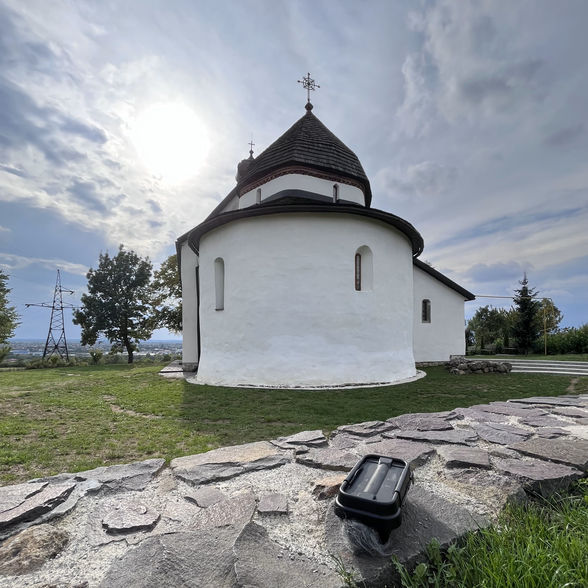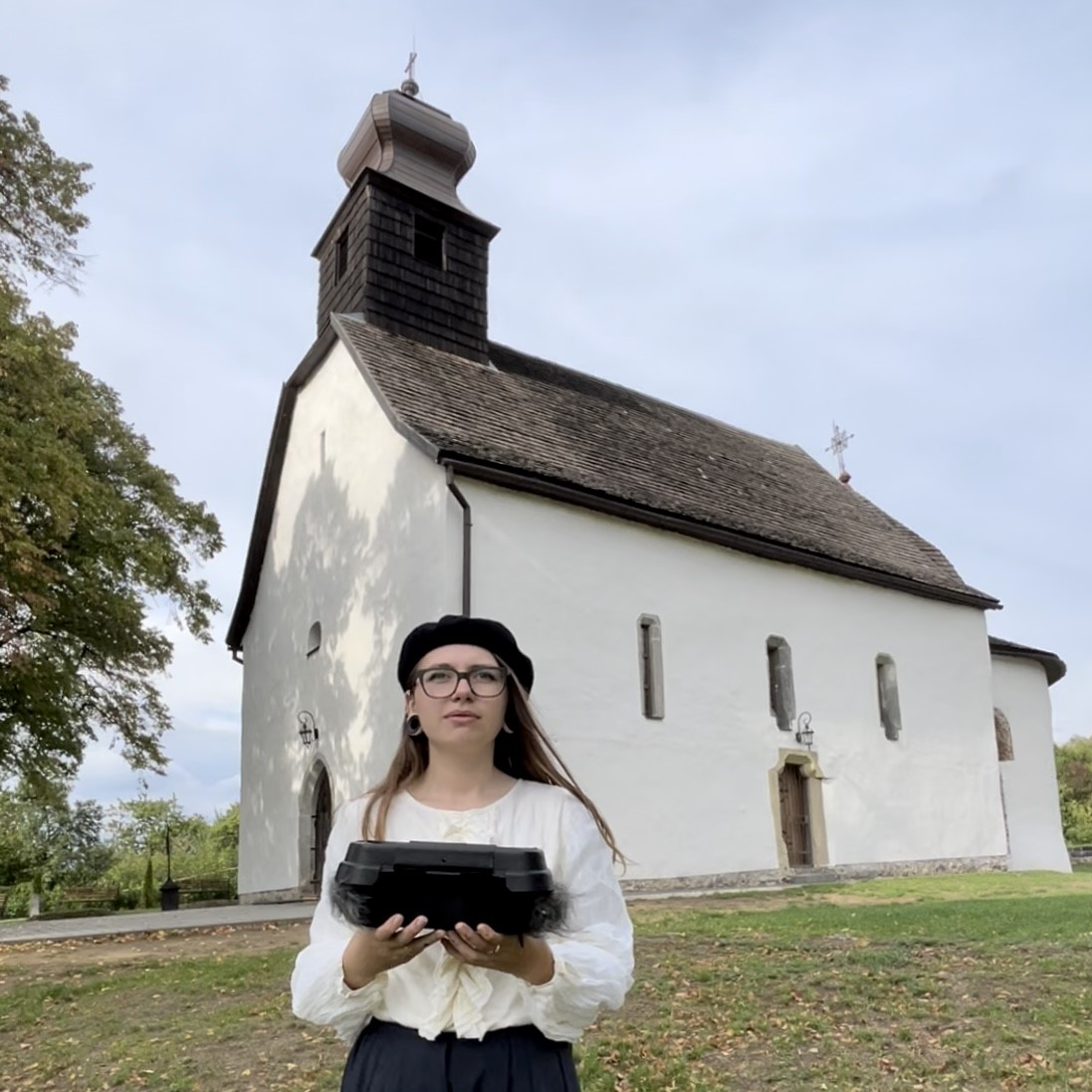 The two remaining streams are Zakhystok Tserkvy-Rotondy (Rotunda-Church Shelter) by Kseniia Yanus – broadcast from Uzhhorod, a city on the border with Slovakia – and Vidstan’ = Shlyakh = Zv’yazok (Distance = Way = Connection) by Kseniia Shcherbakova – streamed from Lviv, near the border with Poland. Since the full-scale invasion, both cities have become key hubs for IDPs seeking refuge and safety in regions of Ukraine farther from the Russian border. Yanus arrived in Uzhhorod from Odesa, where she relocated after fleeing her hometown, Donetsk, in 2014, following the onset of Russia’s war in eastern Ukraine. Her stream conveys an embodied sense of exile, encapsulating ten years of escape from war into an hour and a half spent searching for peace and quiet in the surroundings of the Transcarpathian church, the Horyanska Rotonda (Horyany Rotunda).