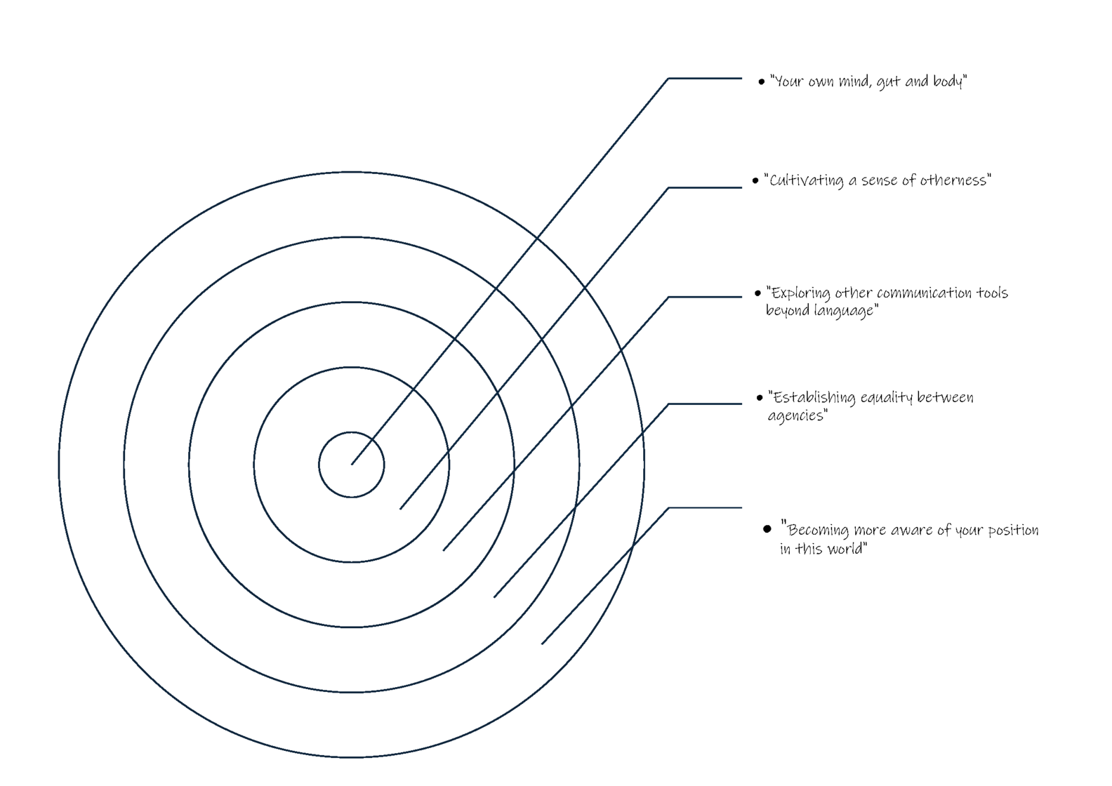Against the backdrop of contemporary societal and environmental divisions, this artistic research explores ways for redefining relationships, both human and nonhuman, through the lens of the philosophical framework of co-poiesis. Using a practice-led research methodology based on the collaborative process of the short documentary The Spectacle this study explores how collaborative practice and sensory engagement can serve as a reflective tool, illuminating our relational dynamics and perceptual interactions with each other and our environment.