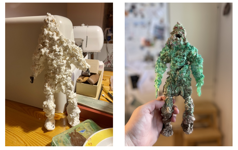 In my case, it is a joy in the material I work with, by constructing with modeling clay, steel wire, paint, chicken wire, etc. which I hope comes across to the audience. I actually think it's funny that you can see the steel wire itself, in perhaps especially the lizard, and in some of the other figures, for example after some of their fingers have fallen off. Perhaps the nostalgia is rather a by-product of my imperfect way of working. It is not on a theoretical level that I aim for the imperfect, but rather that I love the material, the fact that it gets worn and you can see glue on the characters' clothes etc. But exactly where the limit goes between the perfect and the imperfect is really hard to answer. In theory, I could just have two pieces of wire moving around a pile of clay, but that's not where I think there's anything interesting. But when is it good? Where is the exact limit?