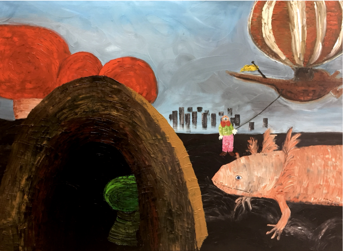 It was a longer process; after taking an MFA in 2010, where I had been making video art throughout my studies, I started painting and found a huge source of inspiration in a 70s encyclopedia, which I flipped through from start to finish. From the encyclopedia I sampled interesting photos, which I put together and painted after. So it was a kind of collages, you could say, where I painted after the images that arose. Gradually, a kind of story formed in the paintings, which I have boiled down to the story of The Holy Mushroom. I show some examples of my paintings and ceramics, later in the text, and below is the painting Captain Balteruz's last voyage, which I consider to be my first