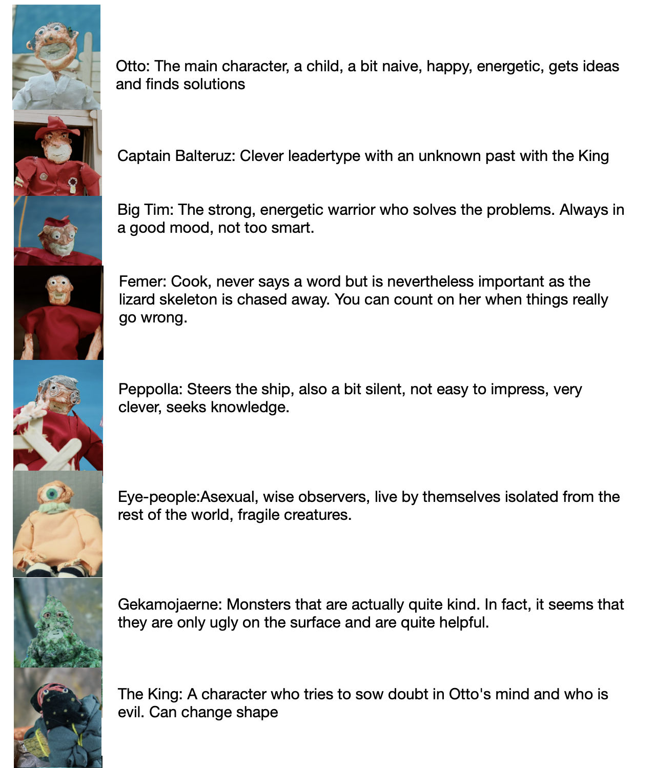 The films I am most inspired by are of somewhat older date. I saw many of them as a child in Denmark. I was super fascinated by “Fraggle Rock” (Jim Henson 1983-1987) with especially traveling Uncle Mac who is on a journey of discovery in the real world. It made a big impression on me. Besides that, there are many different sources of inspiration that I can think of. When I moved to Sweden in 2005, I was introduced to several films and artists. Of the Swedish sources of inspiration, I think in particular of "Dunderklumpen" (1974, Per Åhlin) "Skrotnisse och hans vänner" (1985, Lars-Åke Kylén and Jan Lööf) and "Resan till Melonia" (1989, Per Åhlin) Also of the artists Johannes Nyholm with “Dockpojken” (2008) Peter Larsson “Människorna och valen” (2008) as well as Nathalie Djurberg (I can't name a specific work as all the ones I've seen have been fantastic), all three above are stop-motion animation.