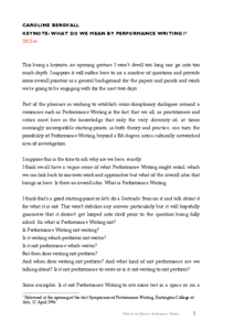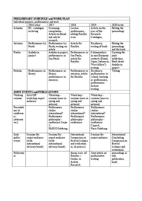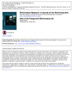 This is the website and the open archive of the four-year research project HOW TO DO THINGS WITH PERFORMANCE? funded by the Finnish Academy. Nämä ovat nelivuotisen Suomen Akatemian rahoittaman tutkimushankkeen MITEN TEHDÄ ASIOITA ESITYKSELLÄ? verkkosivut ja avoin arkisto.