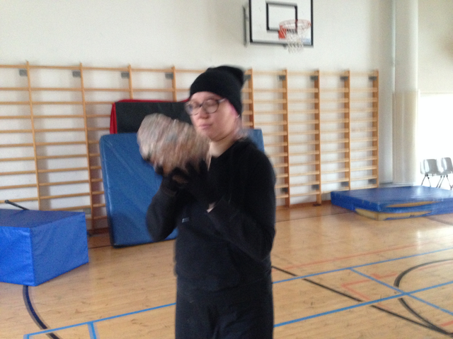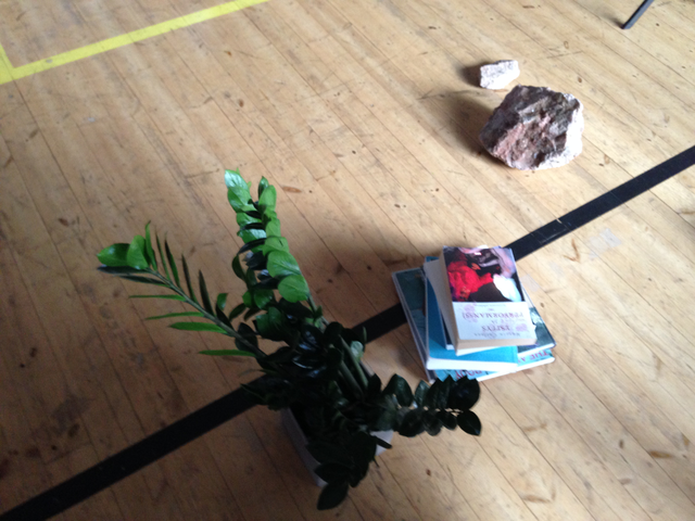 Kuinka kantaa asioita, tai kuinka kantaa jotakin joka on raskasta, kuten noin kymmenen kilon painoista graniitin kappaletta. Ja kuinka tässä tilanteessa, luokassa 525, joka on siis liikuntasali, tulee tarve esittää, tai ei suoranaisesti esittää, mutta esiintyä. Jos tekisin töikseni esineiden kantamista, kuten eilen kannoin kaverin laatikoita autosta, illalla, melko pimeässä ja sitten portaita kolme kerrosta ilman hissiä, ja etsin huoneesta paikkaa mihin noita laatikoita ja metallisen kirjahyllyn osio pitäisi laittaa, niin ero oli valtava. Nyt esitin kantamista, minä loin kantamista, etsin jotain mielekästä itse kantamisessa, joka ei ollut kantamista jolla olisi funktio. Siksi, se tuntui kummalliselta, ei siksi että funktio puuttui, vaan siksi, että se oli kantamisen esittämistä. Tietenkin, voisi ajatella, että tuolla kantamisella, esittävällä kantamisella, löysin ehkä jotain tapoja joilla kantaa pahvilaatikoita, kirjahyllynosia, muovisia muuttolaatikoita ja jätesäkkejä täynnä talvivaatteita, jollain keholleni sopivammalla tavalla. Se tapa, miten eilen kannoin laatikoita ylös kolmanteen kerrokseen ei ollut kuitenkaan ainoastaan toisteista, sillä jatkuvasti hain jotakin vähemmän kuluttavaa tapaa kantaa. En kantanut liikaa kerralla, minä säästelin. Keskustelin toisten kanssa englanniksi, jos olisi mahdllista tehdä jono, jolloin kaikkien ei tarvitse juosta ylös alas. Mietin kuitenkin onko jono parempi kuin kaikkien kantaminen ylös alas? Mistä tiedän tai miten perustelen, että toinen on parempi kuin toinen? Muistin myös vaihtaa esineitä, jotta työ ei olisi liian monotonista. Kuulostelin polveni ja alaselkäni kuntoa. Portaat ovat viheliäiset, mutta ylöspäin kapuaminen laatikon kanssa on helpompaa kuin raskaan taakan siirtäminen alas rappusia pitkin. Nyt, tänään, en miettinyt sitä. Yritin tehdä asioista mielenkiintoisia, sekä muille, että itselleni. Minun kantamistani katsottiin. Kivi ei ollut kivi, vaan siitä tuli hahmo ja joskus rekvisiittaa. Eilen materiaalit olivat minusta aika välinpitämättömiä ja mielenkiinnottomia. Tänään kivestä, johon en kiinnittäisi tuolla viereisellä työmaalla mitään huomiota, tuli jotenkin merkityksellinen. Siitä tuli jokin, siitä tuli esine, tai se alkoi representoida muita kiviä.