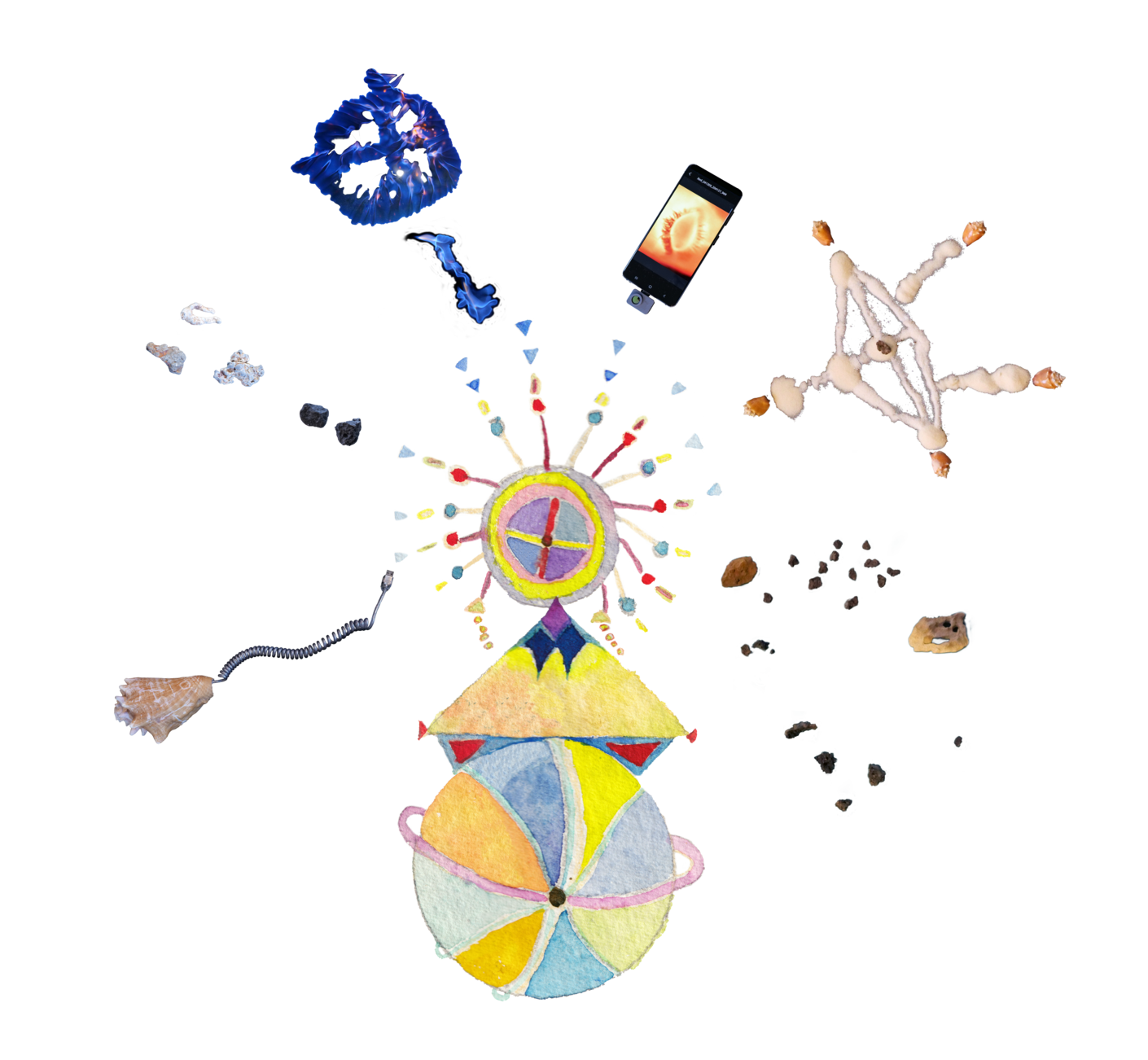 Welcome to Galaxy Revolution, the space station of Historical Spiritual Vibrations space agency. At the station you can access training sessions and game instructions we use to imagine training and healing practices for the new space race. You can experience glimpses of our space journeys and learn more of the history of the tools and knowledge we bring with us on our missions. Dock at our space station and (mis)use our methods to reshape and imagine the past, present, and future in your own way. The exposition gathers documentation of Whyte&Zettergren's live actions and ritual practices at locations in Iceland where the Apollo 11 astronauts trained for their journey to the Moon. It also includes infrared imagery, a technology used in space visualization to capture light waves invisible to the human eye, recorded during the duo’s space journeys. The duo explores space both as a site where future colonial projects are planned and as a fictional realm for imagining alternative worlds. In their work, Zettergren's speculative technofeminism and Whyte's ritual dubfuturism intersect. Practices that reshape futures in various ways; through an intersectional feminist and technocritical lens, and through the experimental remixing of history, ritual, and rhythm in dub culture. When the present feels dystopian, dreams of life in space become a way to envision change, a transformation of the world through imagination, whose echoes vibrate into the future.