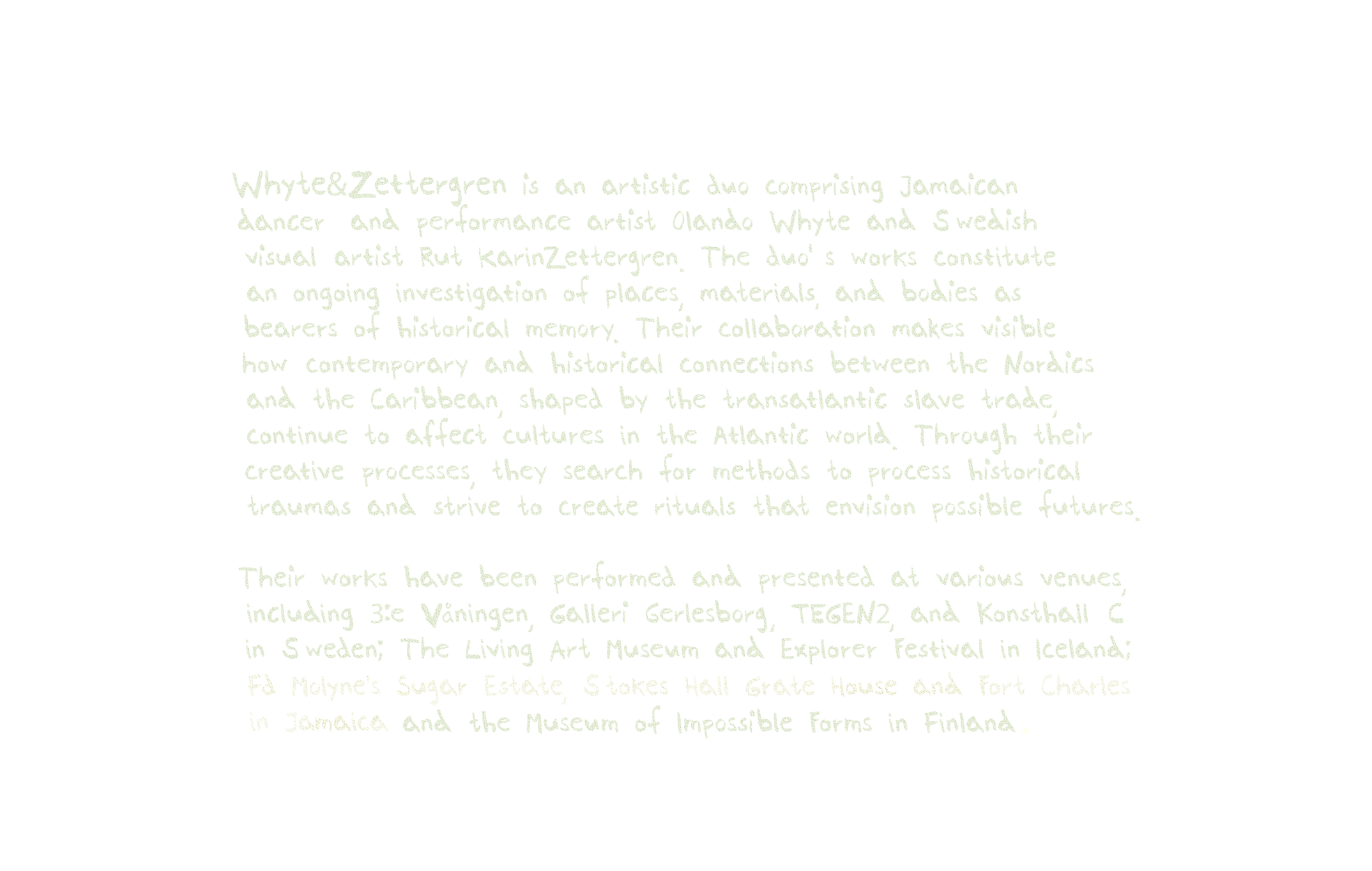 Welcome to Galaxy Revolution, the space station of Historical Spiritual Vibrations space agency. At the station you can access training sessions and game instructions we use to imagine training and healing practices for the new space race. You can experience glimpses of our space journeys and learn more of the history of the tools and knowledge we bring with us on our missions. Dock at our space station and (mis)use our methods to reshape and imagine the past, present, and future in your own way. The exposition gathers documentation of Whyte&Zettergren's live actions and ritual practices at locations in Iceland where the Apollo 11 astronauts trained for their journey to the Moon. It also includes infrared imagery, a technology used in space visualization to capture light waves invisible to the human eye, recorded during the duo’s space journeys. The duo explores space both as a site where future colonial projects are planned and as a fictional realm for imagining alternative worlds. In their work, Zettergren's speculative technofeminism and Whyte's ritual dubfuturism intersect. Practices that reshape futures in various ways; through an intersectional feminist and technocritical lens, and through the experimental remixing of history, ritual, and rhythm in dub culture. When the present feels dystopian, dreams of life in space become a way to envision change, a transformation of the world through imagination, whose echoes vibrate into the future.