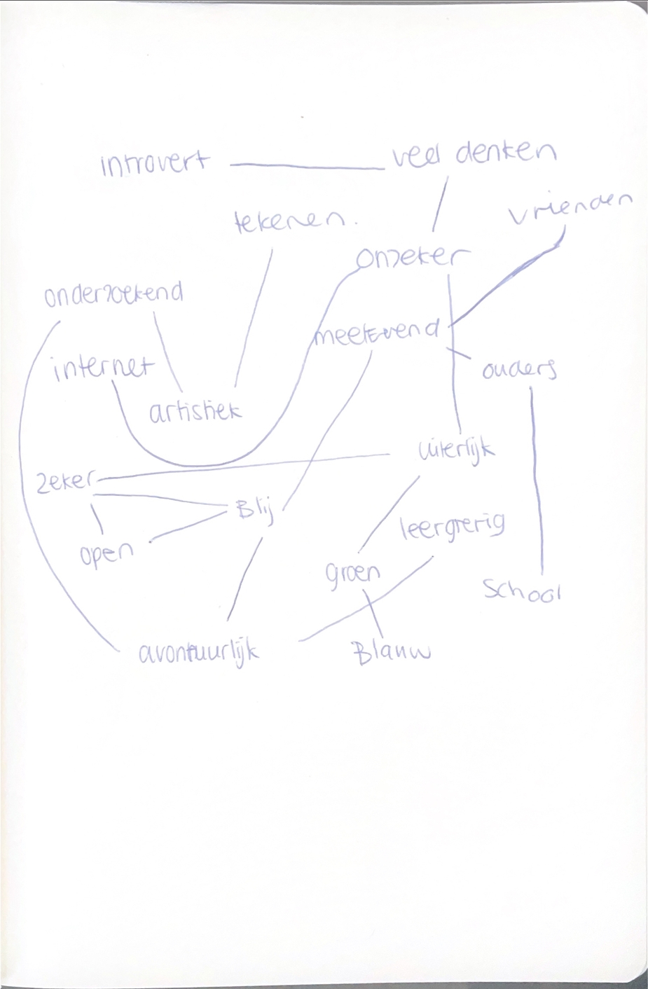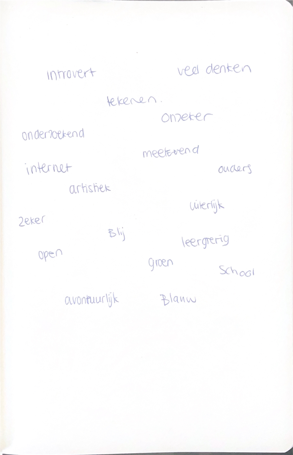 Ik vond het wel leuk om te doen en ook om erover na te denken wat mij dat dan Ja wat, wat, wat dan? Wat is mijn zelfbeeld en wat? En dan loop ik, liep ik al snel vast, maar ik dat dat op een of andere manier dacht dat dat wel iets van duidelijkheid gaf zodat ik wel er over nadacht .