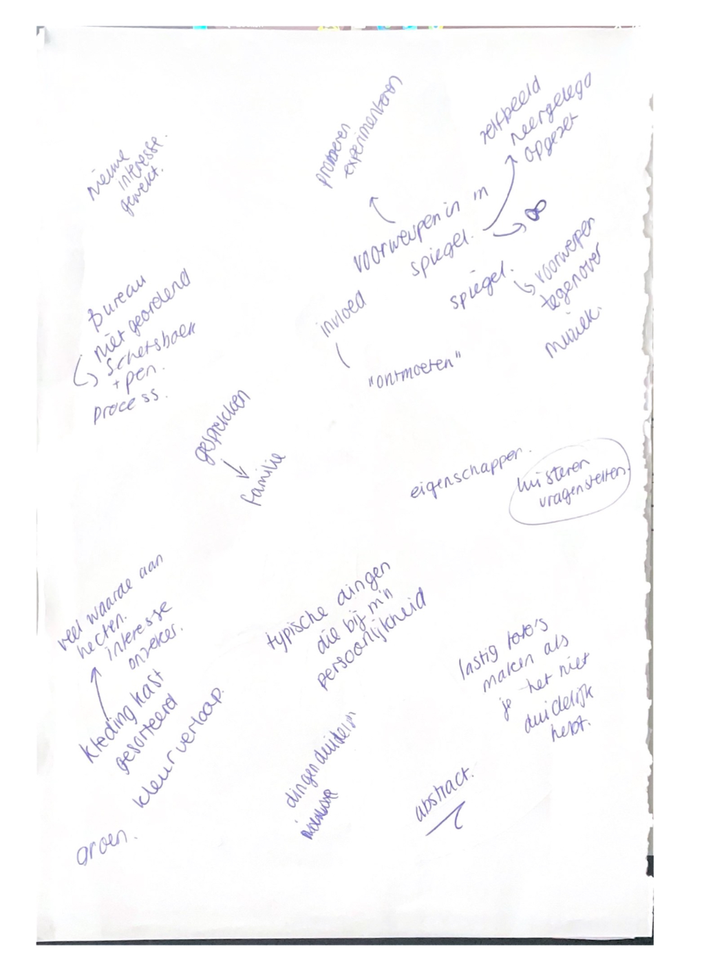 Het begrip zelf beeld is zo'n enorm groot begrip en door zijn dynamische aard is er moeilijk grip op te leggen. Door eenerzijds te vragen wie ben ik niet, wat wil ik niet zijn, waar liggen mijn interesses niet. Maak je de vraag voor deze doelgroep wellicht wat behapbaarder én makkelijker. Anderzijds heb ik het gevoel dat je makkelijker in een negatieve sfeer hangt door te focussen op wat je niet wilt zijn of waar je geen interesse in hebt. Dit is iets wat ik nog verder zou willen verkennen in de toekomst.
