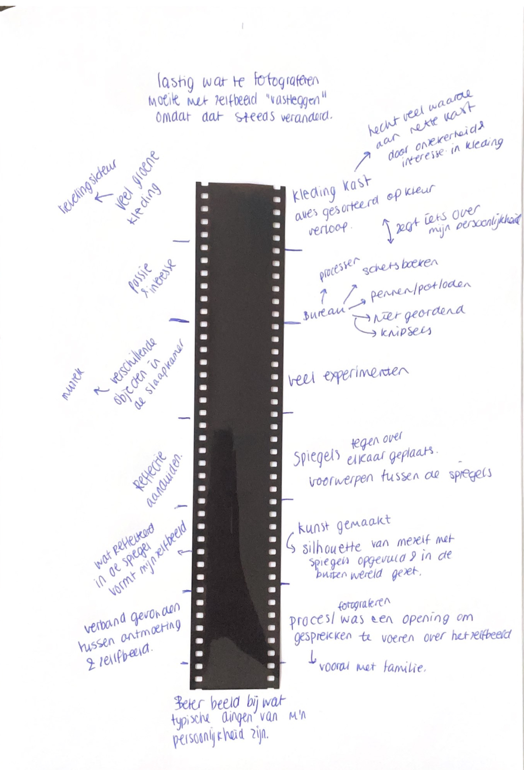 Nadat we de situatie op de foto’s hebben genoteerd zijn we ingegaan op waarom hij dit koppelde aan het zelfbeeld en wat het voor hem betekent.