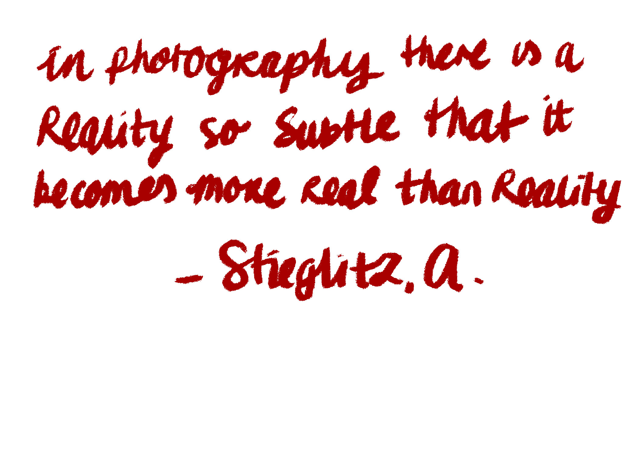 Met deze quote suggereert Stieglietz dat fotografie soms echter lijkt dan de werkelijkheid zelf. Dit verbind ik aan het zelfbeeld en zelfexpressie. Het beeld wat we van ons zelf hebben en hoe we ons zelf presenteren, kan echter lijken dan de realiteit. Een foto kan soms meer laten zien dan wat we met het blote oog zien. Dat betekent dat we door middel van fotografie kunnen uitdrukken wie we willen zijn en daar kunnen we een realiteit van maken.